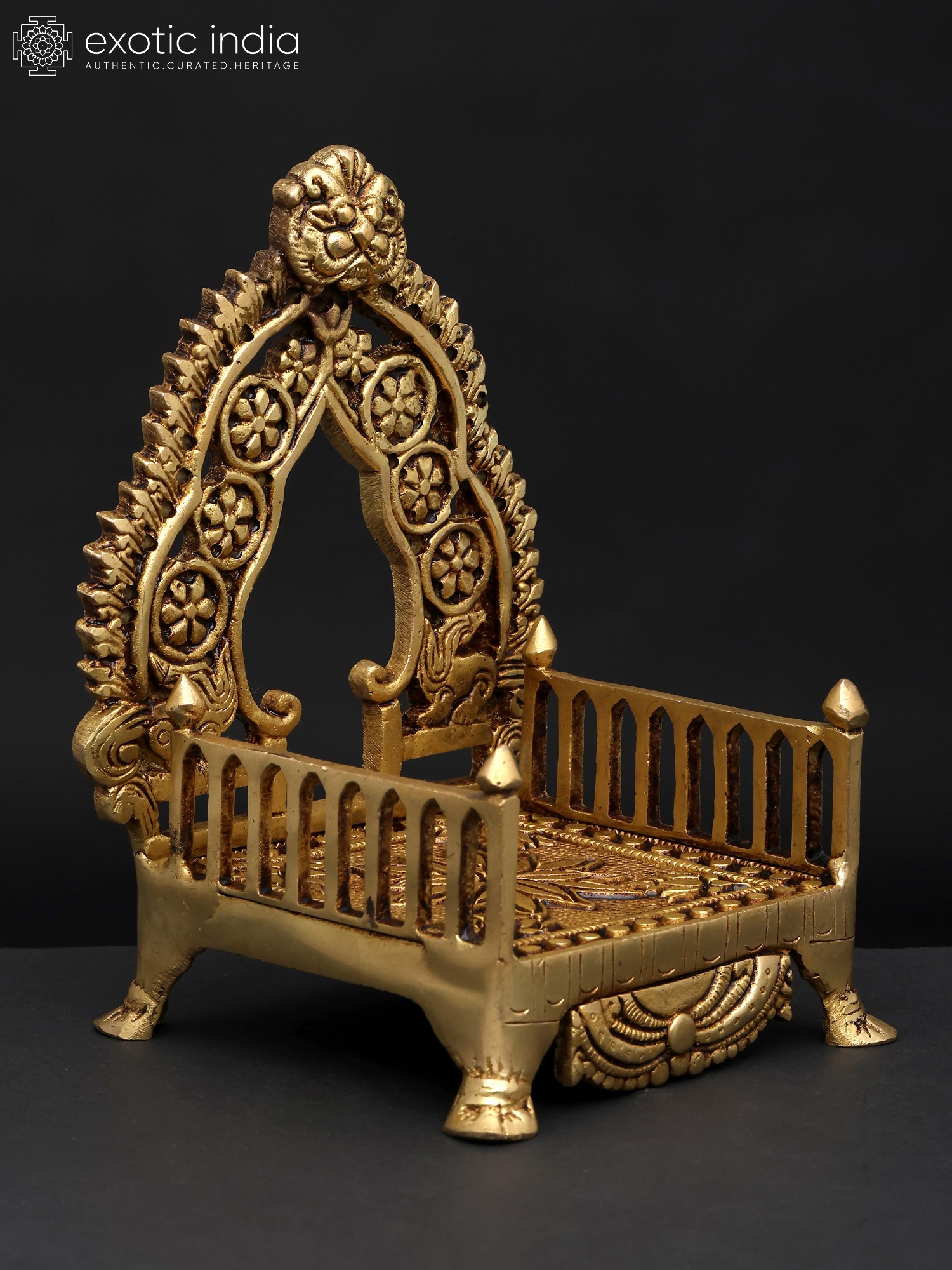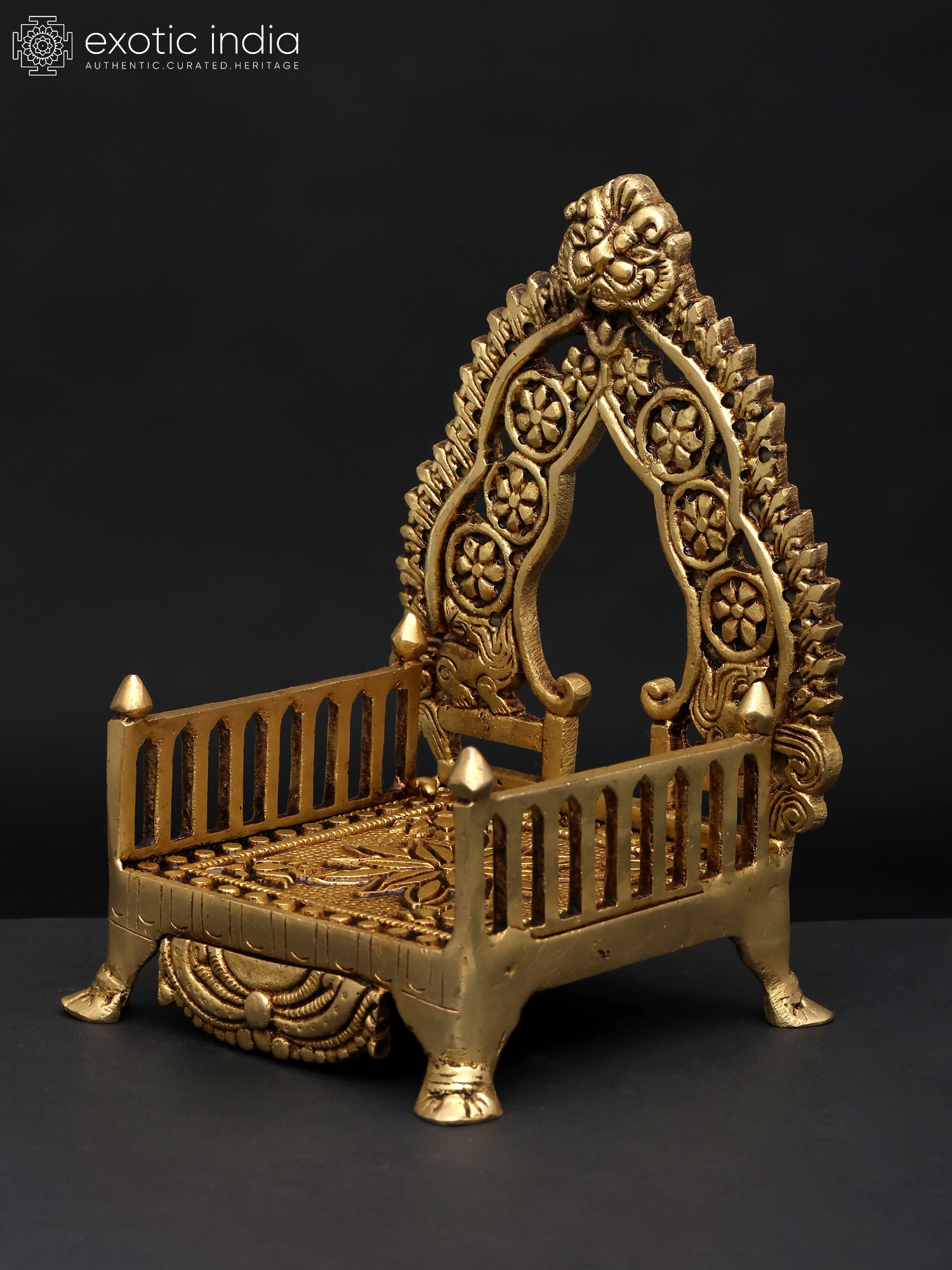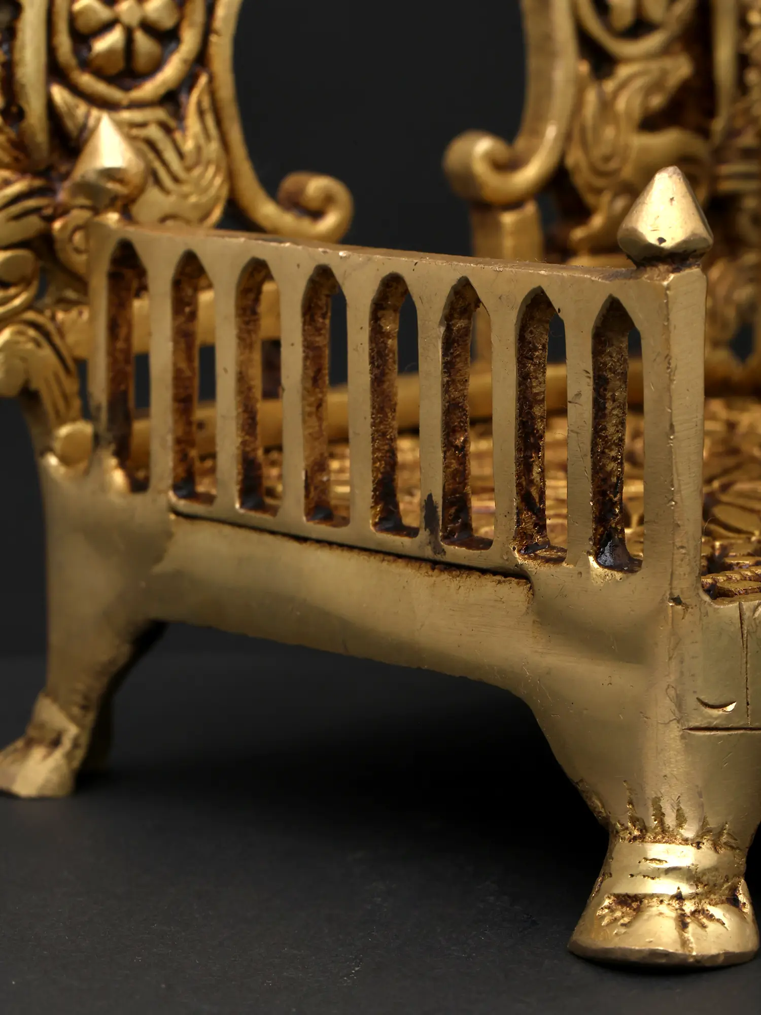 Imagine a throne not of this world, crafted with the devotion and skill to honor a deity. This intricately detailed brass throne serves as a divine seat, a focal point for reverence and a stunning addition to any sacred space. The warm, golden hue of the brass radiates with a spiritual energy, reflecting the light and drawing the eye to its complex design. Every curve and embellishment speaks of the artisan's dedication, a testament to the power and majesty it is intended to represent. The throne's design is rooted in traditional motifs, reflecting the rich cultural heritage of spiritual iconography.