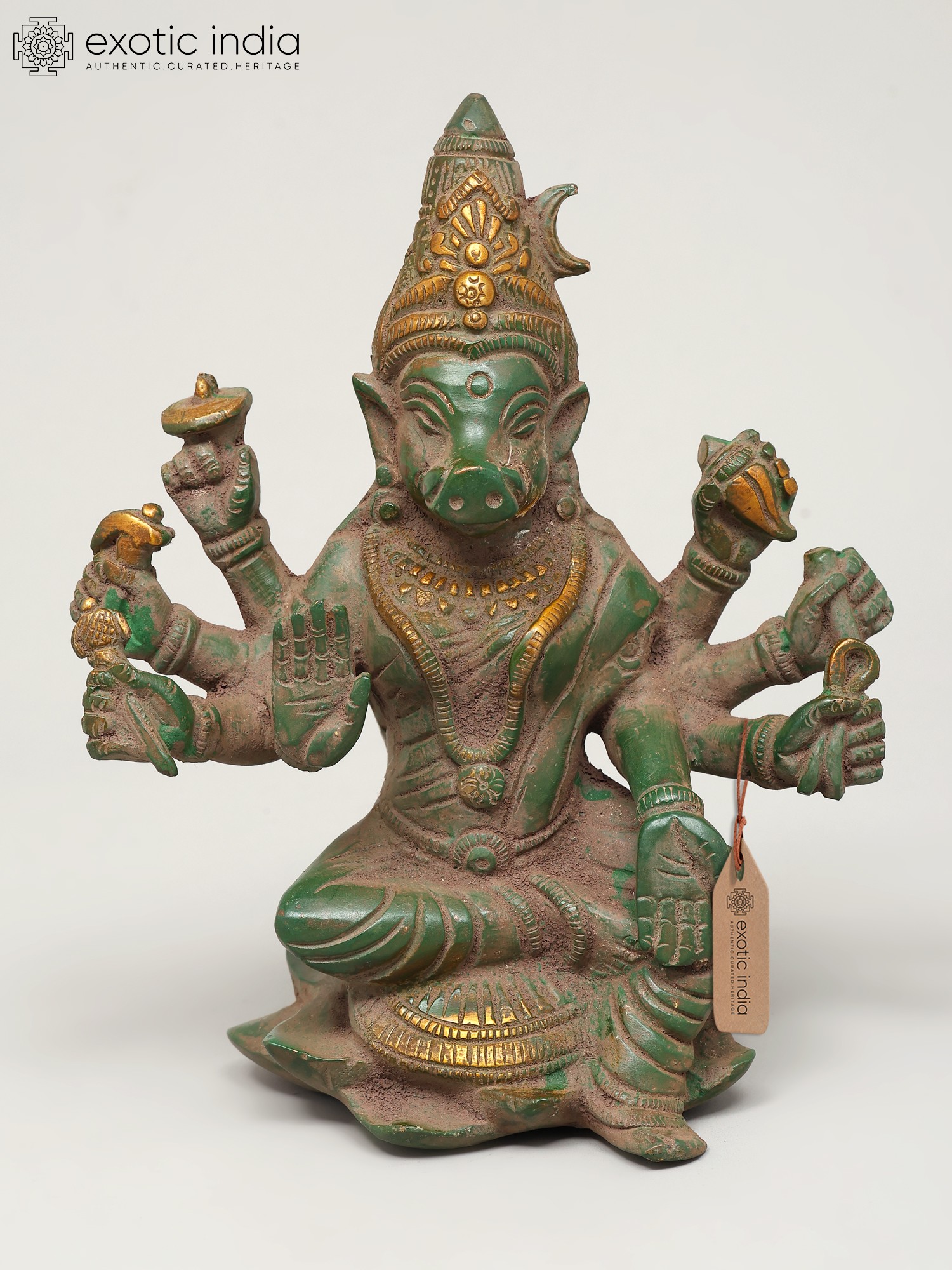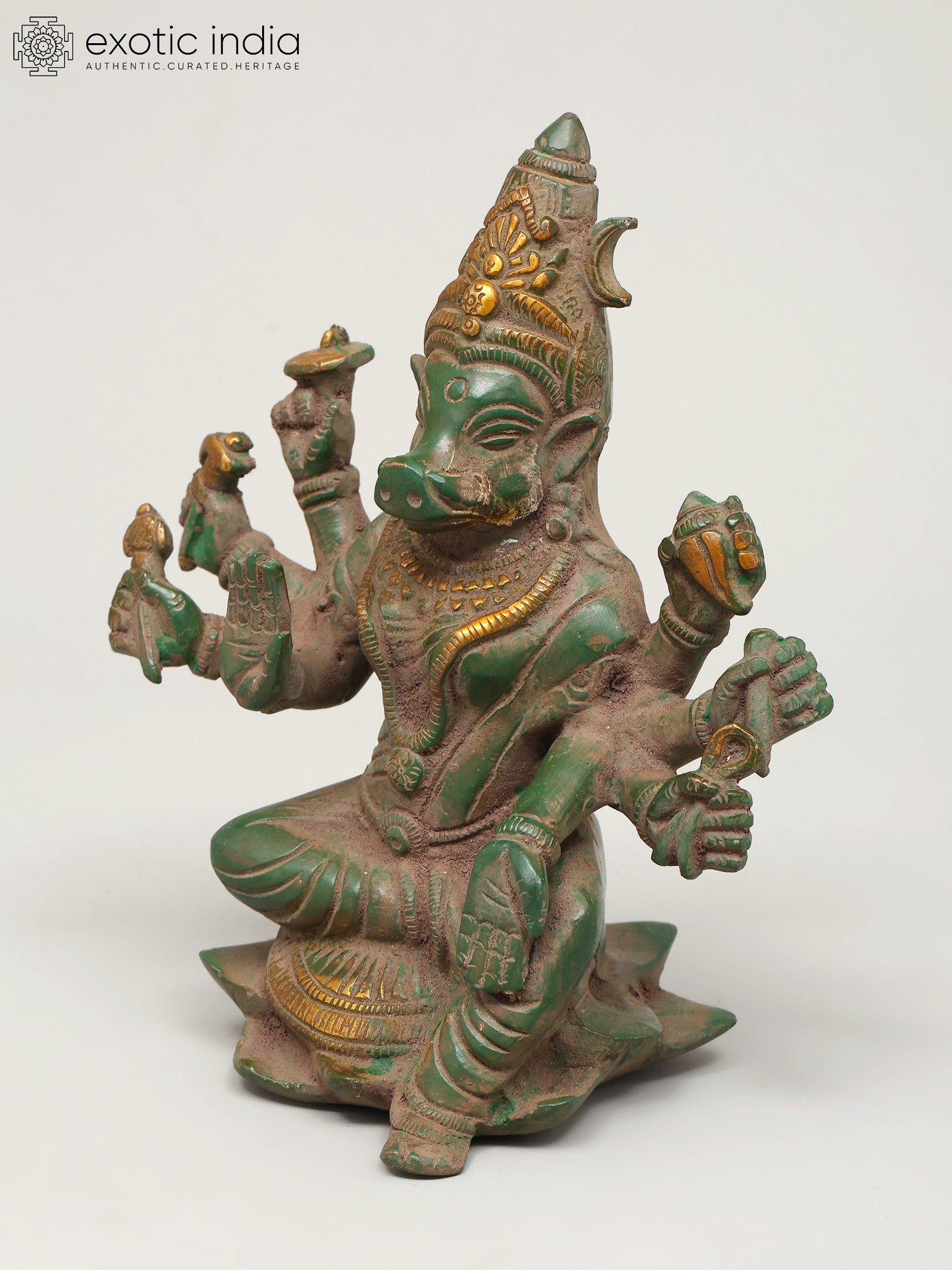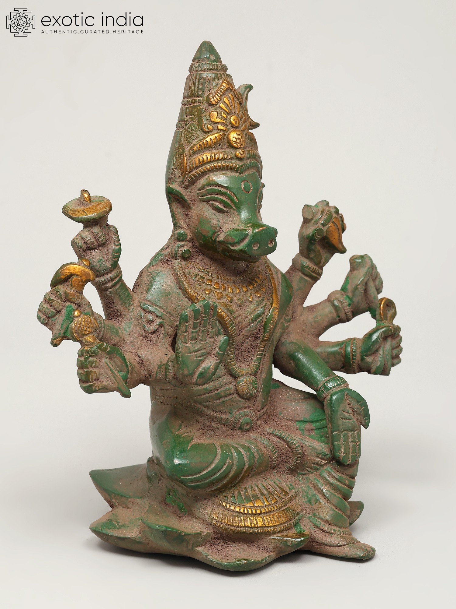 4" Small Superfine Eight Armed Sitting Goddess Varahi | Brass Statue