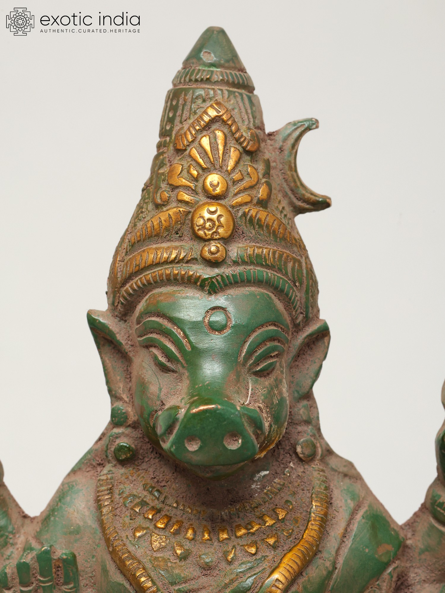 8" Goddess Varahi With Crescent Moon on Head In Brass | Handmade | Made In India