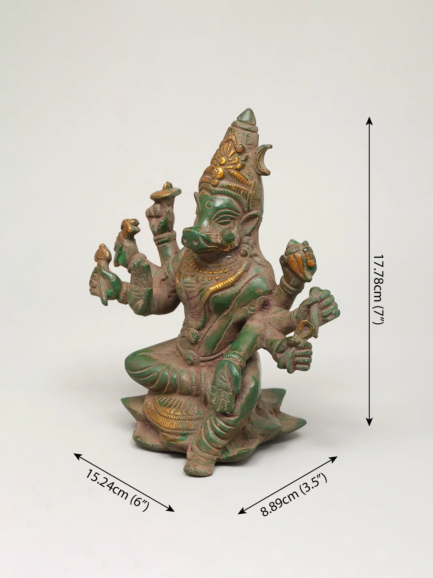 8" Goddess Varahi Brass Sculpture | Handmade