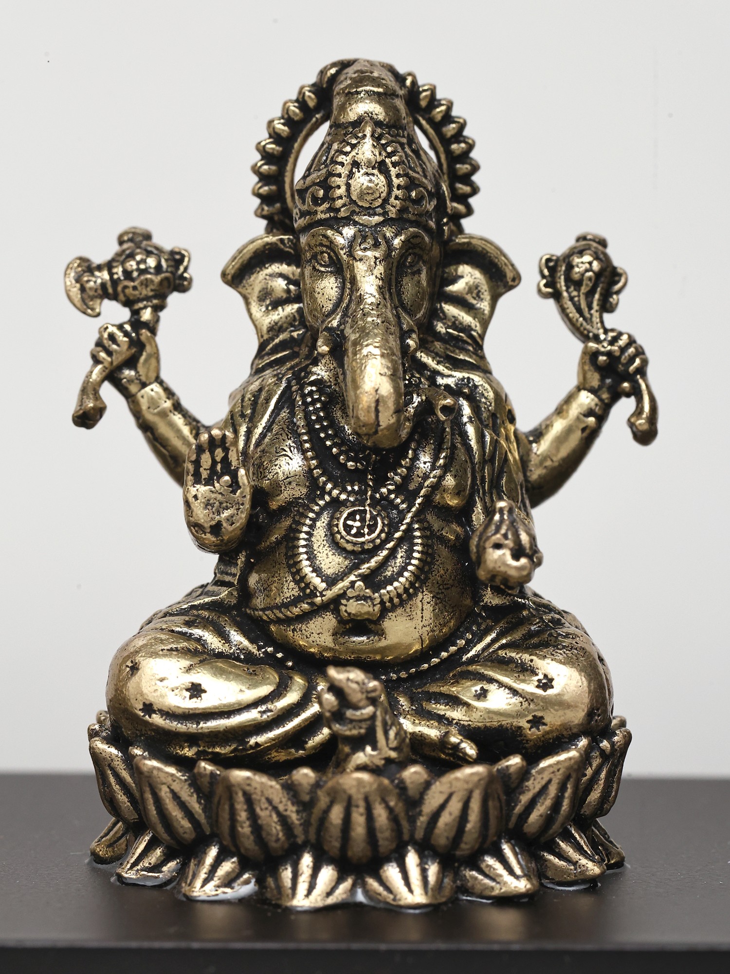 3" Lakshmi-Ganesha Brass Idol | Indian Handicrafts Home Decor
