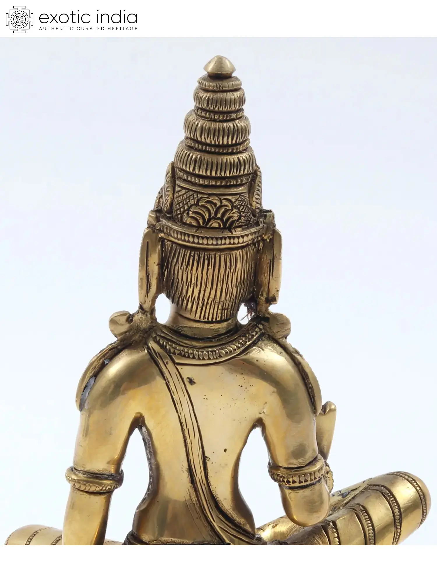 Lalita- the most beautiful feminine form, is an aspect of Adi-Shakti (primordial goddess) Parvati. In this brass statue, Maa Lalita is enthroned on an upturned lotus seat, sitting in the posture of royal ease, also known as Lalitasana. Her supple form is adorned with minimal ornaments, for who could offer adornment to the mother of the universe?