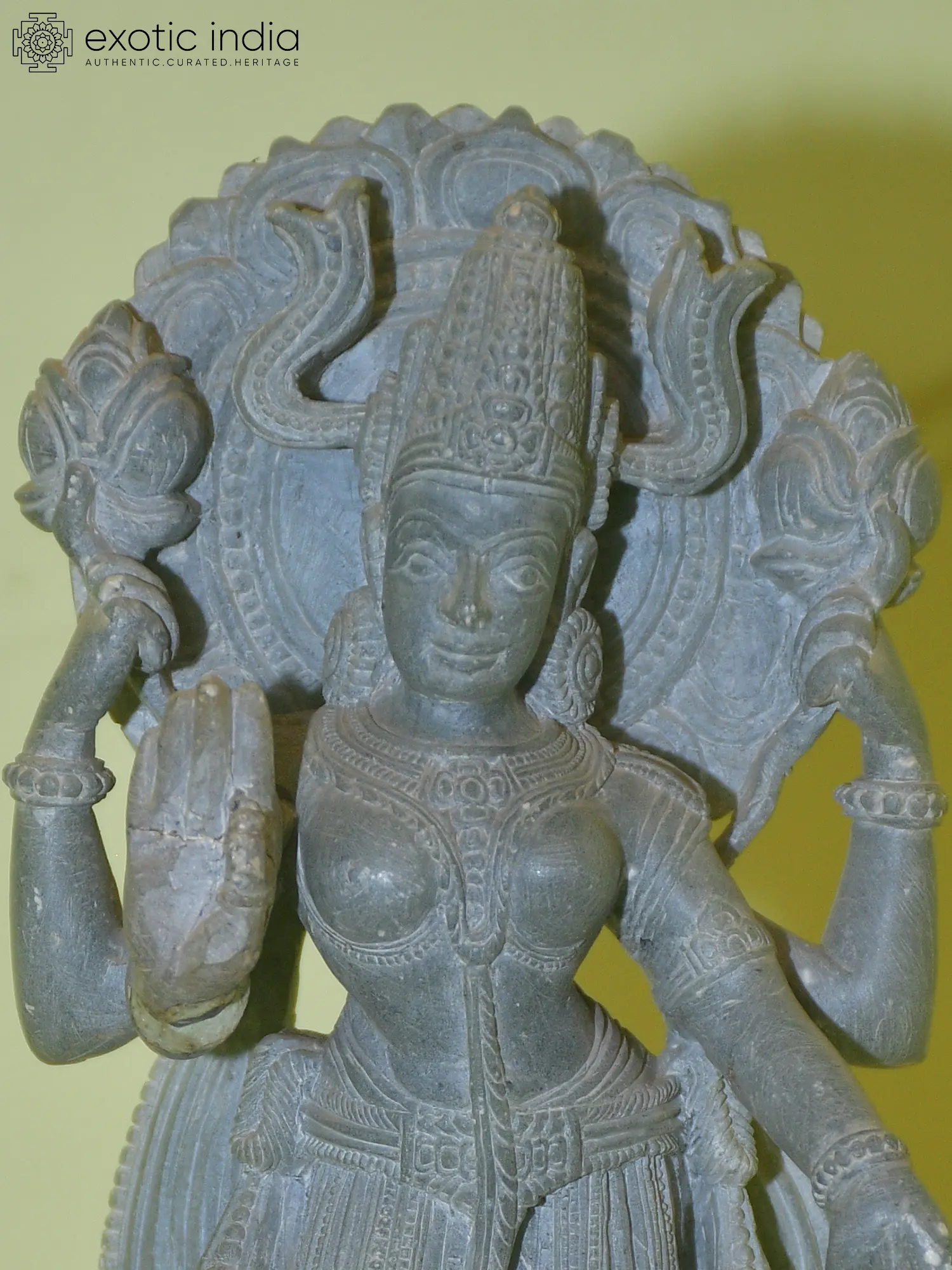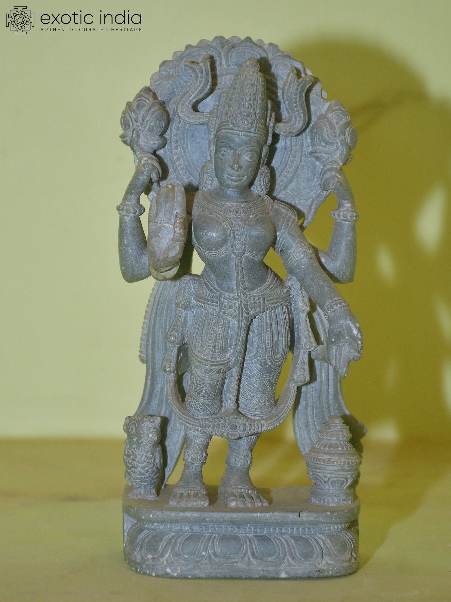 9" Standing Goddess Lakshmi Statue with Prabhavali in Brass
