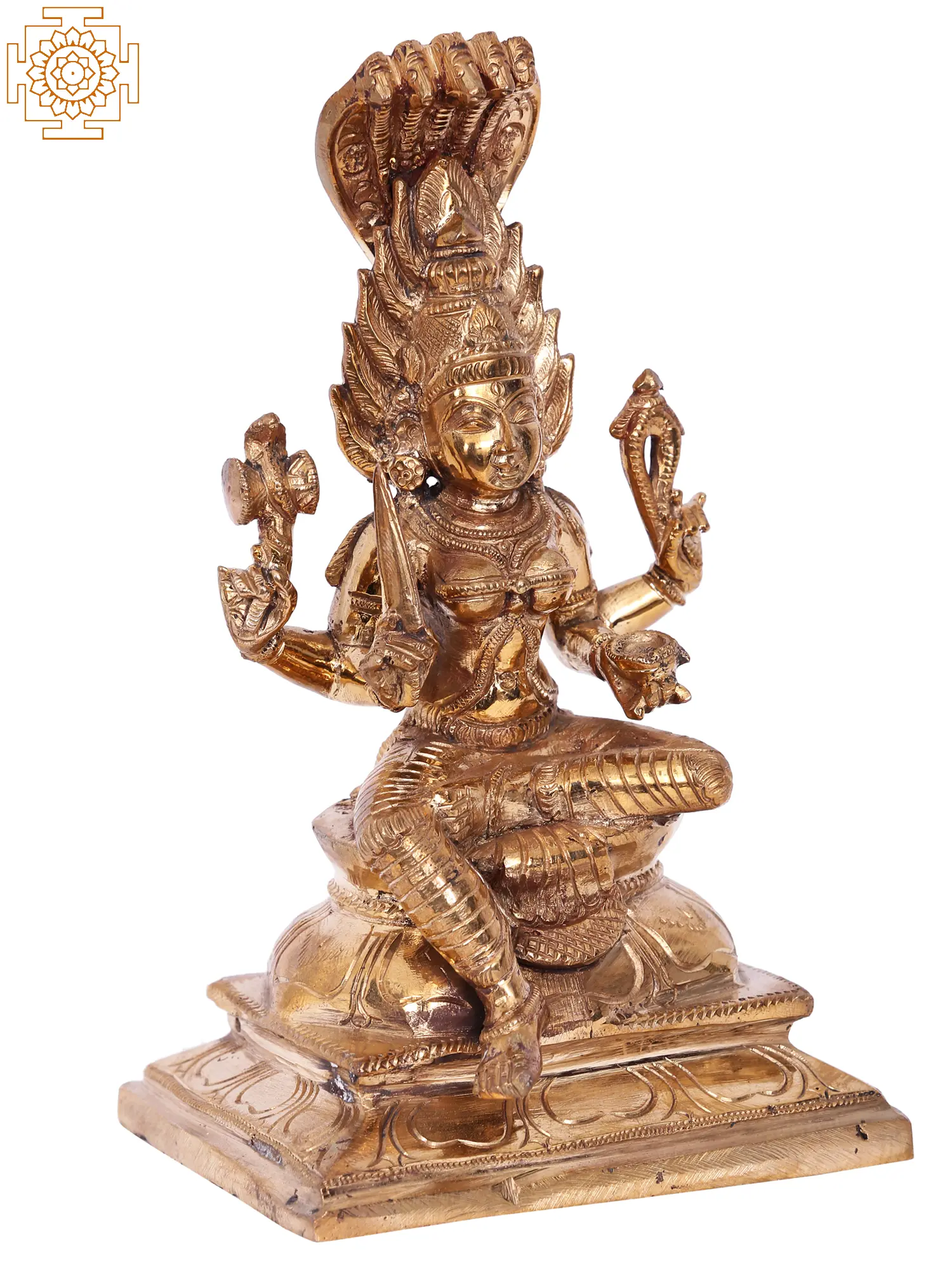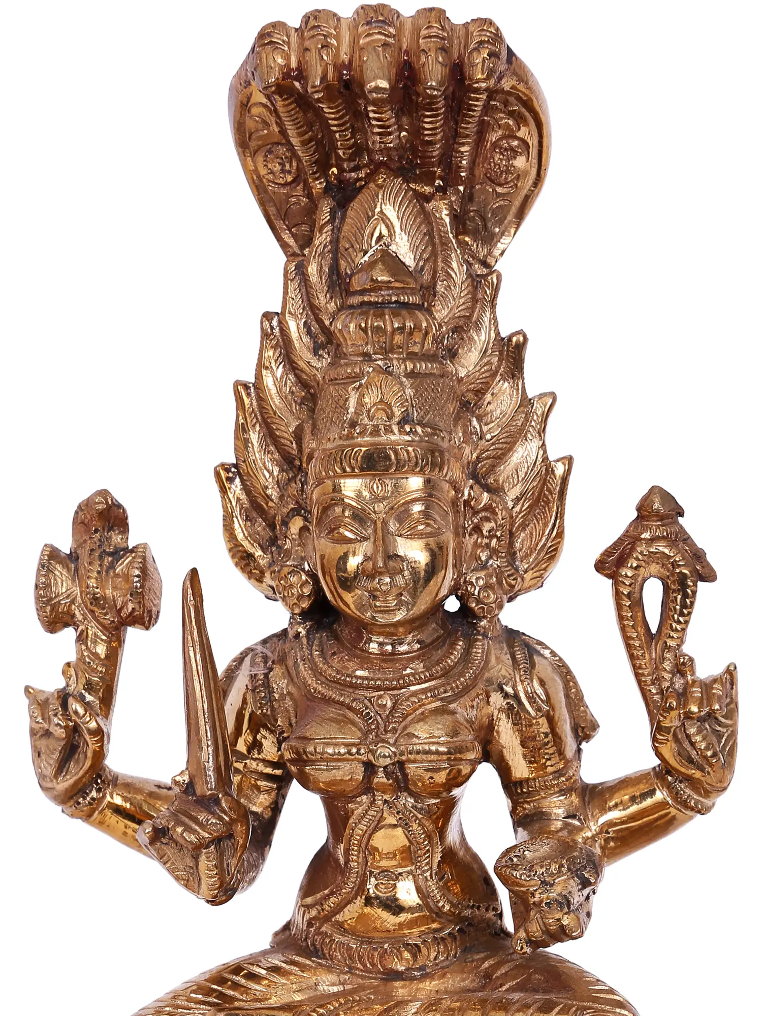 Goddess Mariamman is a revered deity, particularly in South India, where she is worshipped for her ability to bestow blessings of health, prosperity, and protection. Legends tell of her prowess in combating disease and misfortune, often depicted with immense power, capable of dispelling evil forces and bringing solace to her devotees. Her association with the serpent, as symbolized by the multi-headed cobra hood adorning this idol, signifies her control over primal energies and her protective embrace. This representation captures her fierce yet benevolent nature, embodying the strength to overcome obstacles and the compassion to heal. ––––––––––––––––––