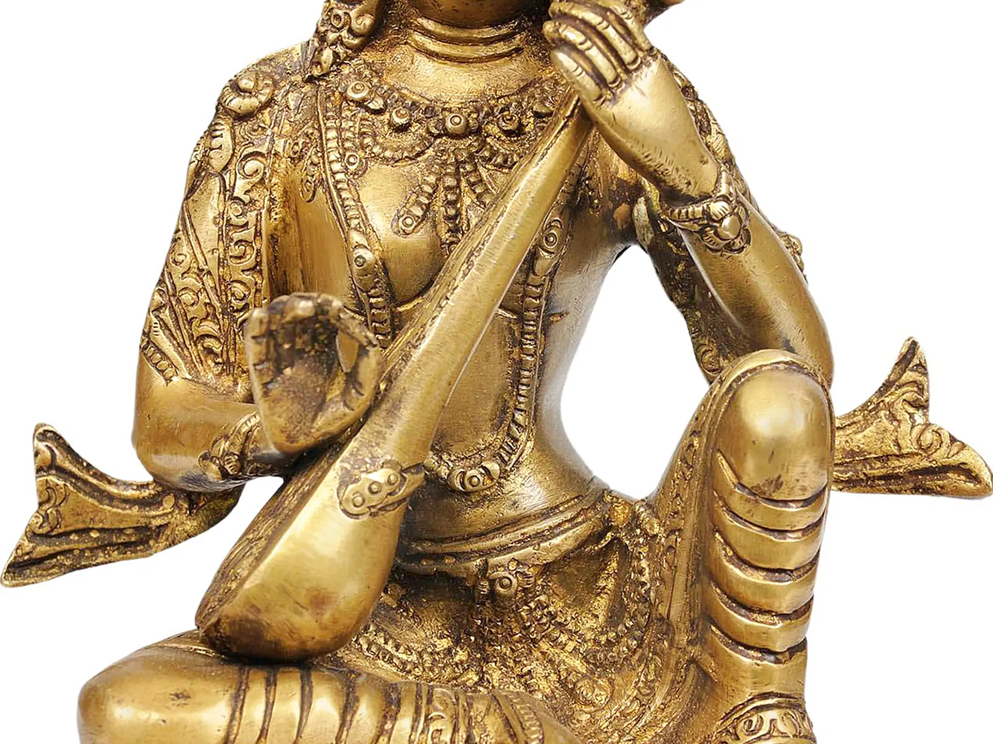 7" Goddess Saraswati in Nepalese Idiom In Brass | Handmade | Made In India