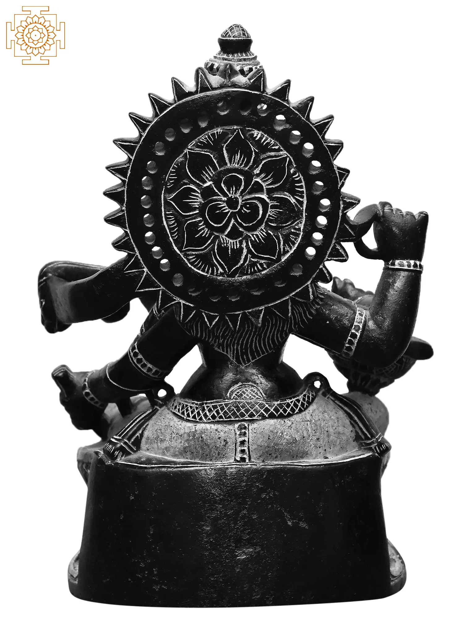 Crafted from the distinctive Kadappa stone, renowned for its deep, rich hue and subtle texture, this statue captures the divine essence of Saraswati with remarkable clarity. Each detail, from the serene expression on her face, framed by a crown adorned with traditional motifs, to the ornate jewelry that graces her form, speaks of meticulous artistry and profound devotion. The surrounding *prabha* (halo) radiates a celestial aura, further enhancing the sacred presence of the goddess. The choice of Kadappa stone itself lends an earthy groundedness to this divine representation, a reminder that knowledge and creativity blossom from the very earth. ––––––––––––––––––––