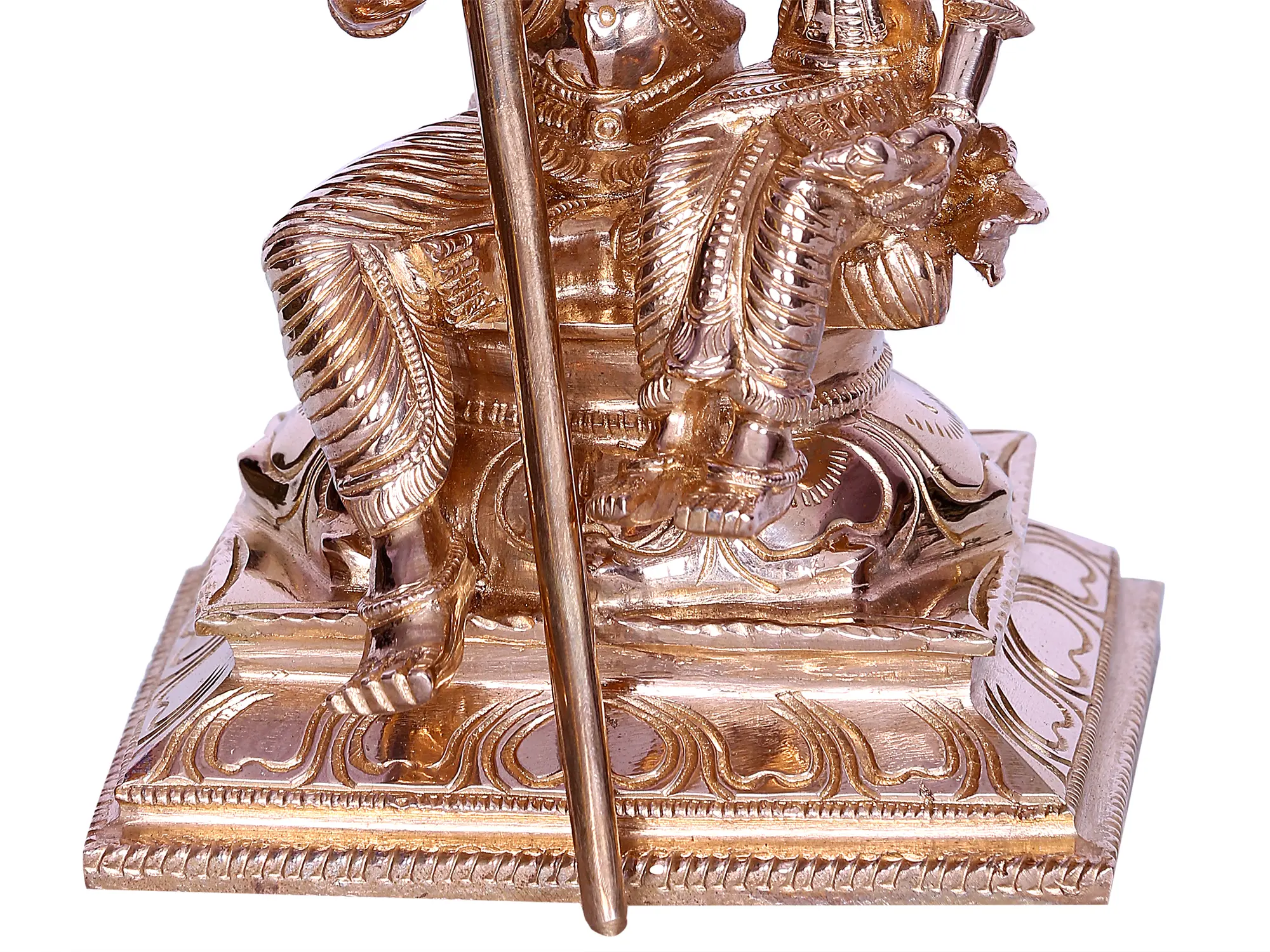 In this bronze rendition, Swarna Akarshana Bhairava emerges as a mesmerizing force, an empowered incarnation of Lord Shiva himself. Cloaked in golden allure, this deity beckons seekers with the promise of opulence and affluence.