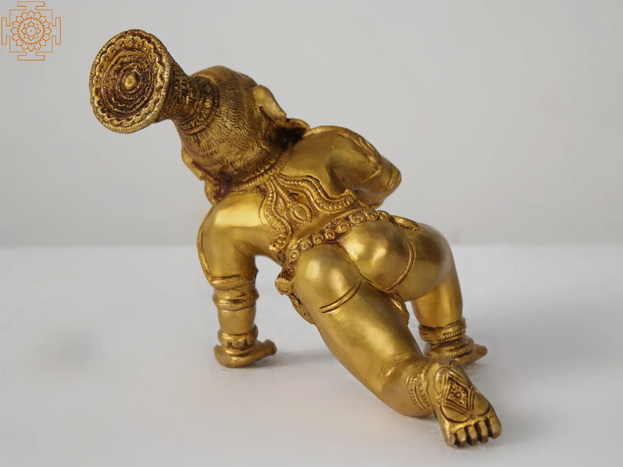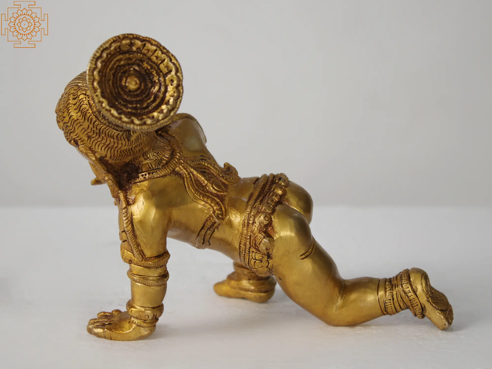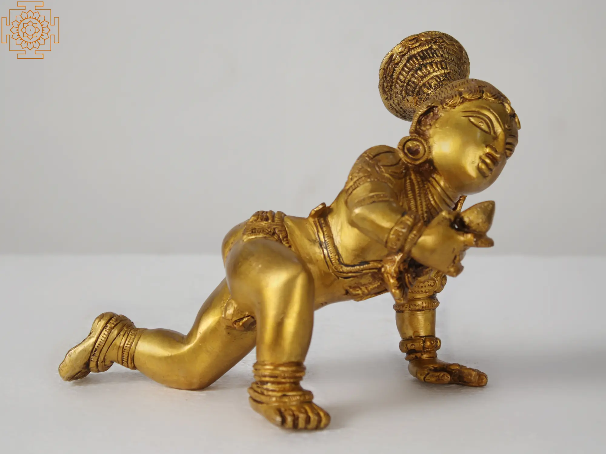 In the embrace of brass, the Laddoo Gopala captures the divine innocence of Lord Krishna. His playful stance, holding the cherished laddoo, carries a deeper symbolism. The sweet confection signifies the rewards of devotion - a reminder that life's simplest joys are often the most satisfying. Krishna's charming visage speaks to the child within us, urging us to dance through existence with a carefree heart. As the laddoo disappears into his smile, we realize that true abundance is found not in possessions, but in the abundance of love and joy that fills our hearts.