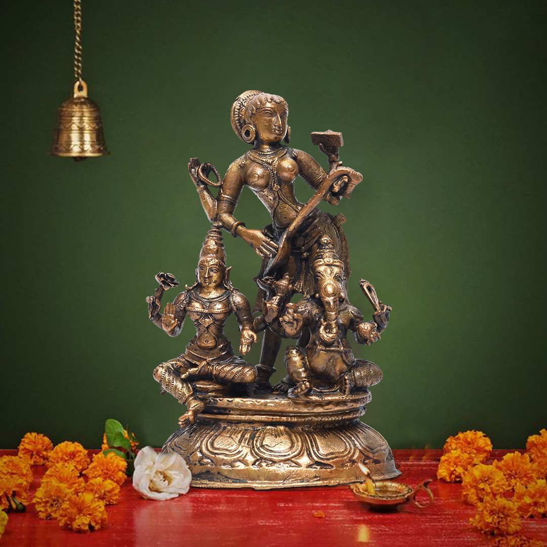 6" Small Standing Vishnu - Lakshmi Pair | Copper Statues