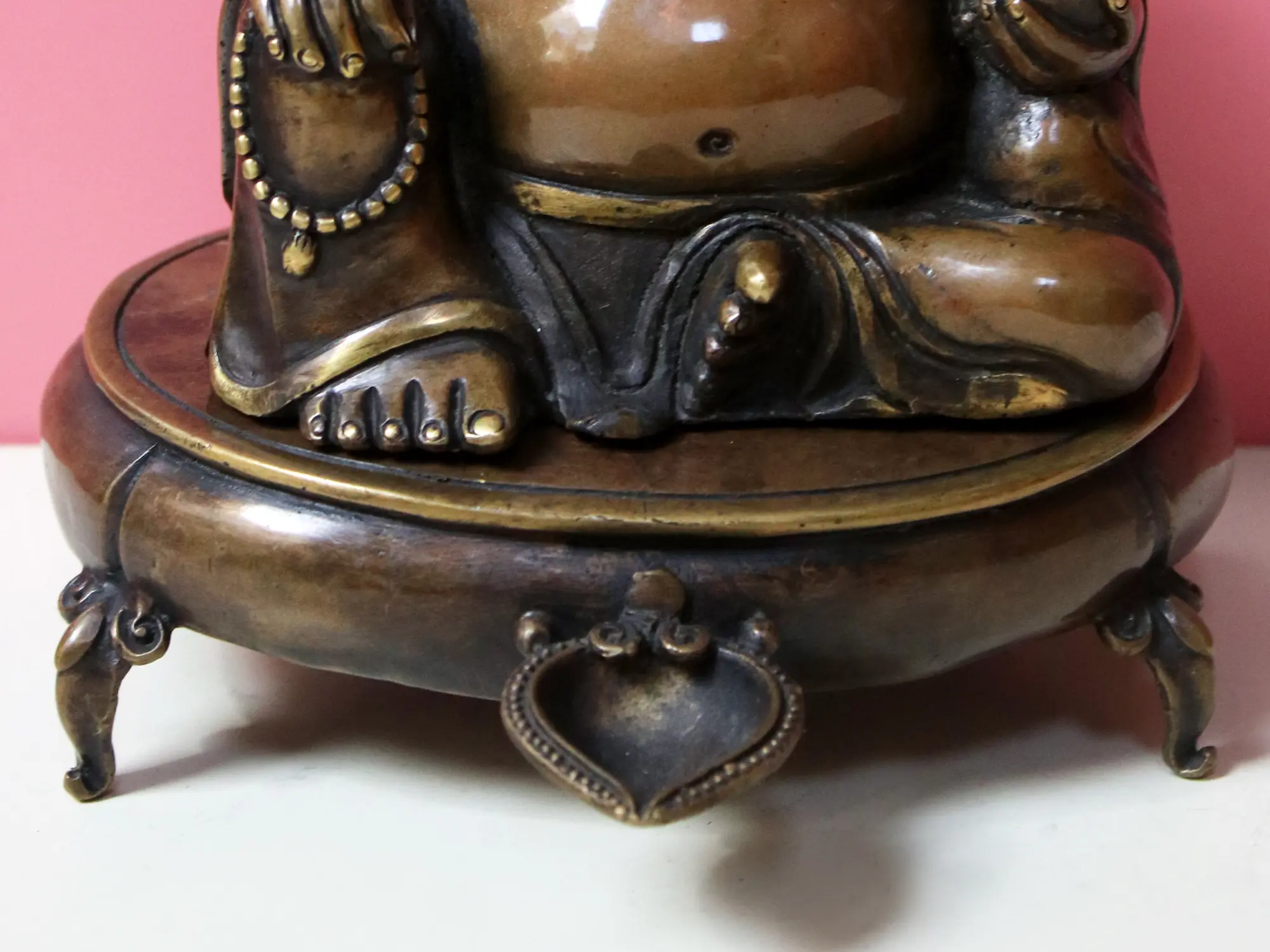 This statue is a testament to the artistry and spiritual devotion of Nepalese craftspeople. Cast from high-quality copper, it possesses a substantial feel and a timeless appeal. The intricate details, from the swirling patterns on his garments and ornaments to the benevolent expression on his face, speak of skilled hands and a deep understanding of the iconography associated with this revered figure. The warm, rich patina of the copper is a result of careful finishing, designed to enhance its beauty over time, much like the wisdom gained through a life well-lived.