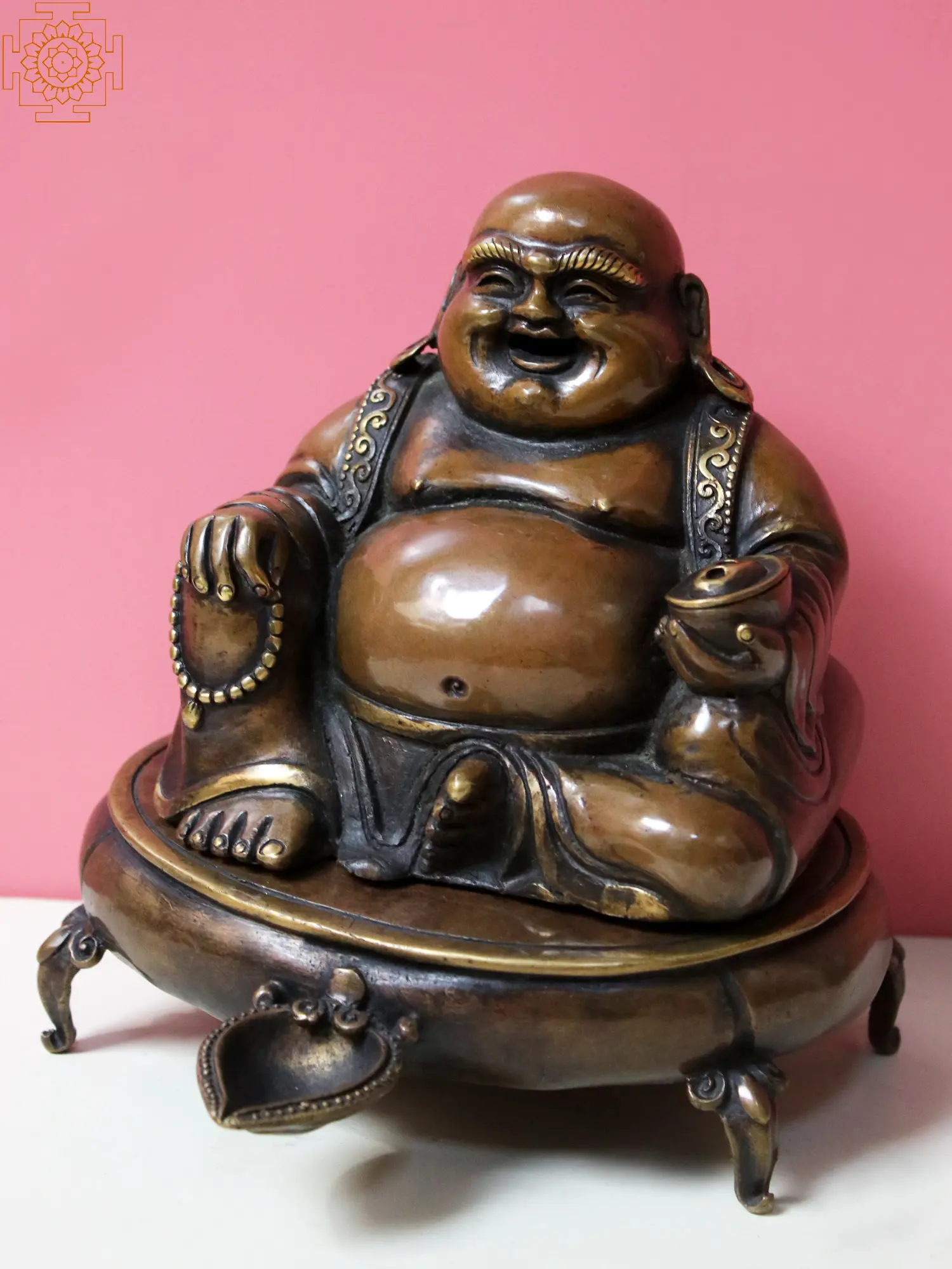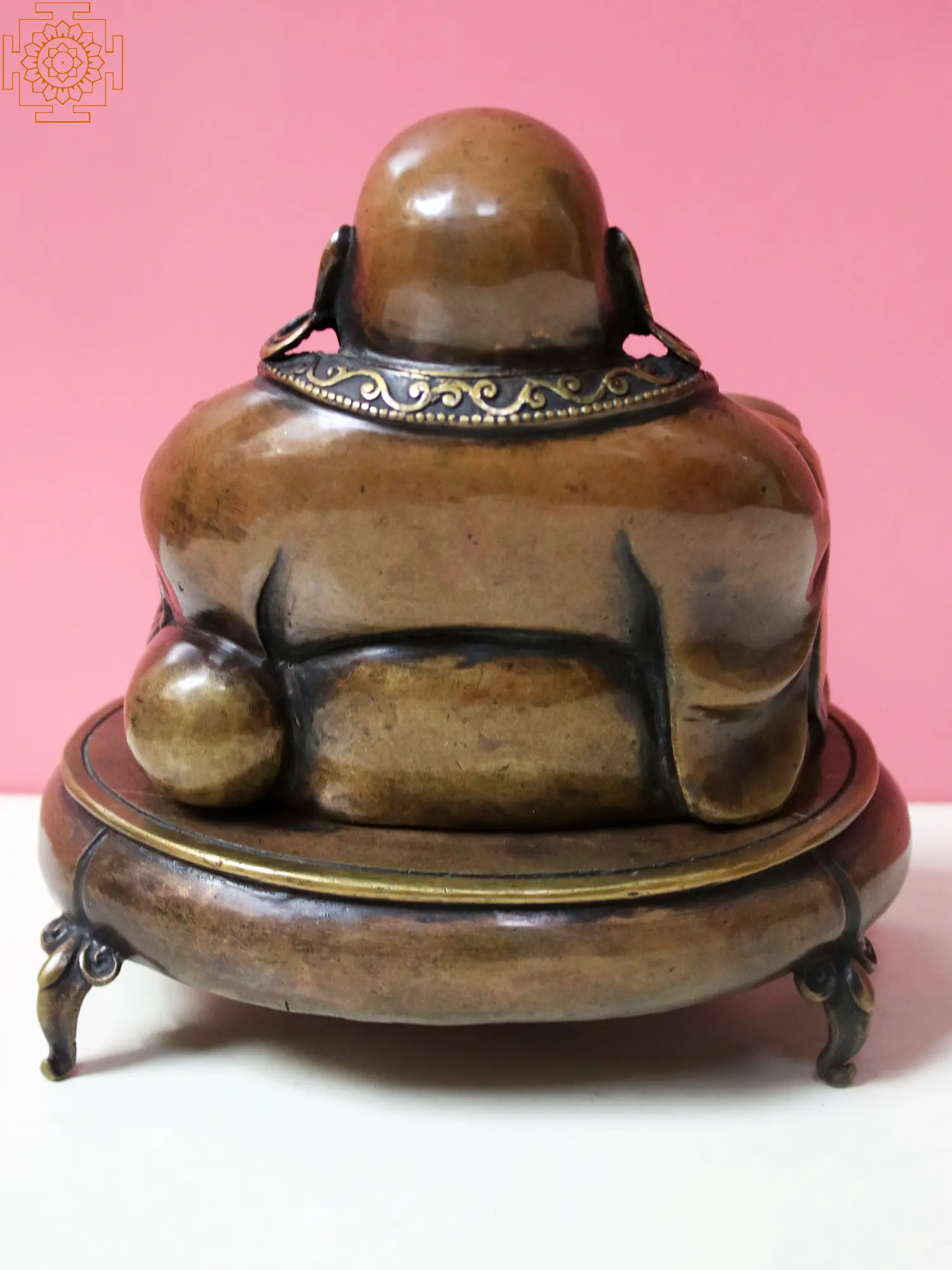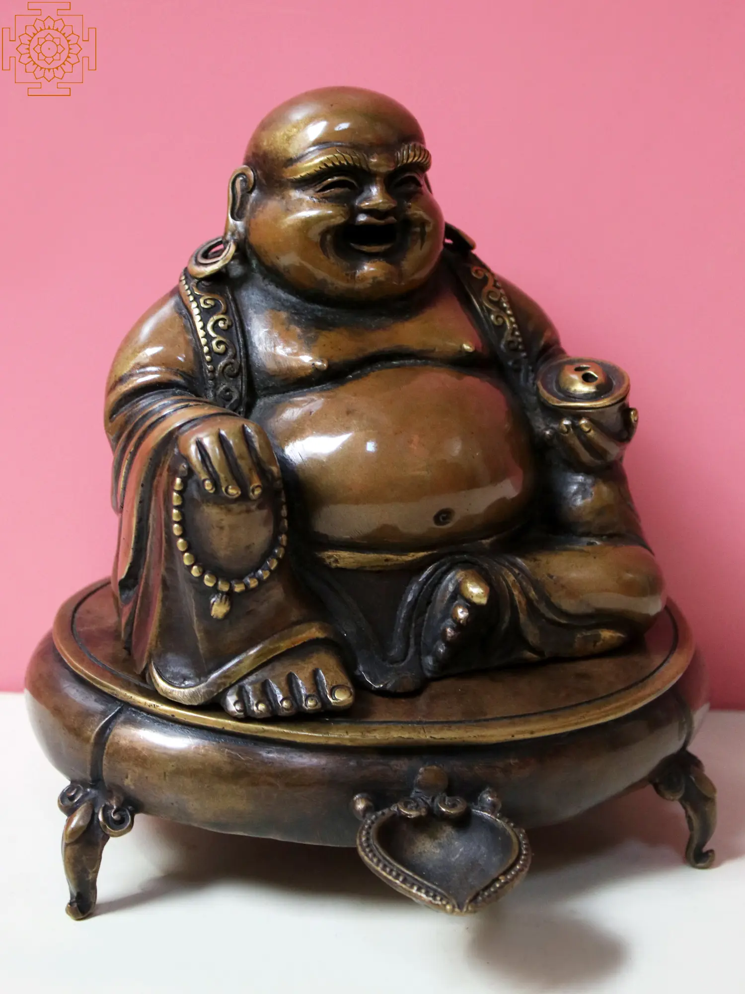 Invite an aura of prosperity, contentment, and infectious joy into your home or sacred space with this exquisite copper statue, meticulously crafted in Nepal. This radiant depiction of the Laughing Buddha, also known as Budai, embodies a spirit of generosity and a life lived in happiness. His broad smile and rounded belly are iconic symbols of good fortune, representing a life filled with abundance and freedom from worldly worries.