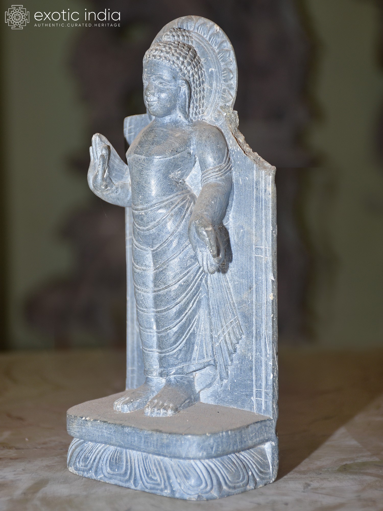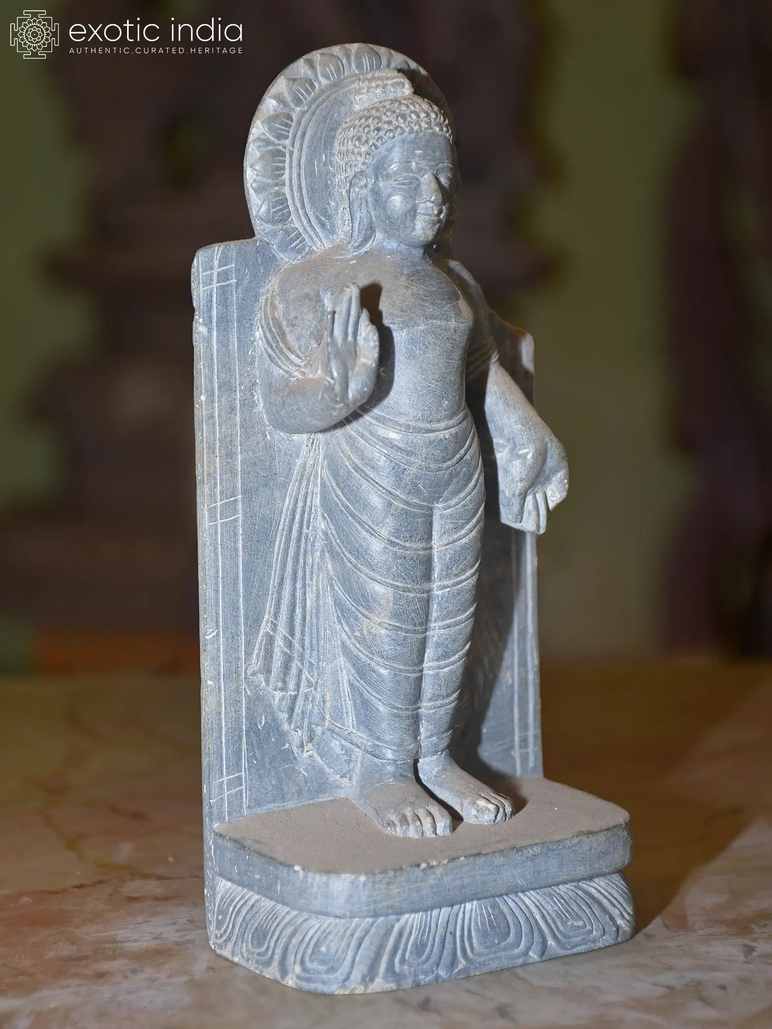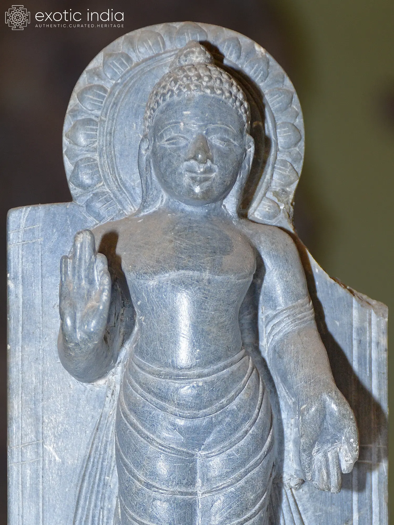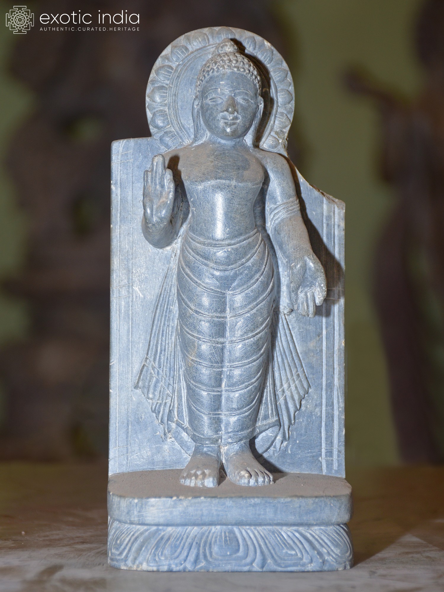 18" Turquoise Toned Standing Lord Buddha | Brass Statue
