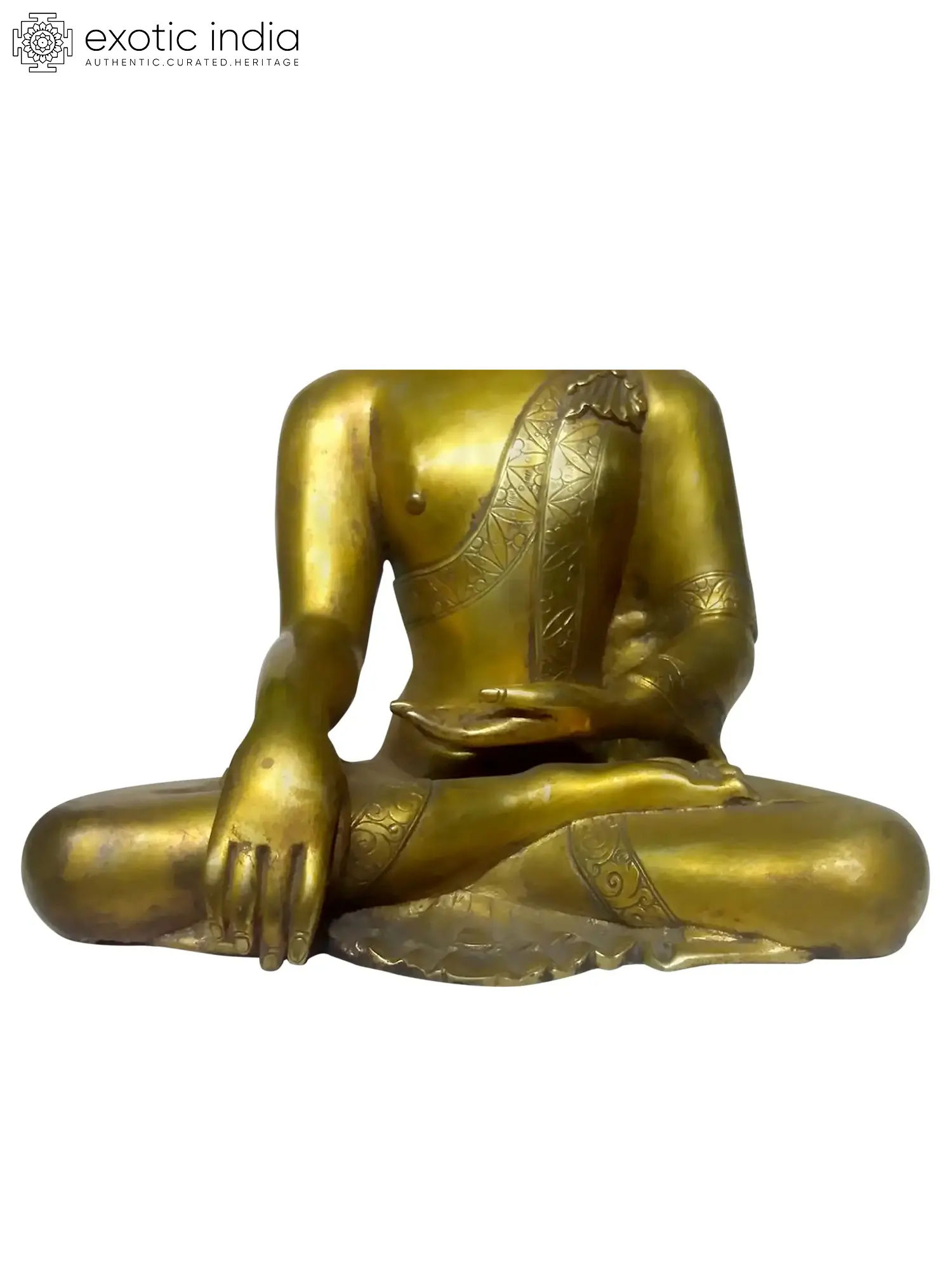 14" Copper Buddha Statue in Bhumi-Sparsha Mudra From Nepal
