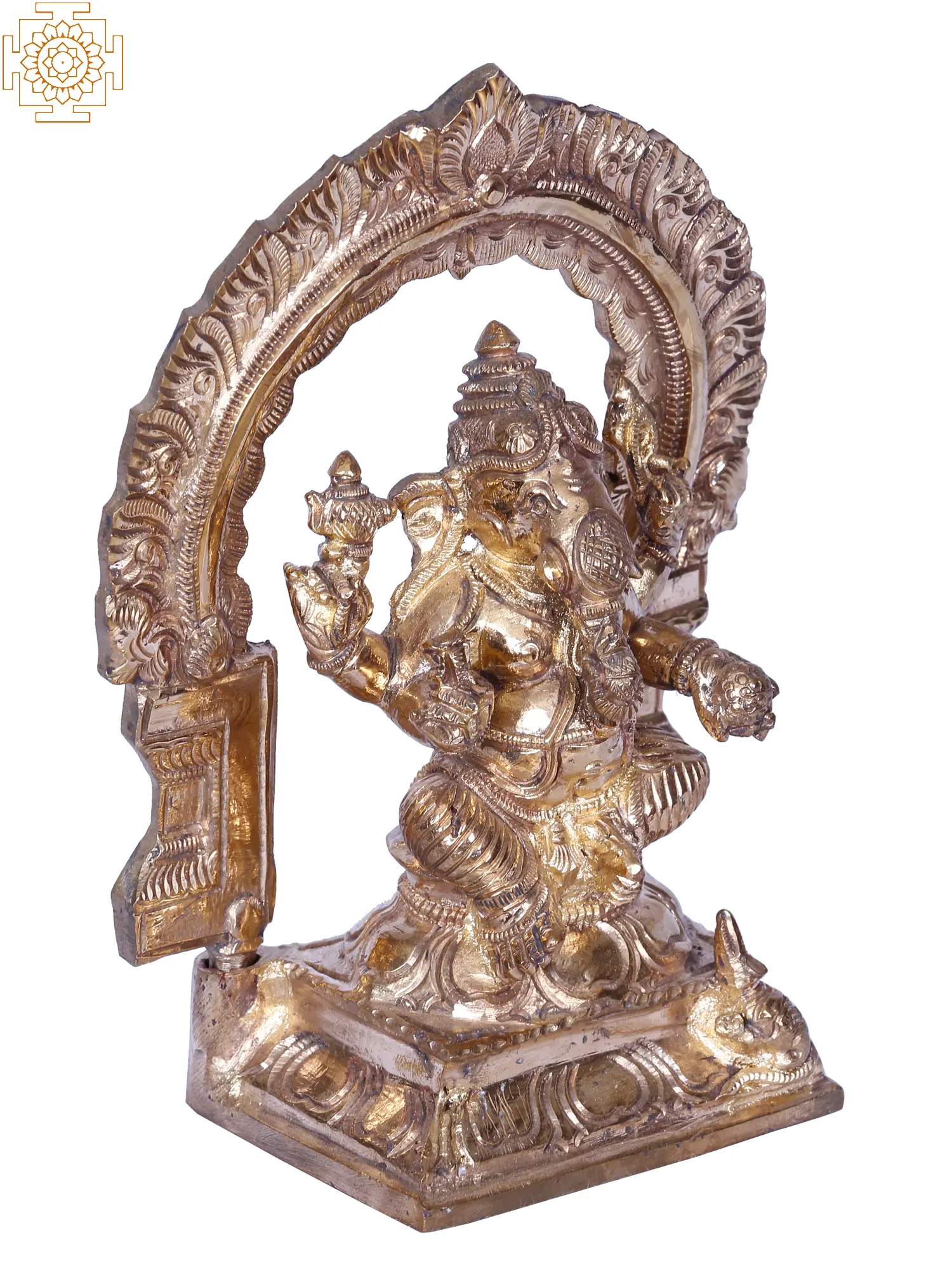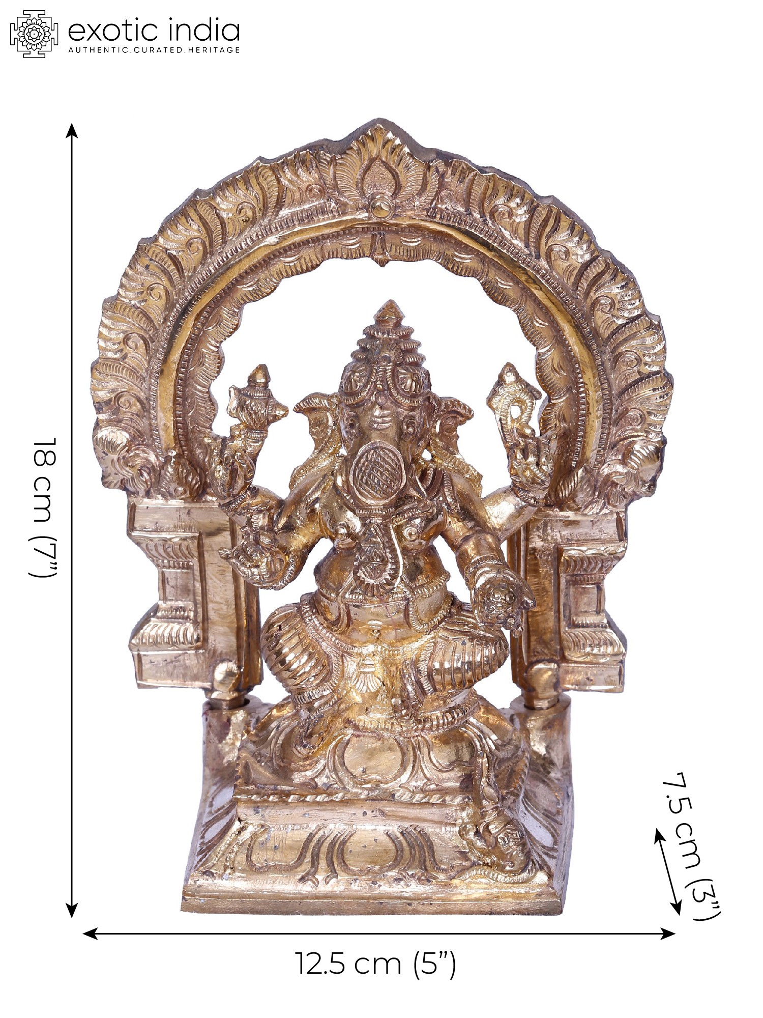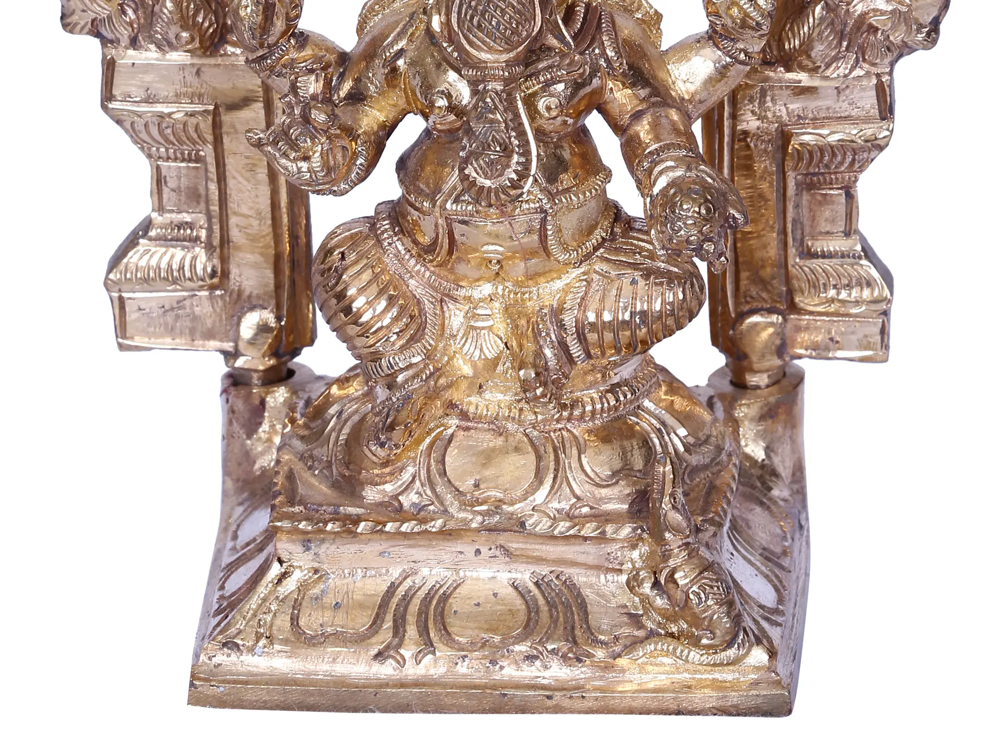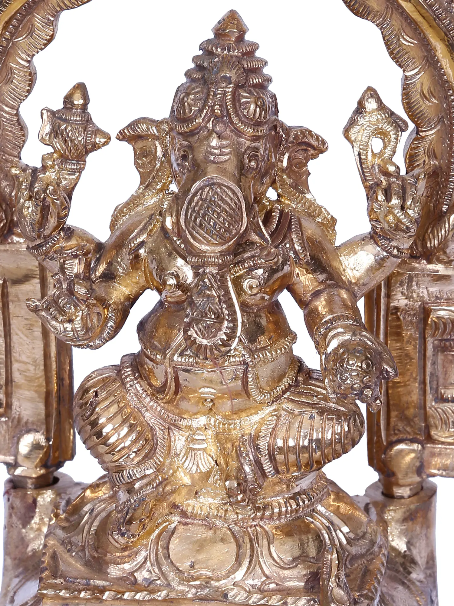 In the sanctuary of your abode, Lord Ganesha, “the Lord of Virtues”, reigns supreme upon a celestial throne. His divine visage, adorned in resplendent regalia, exudes an ethereal grace. With upper hands wielding a “goad” and “noose”, symbols of guidance and control, and lower hands cradling “a broken tusk and a modak”, emblematic of sacrifice and sweetness, Ganesha, “the bestower of eternal bliss”, embodies cosmic harmony. Crafted in bronze, this sacred artwork, a conduit to spiritual realms, fosters auspicious energies, dispelling obstacles and inviting prosperity. A venerated guardian, Ganpati bestows blessings upon your home, fostering wisdom, auspicious beginnings, and the sweetness of life’s triumphs. His presence invites serenity, shaping your sacred space into a haven of divine grace.