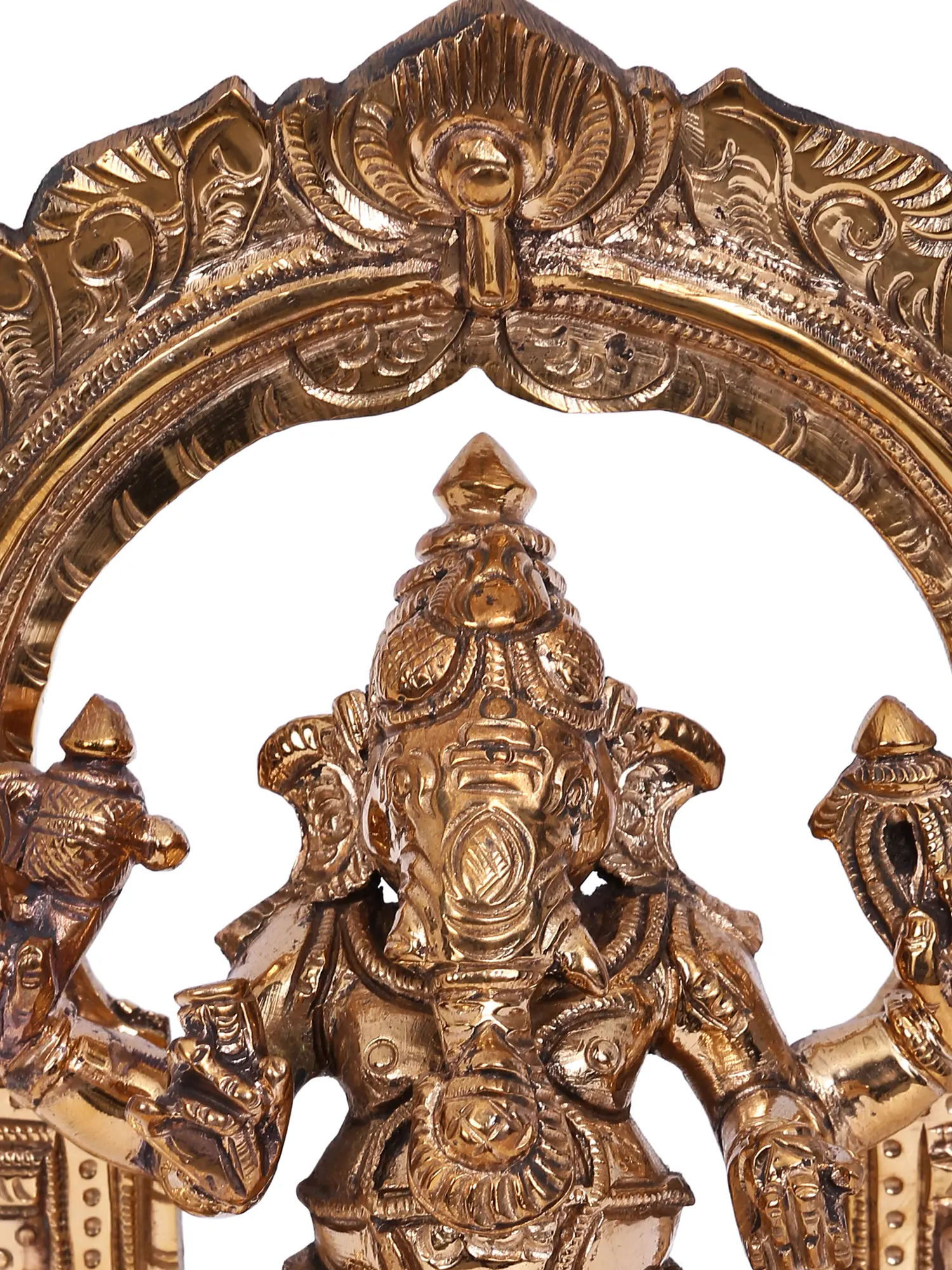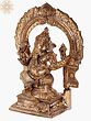 The Madhuchista Vidhana, or lost-wax casting, is an art form that has been perfected over centuries. This meticulous process involves creating a wax model of the desired sculpture, which is then covered in clay. Once the clay hardens, it is fired, melting away the wax and leaving a hollow mold. Molten bronze is poured into this mold, and as it cools, it takes on the exact form of the original wax model. The clay is then broken away, revealing the finished bronze sculpture. This method allows for incredibly fine detailing, as seen in the elaborate carvings on the throne, the delicate ornamentation on Ganesha's form, and the radiant arch that crowns the deity. The lustrous finish of the Panchaloha bronze further enhances the divine aura of this piece, making it a truly remarkable work of art and a powerful symbol of faith.