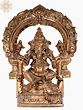 9" Sitting Lakshmi Ganesha Brass Sculpture | Wood Framed Wall Hanging