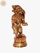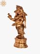 In this ‘panchaloha’ bronze sculpture, Ganesha’s pot-bellied figure is standing proudly with the manuscript of the epic Mahabharata in one hand, and his broken tusk with the other. It is narrated that sage Vyasa requested Ganesha to take down the narration of the epic, and Ganesha is said to have agreed only on the condition that Vyasa continuously proceeds with it. Vyasa agrees, but not before asking of Ganesha to take down what is being narrated only after our Ekdanta God has understood Vyasa’s saying, in hopes for allowing the sage to recuperate and tire by speaking endlessly. It was during this process that the writing instrument that Ganesha had in his hand broke, and in order to not disturb Vyasa, Ganesha broke his own tusk to use as a pen and continue with the transcription.
