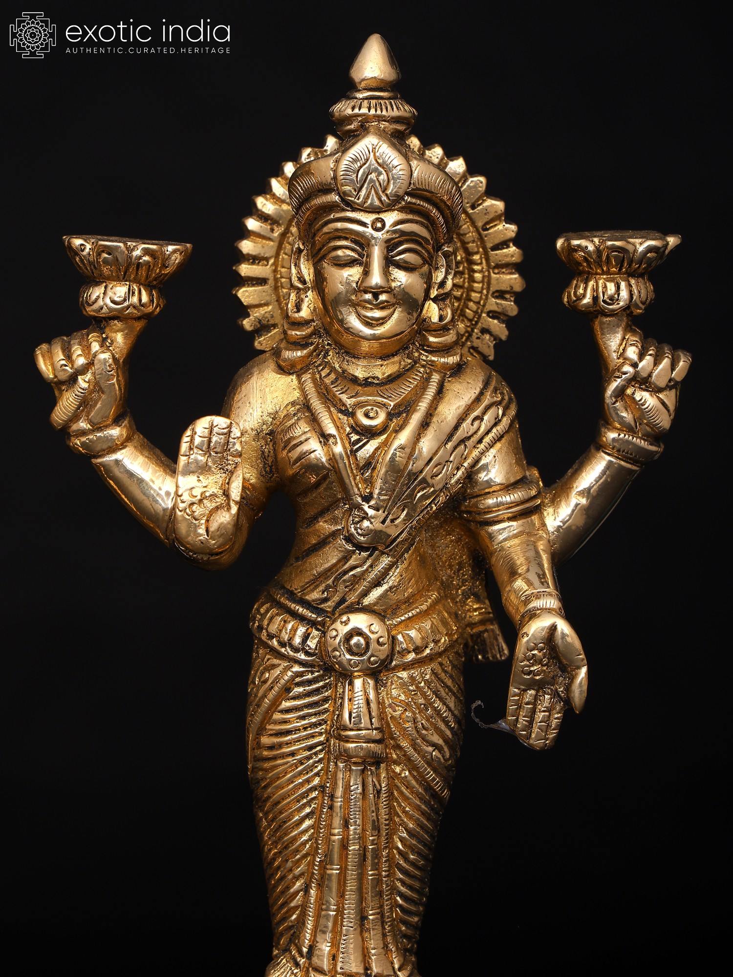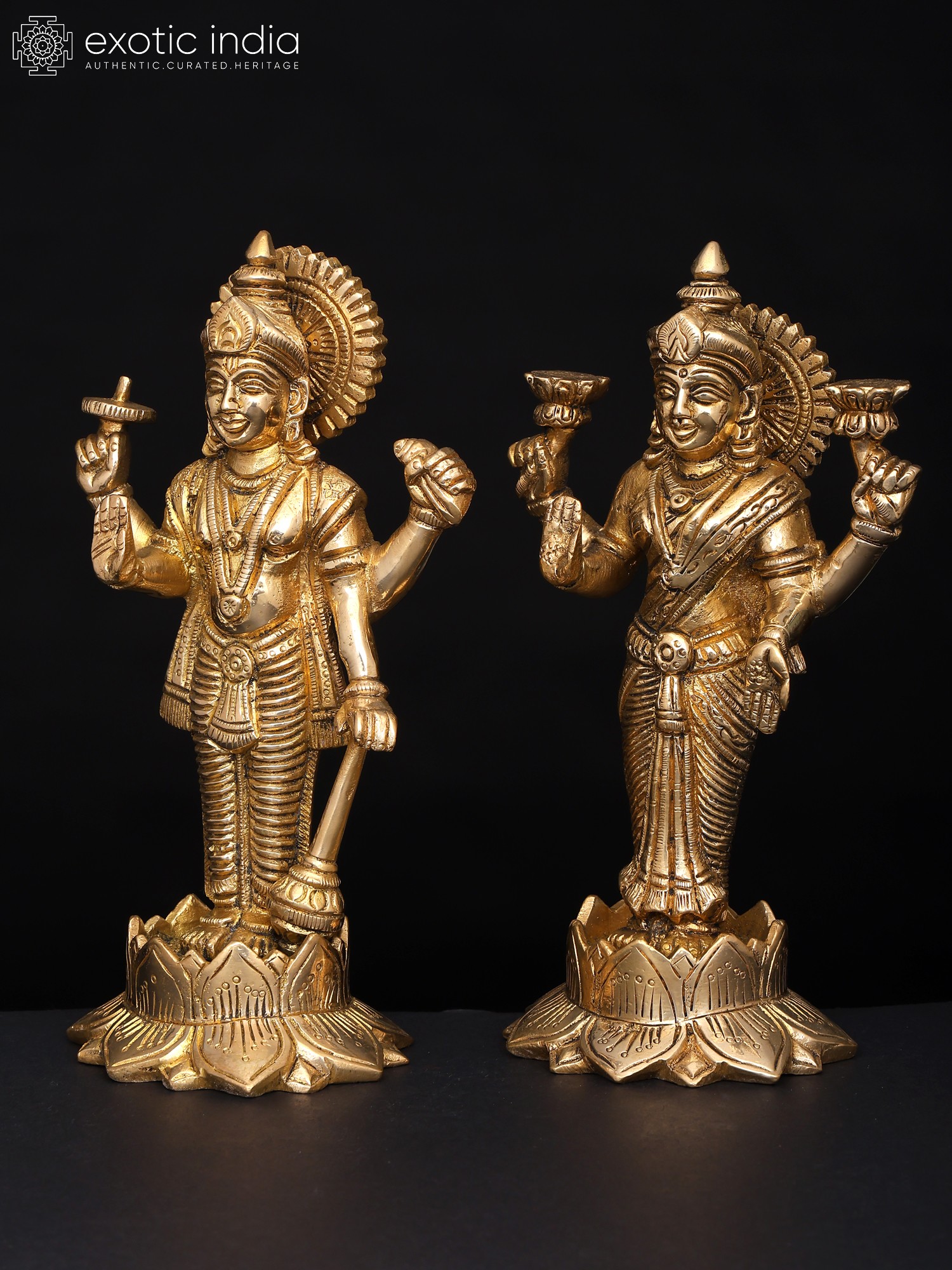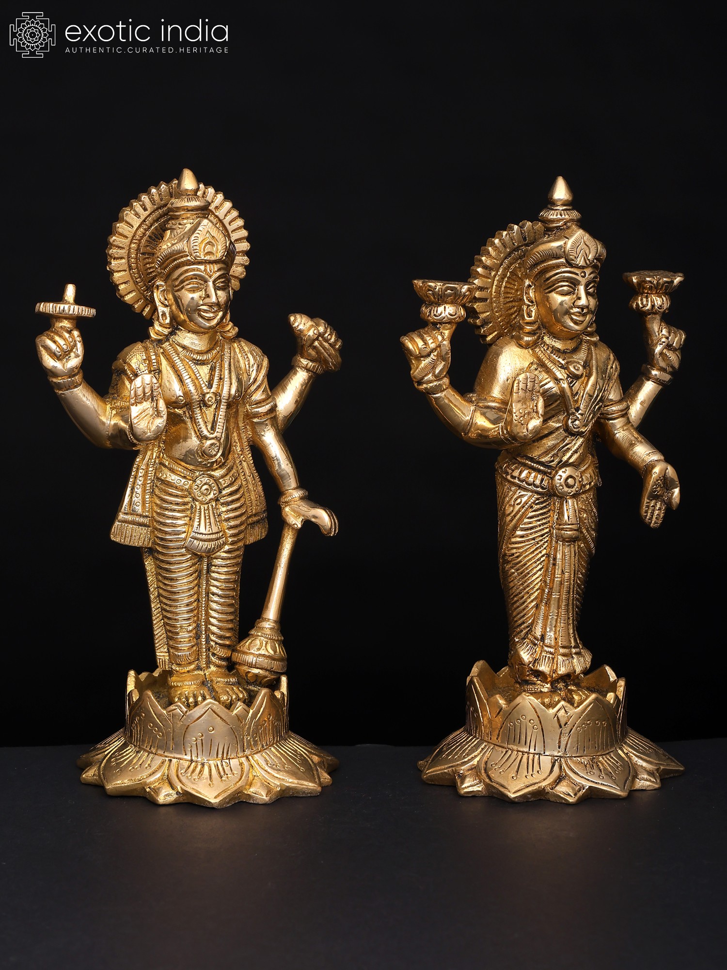 Crafted from high-quality brass, this statue is a testament to the skill of Indian artisans who have preserved ancient traditions of metalwork. The meticulous detailing, from the divine features of the deities to the delicate petals of the lotus base, showcases a deep reverence for the subject matter. The warm, golden hue of the brass evokes the divine light and spiritual purity associated with these revered deities. Placing this statue in your home or sacred space can serve as a constant reminder of divine presence, cosmic balance, and the pursuit of prosperity and spiritual growth. It is more than just an artifact; it is an invitation to invite divine blessings and harmony into your life.