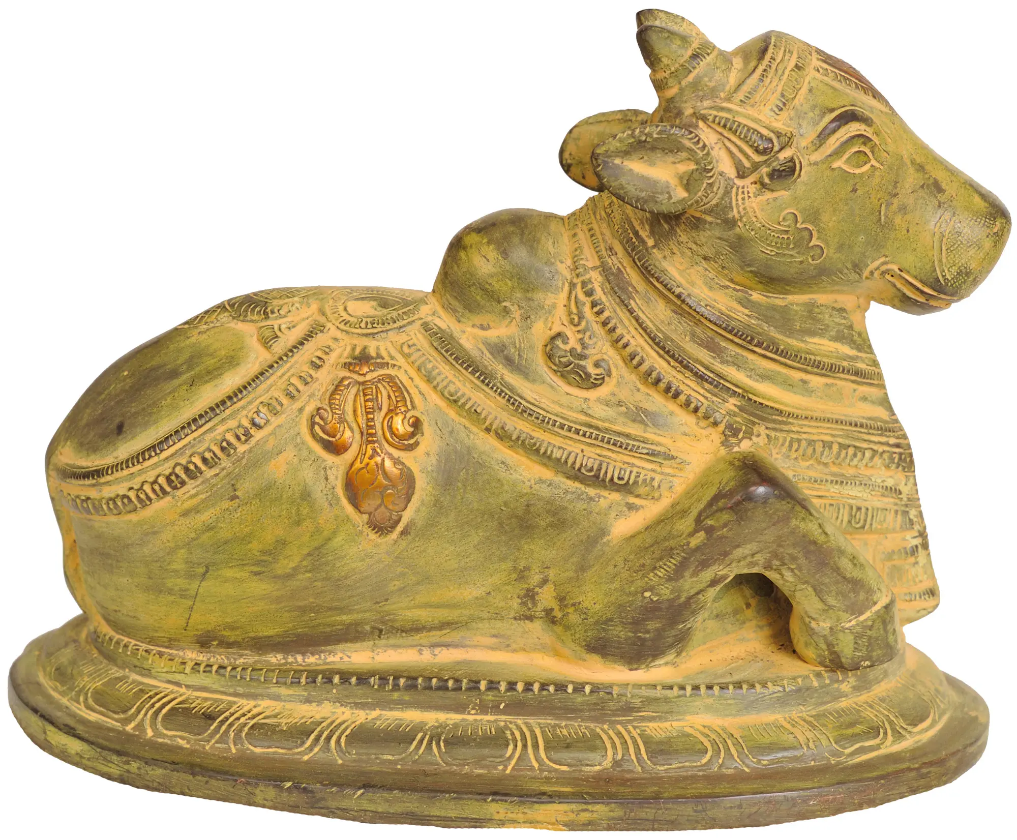 sculpture, crafted in brass, depicts the devoted bull who serves as the