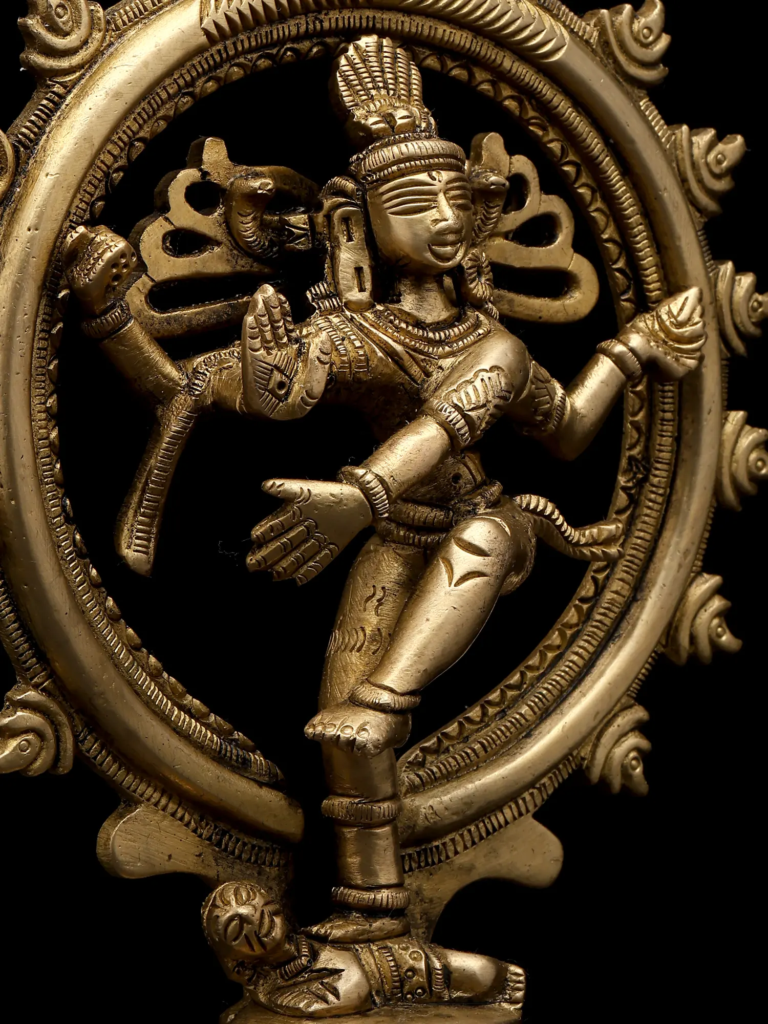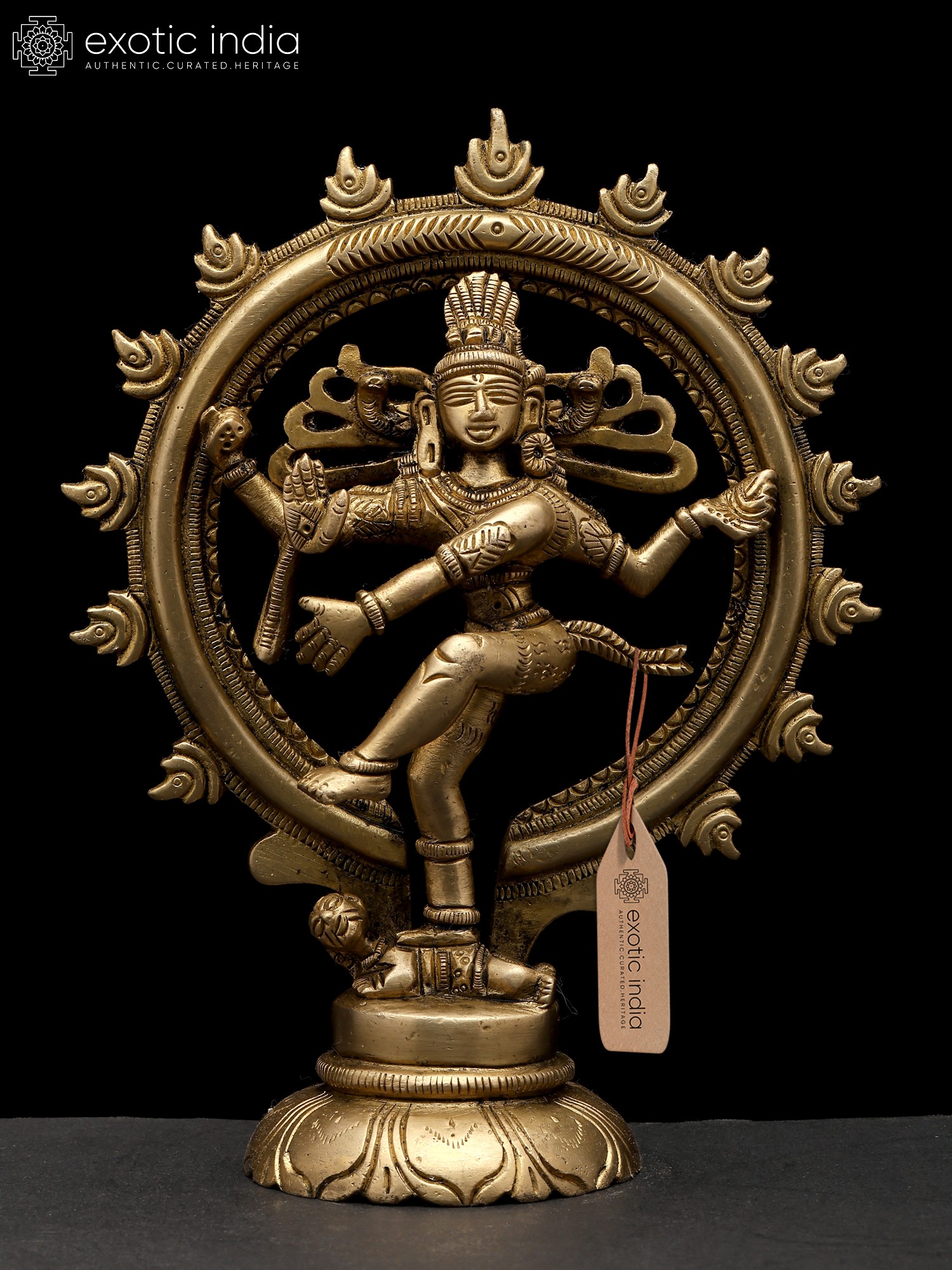 This exquisite brass rendition captures the divine energy and profound symbolism of Nataraja, the dancing form of Lord Shiva. Nataraja is not merely a deity but a cosmic principle, representing the eternal cycle of creation, preservation, and destruction. This meticulously crafted statue embodies that powerful narrative, making it a captivating centerpiece for any sacred space or art collection.
