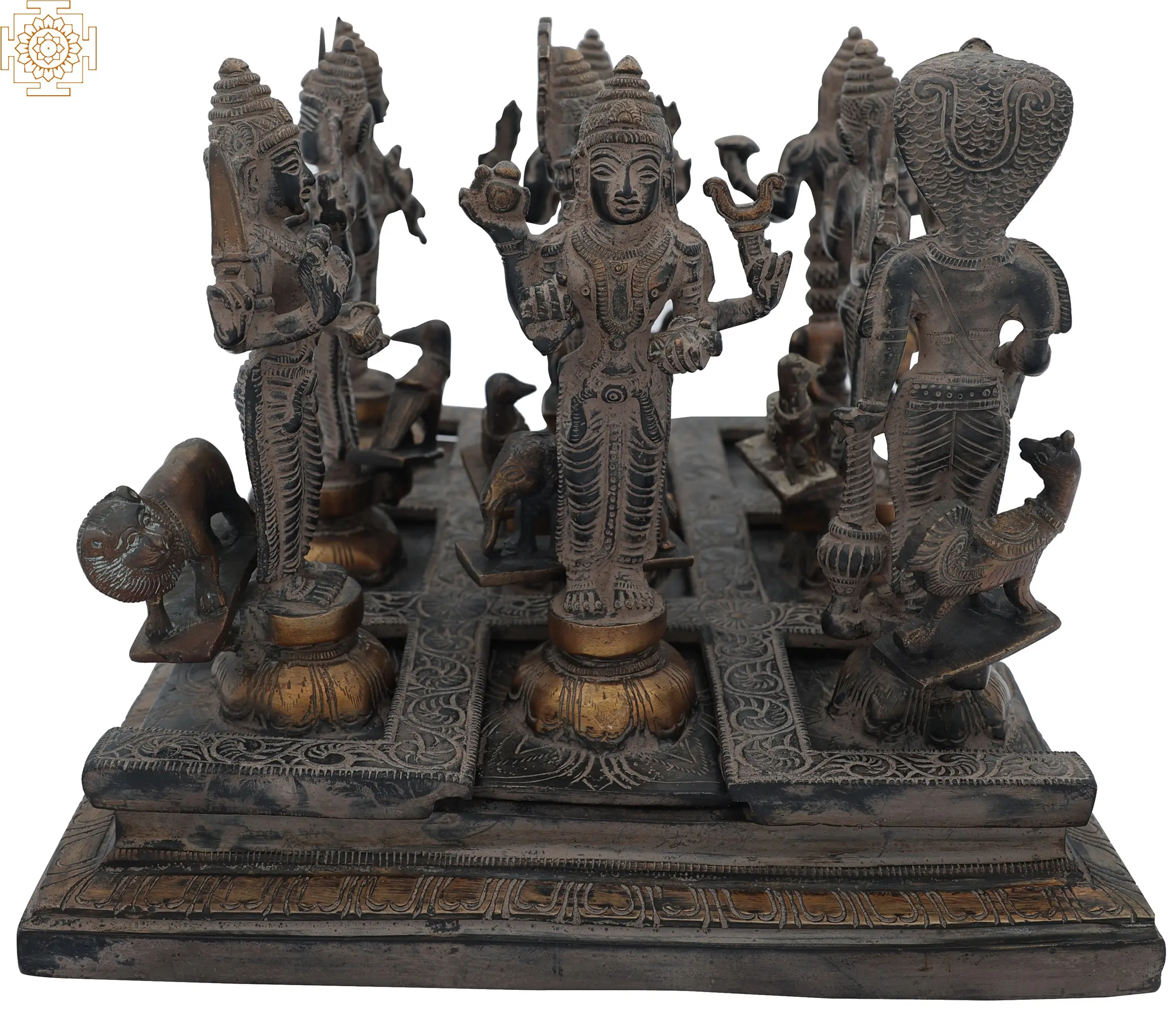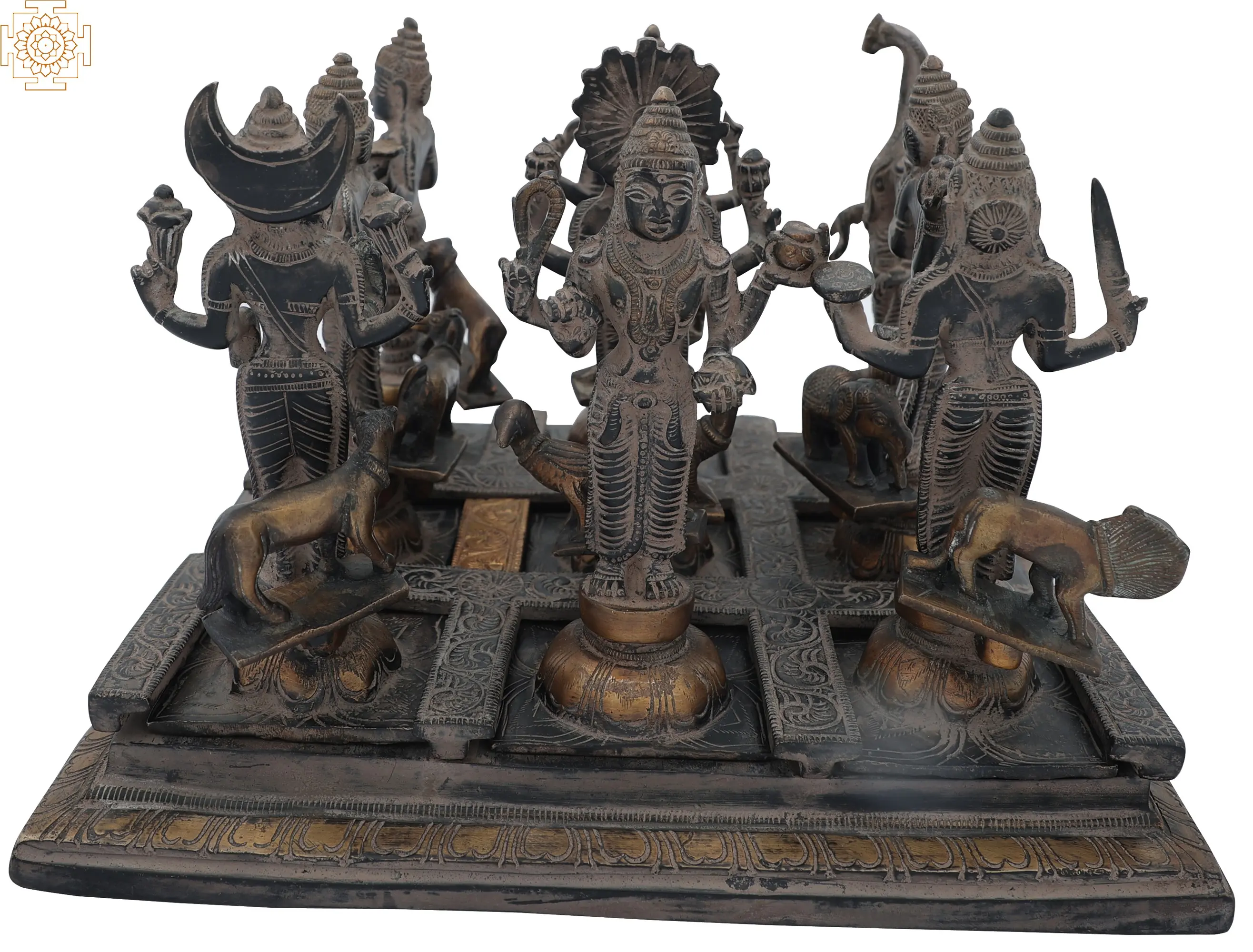 In the cosmic dance of the universe, the Navagrahas, or the Nine Planets, hold a profound place in Vedic astrology and Hindu spirituality. Our intricately carved Navagraha sculptures in brass pay homage to these celestial entities, each representing a unique cosmic force. Crafted with utmost precision by devotional artisans, these sculptures encourage you to explore the profound interplay of planetary energies and the eternal balance of the cosmos.