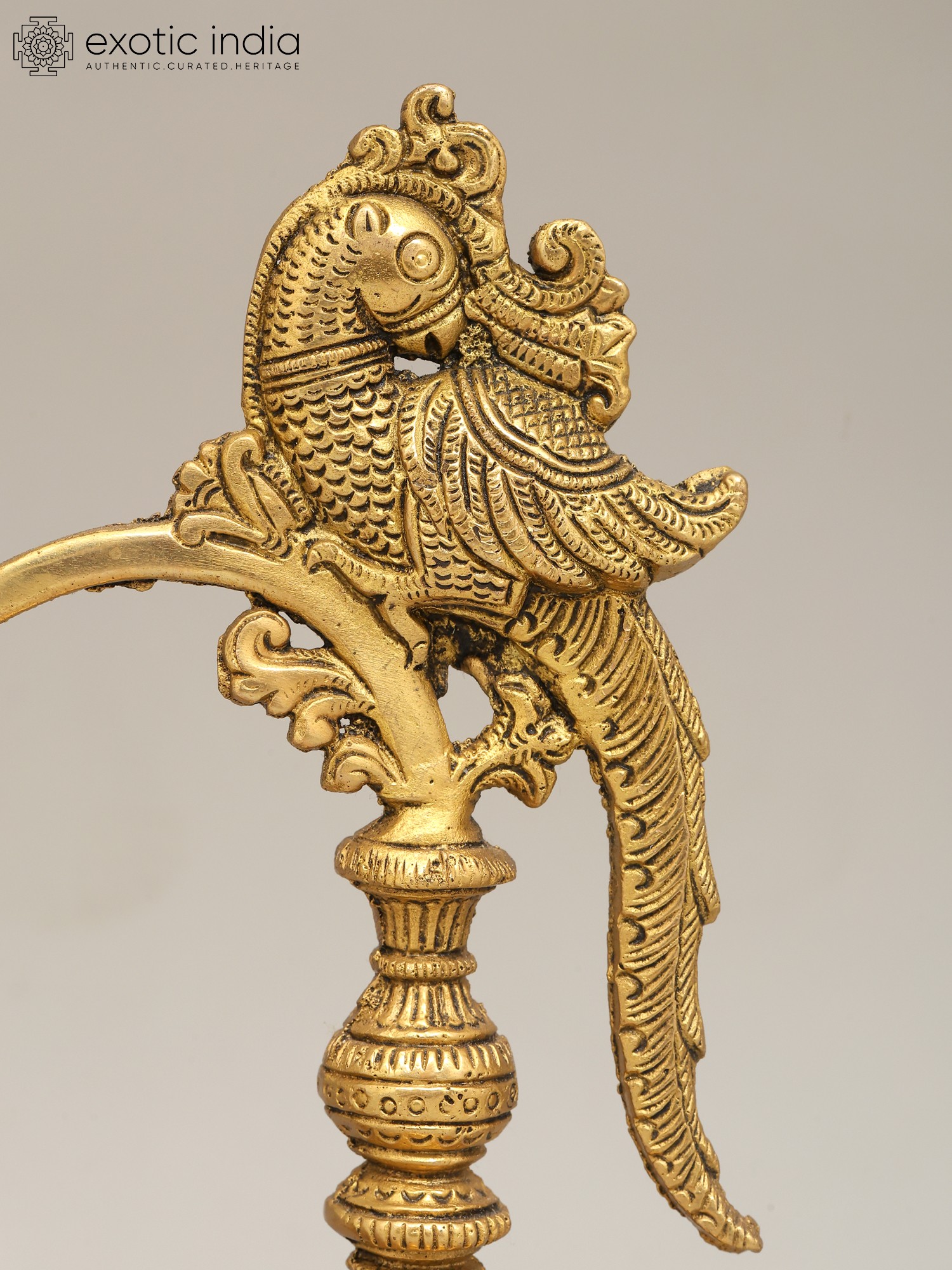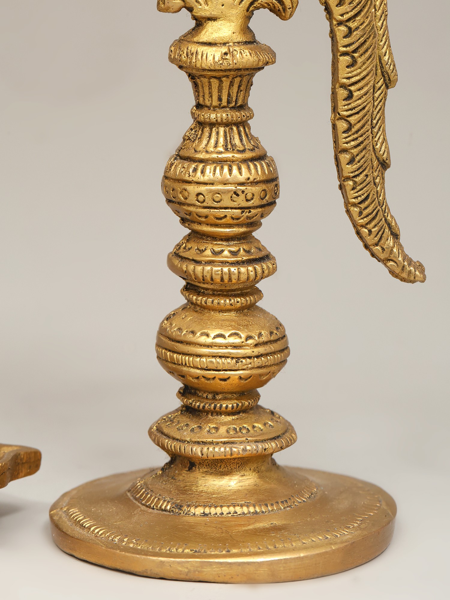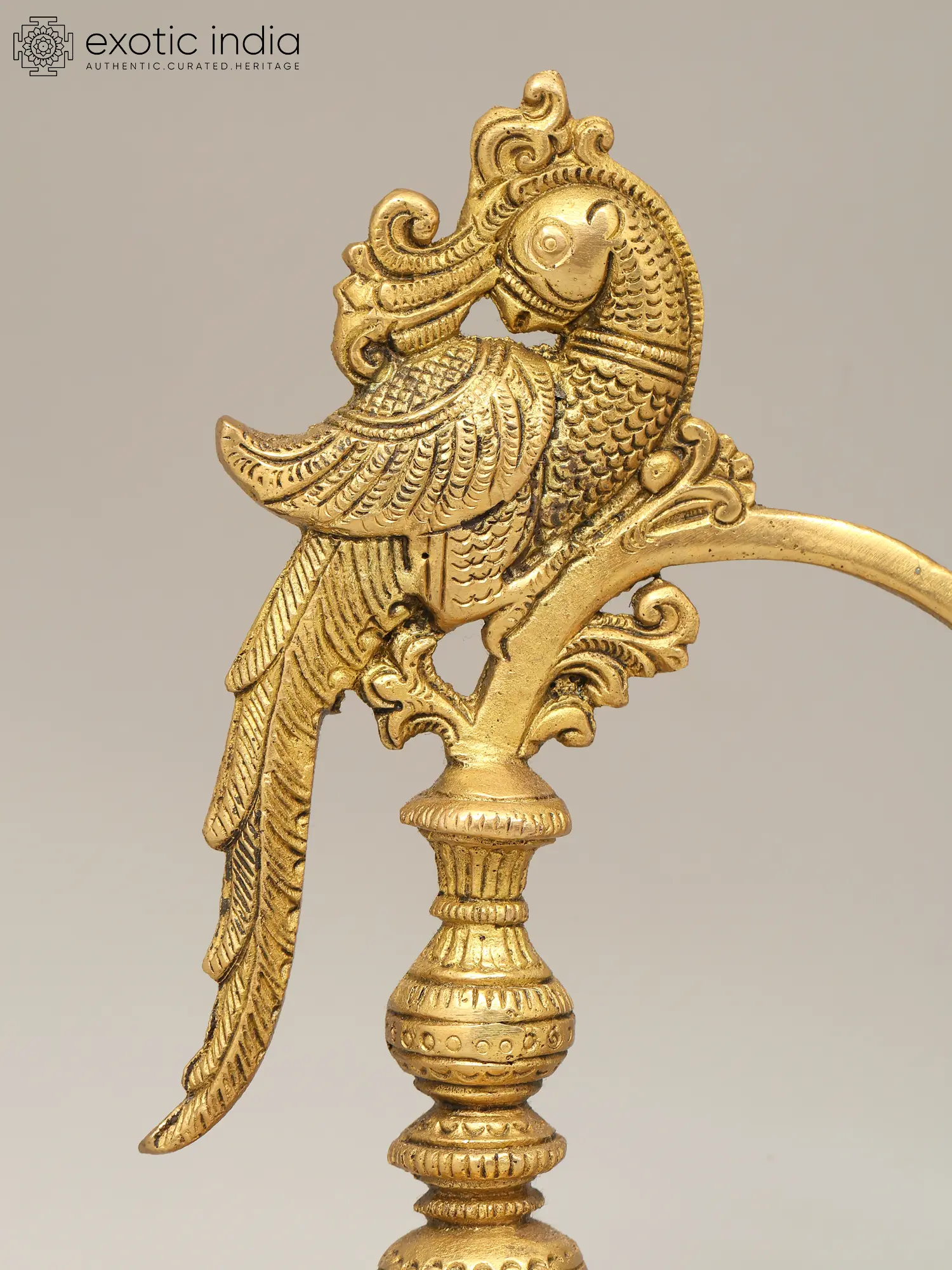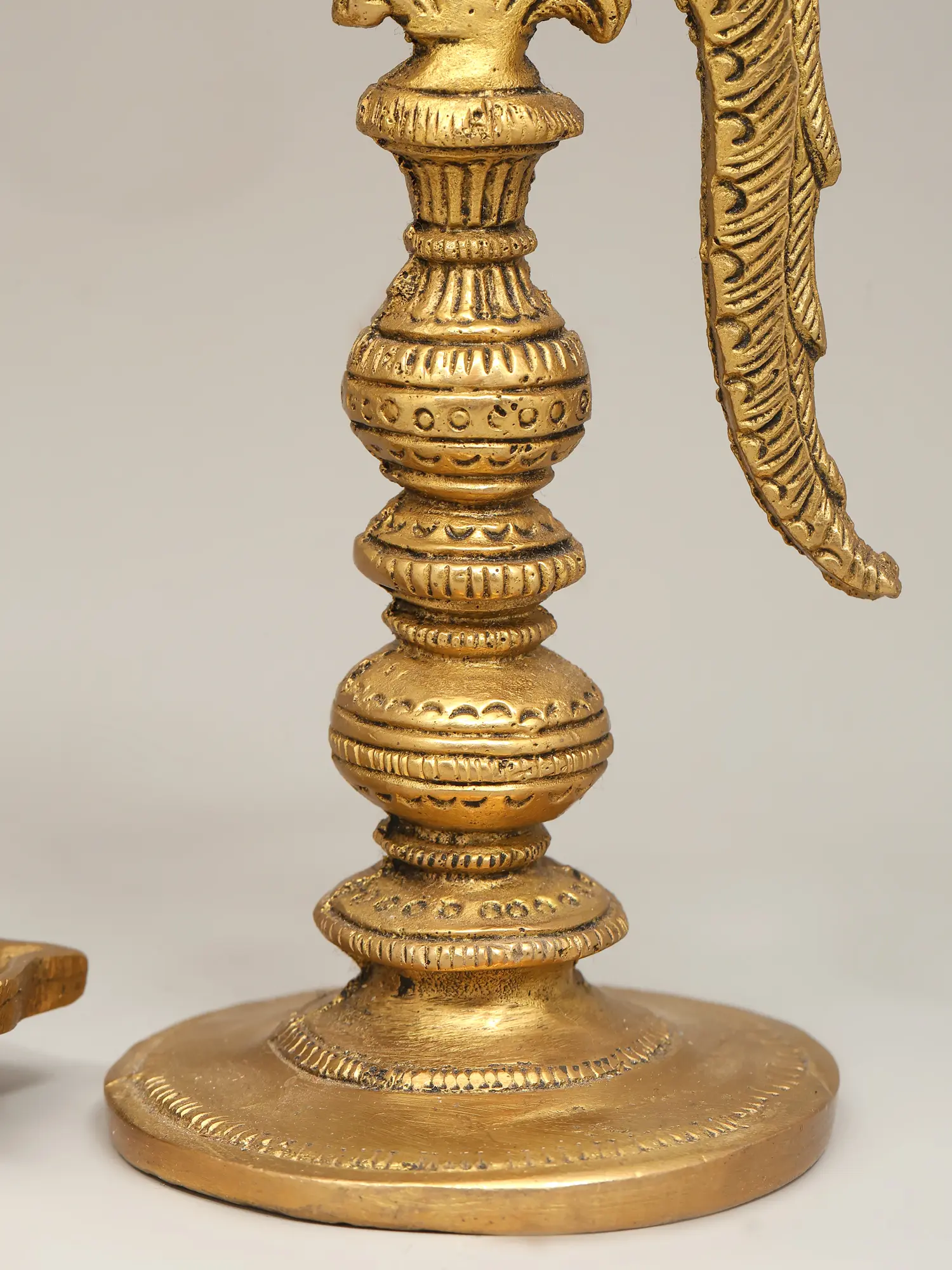 27" Brass Peacock Lamp with a WInding, Slender Stem | Indian Handcrafted Idol