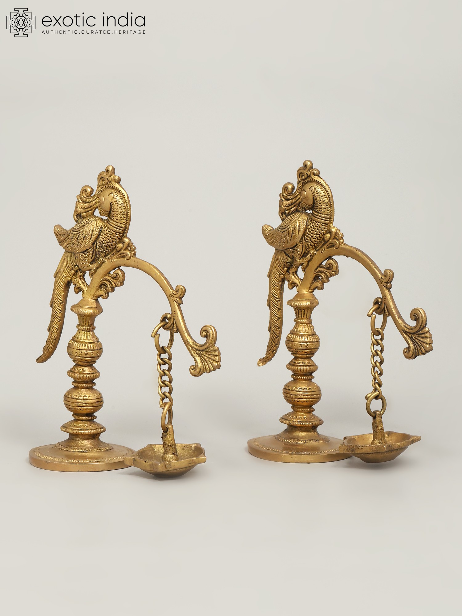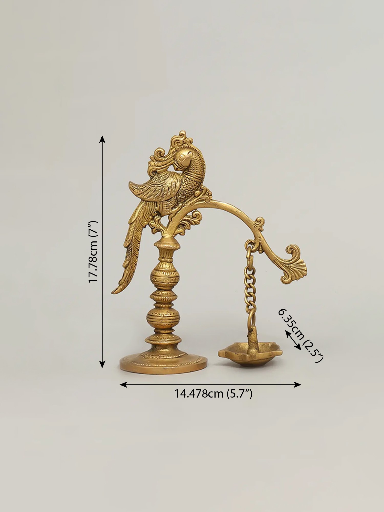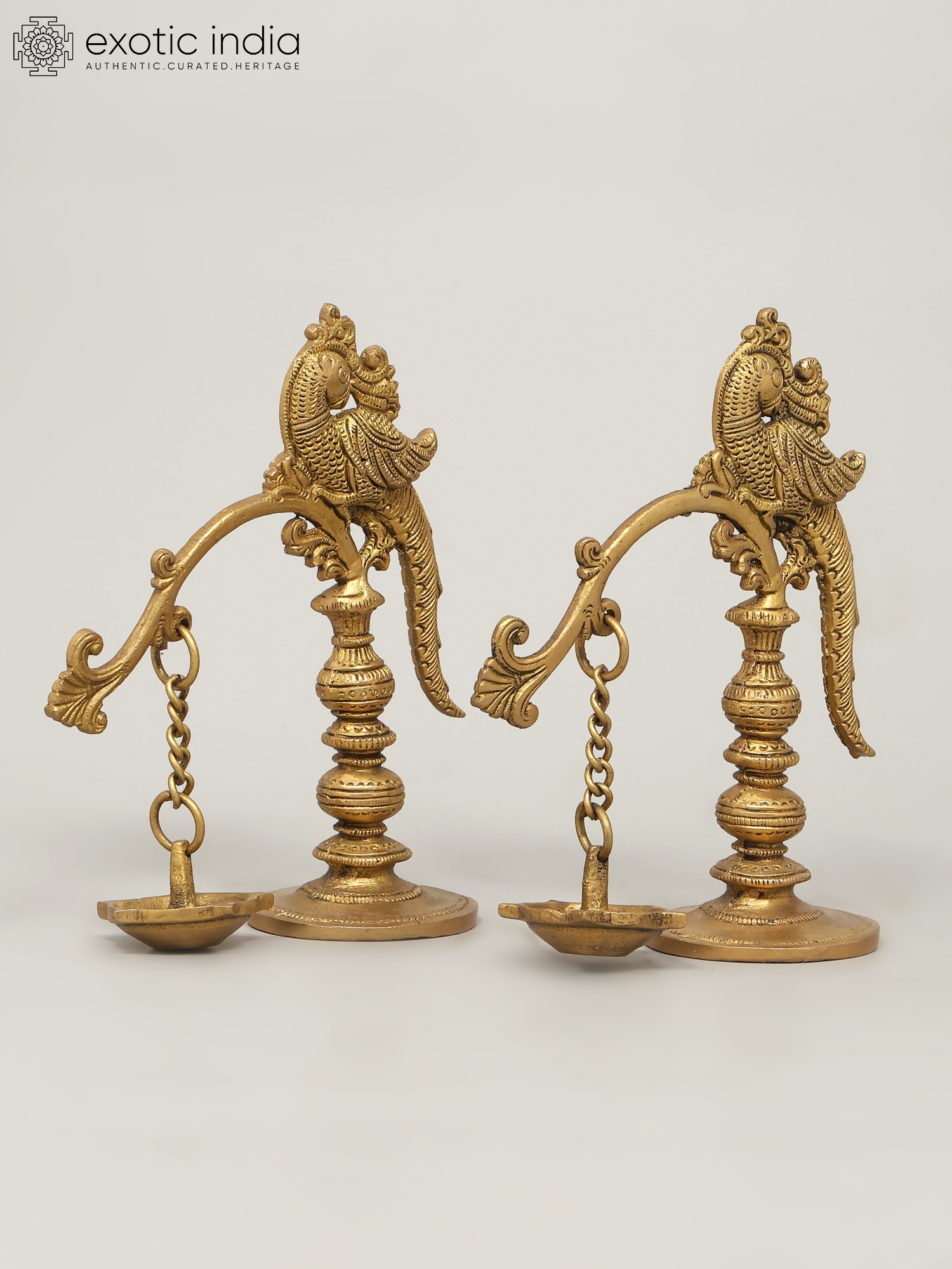 27" Brass Peacock Lamp with a WInding, Slender Stem | Indian Handcrafted Idol