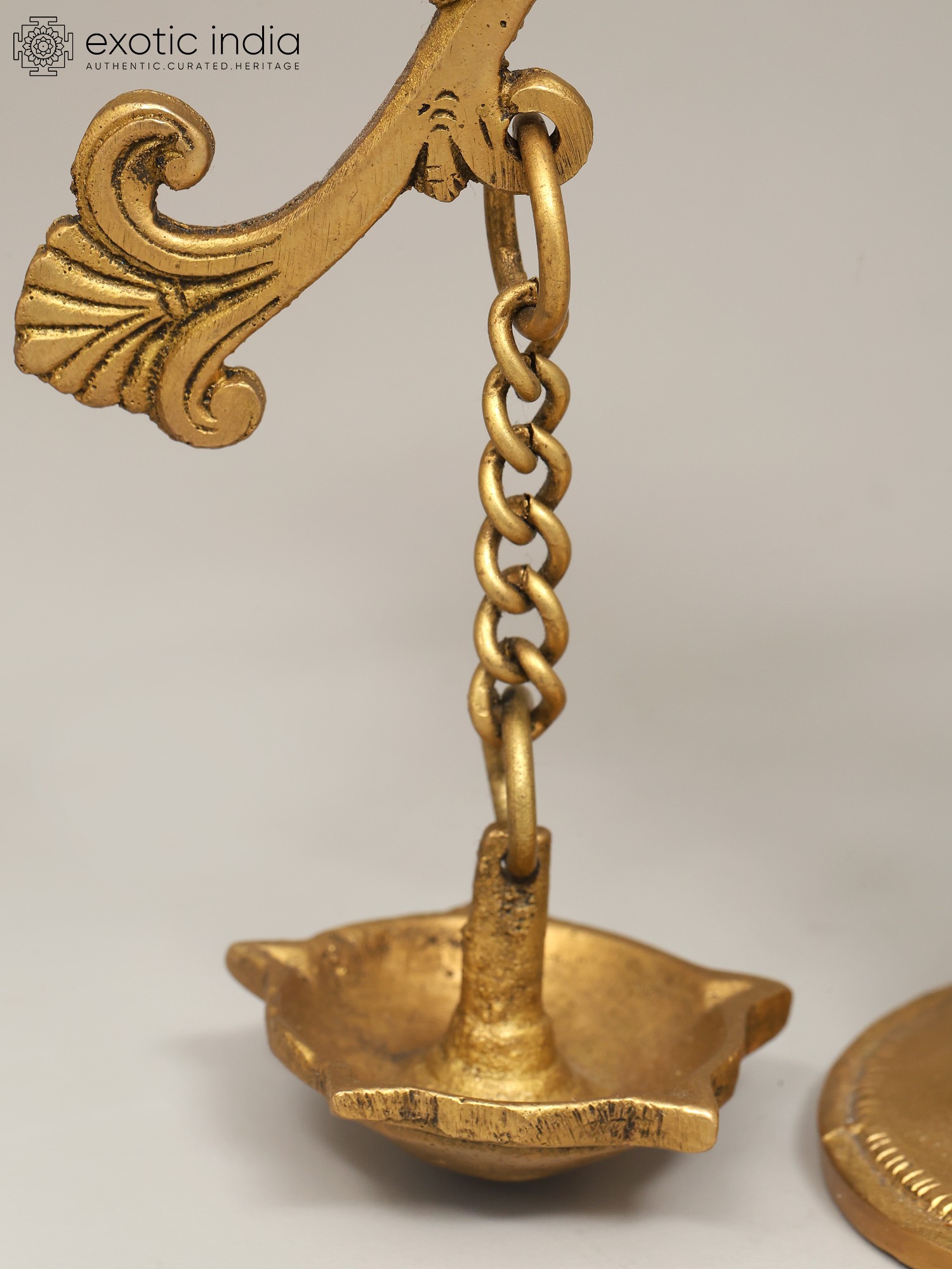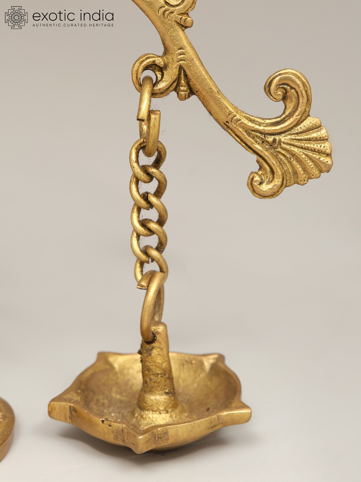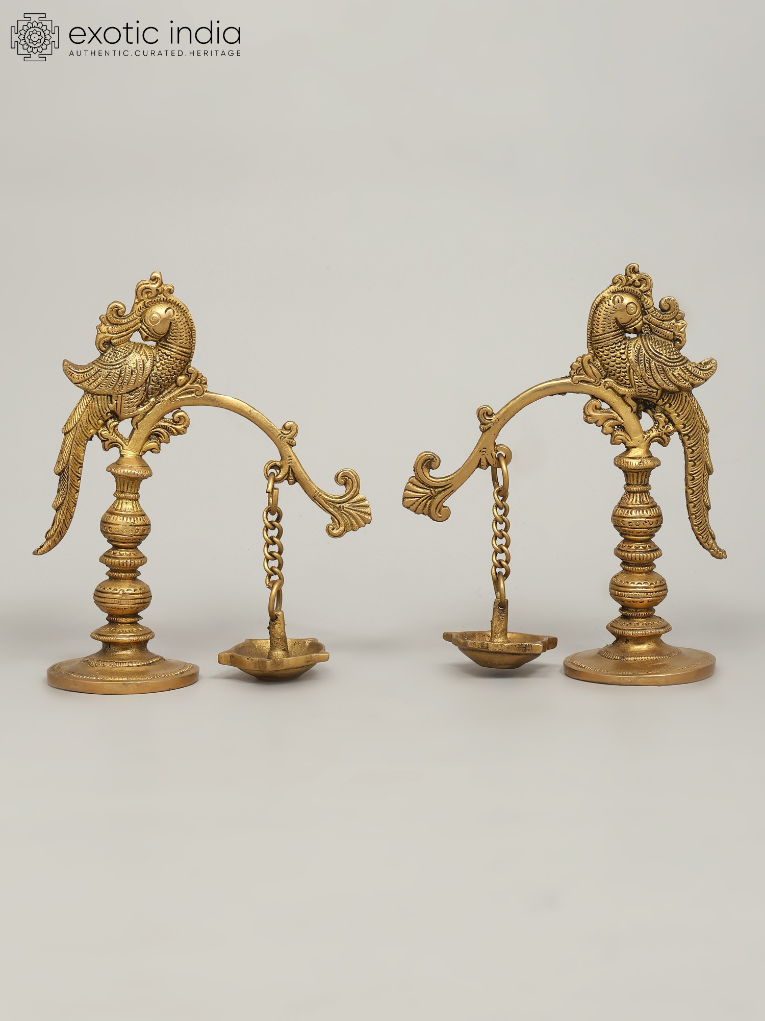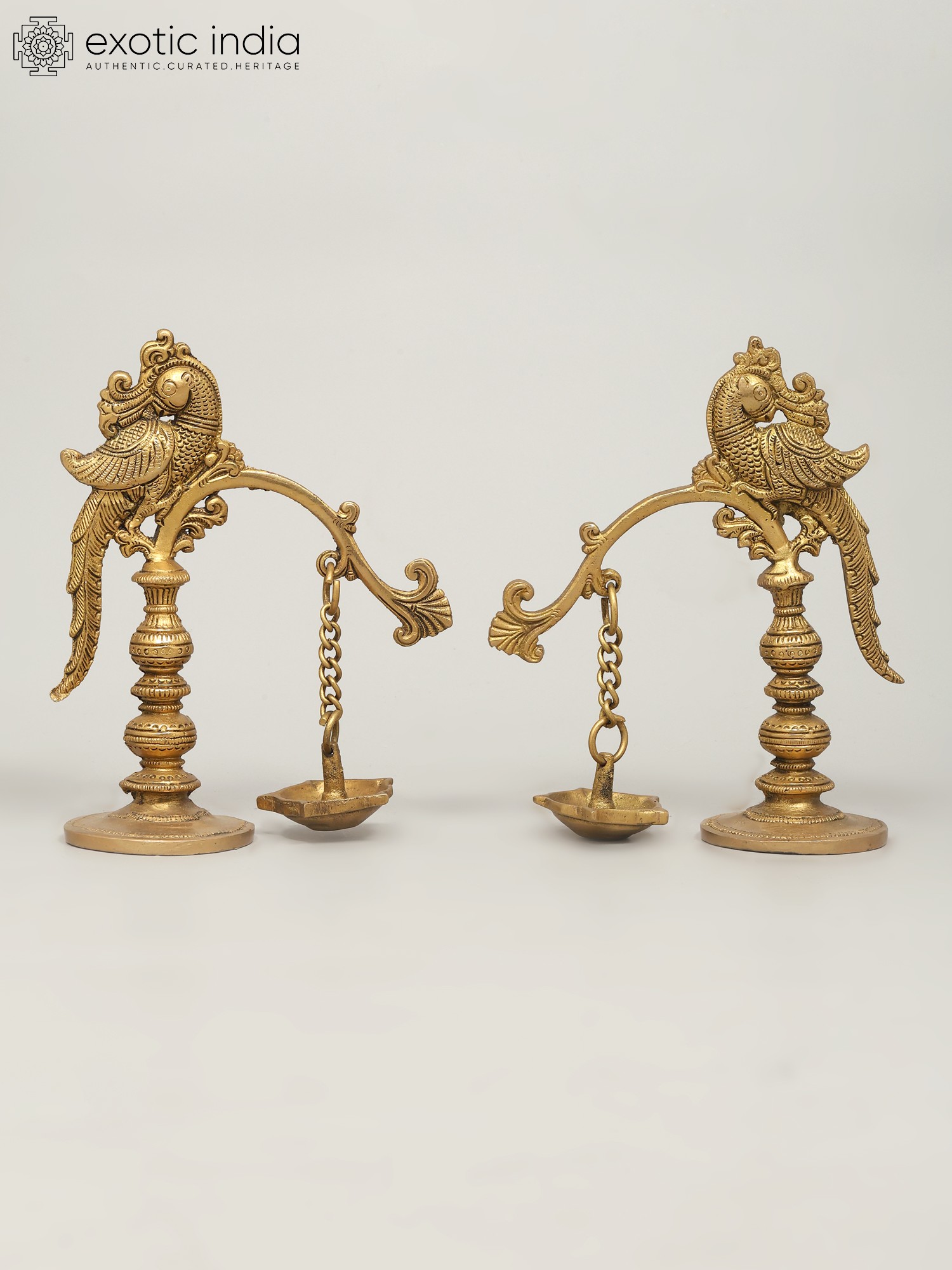 27" Brass Peacock Lamp with a WInding, Slender Stem | Indian Handcrafted Idol