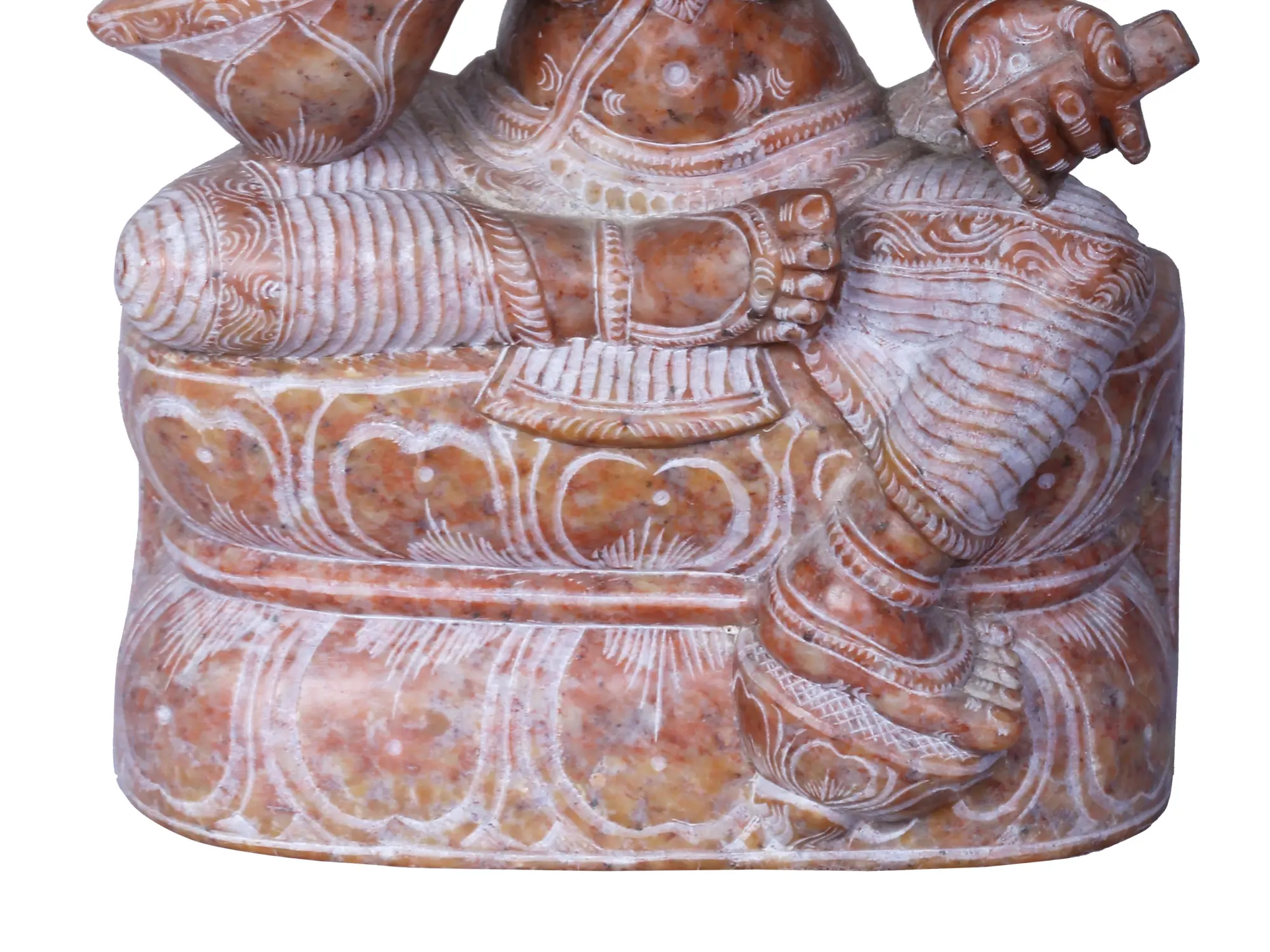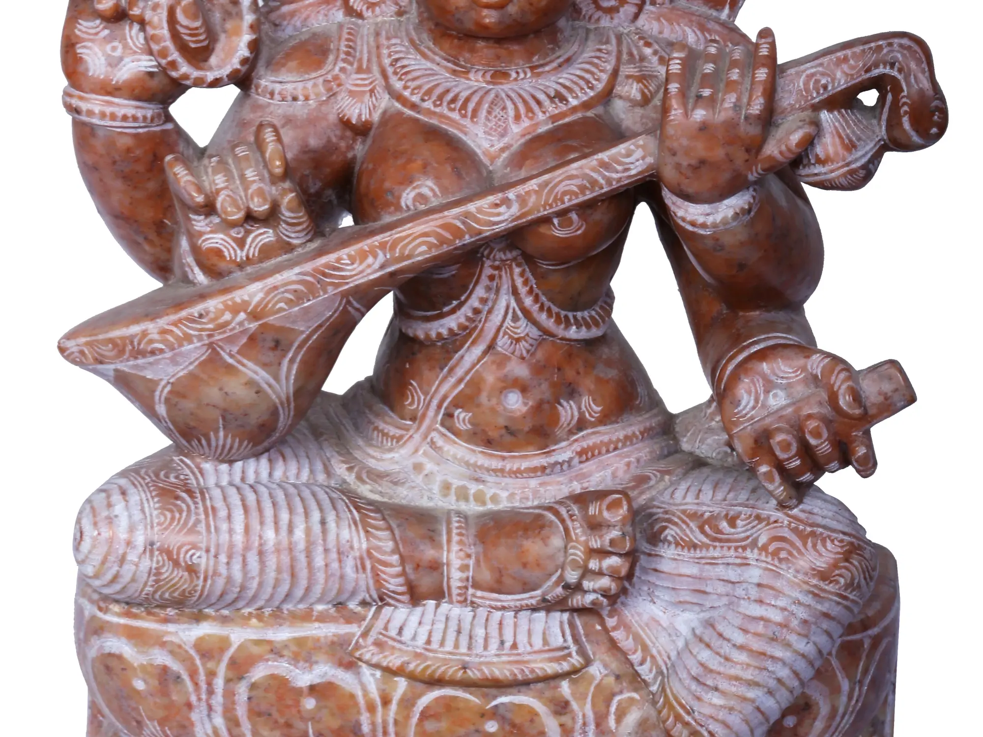 8" Goddess Saraswati Holding Veena | Red Stone Statue | Hand Carved