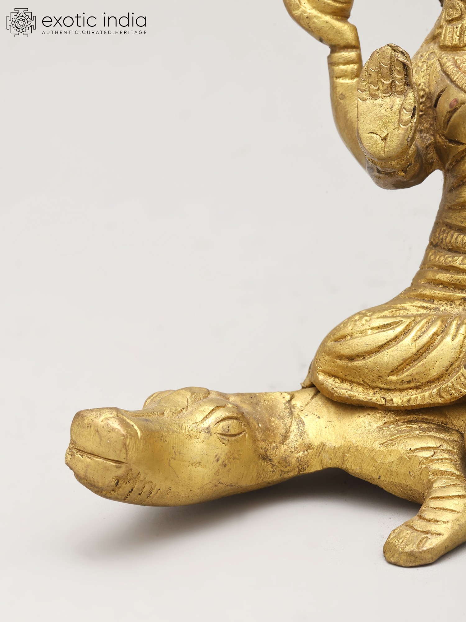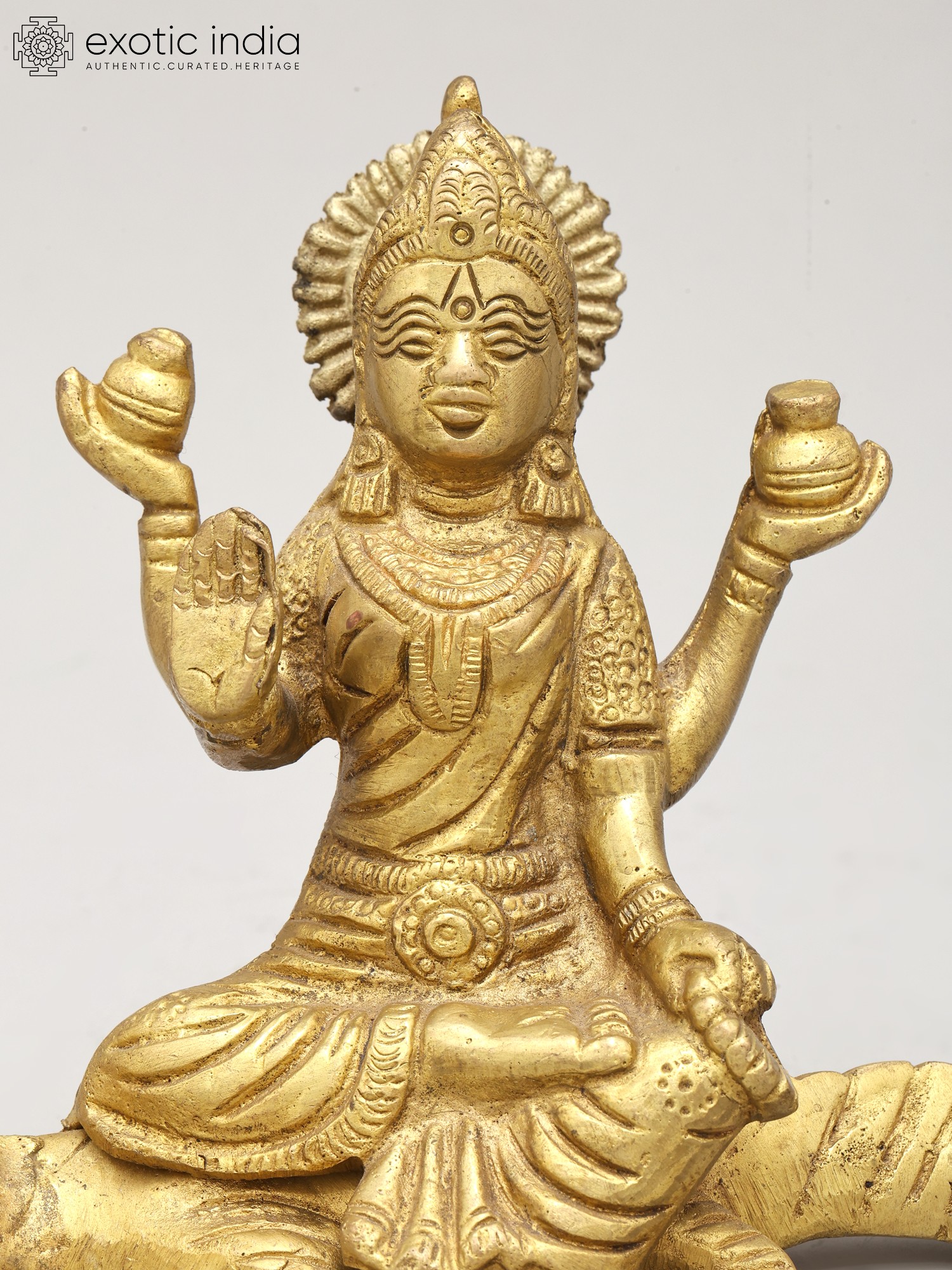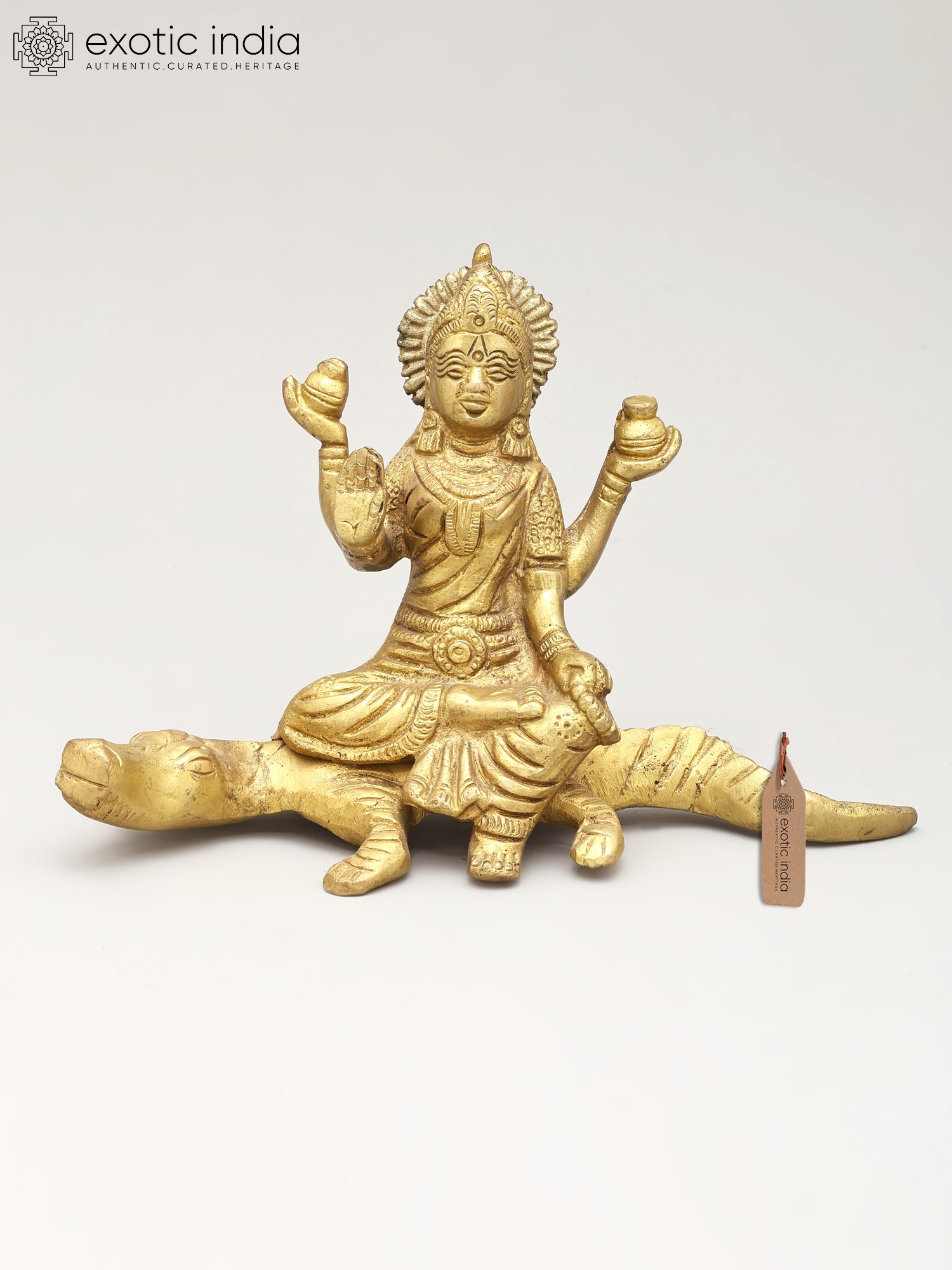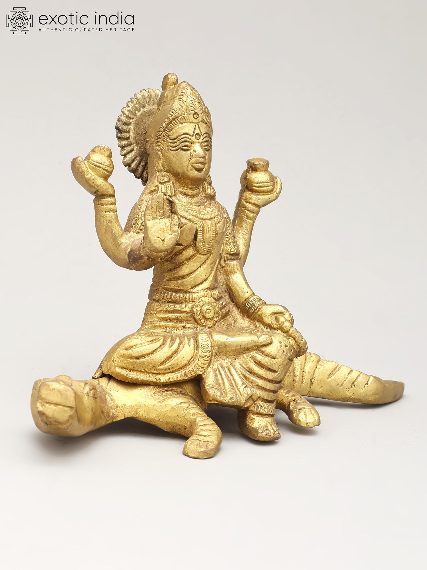 Standing at seven inches tall, this representation captures a delicate balance between commanding presence and refined detail. The gleaming brass imparts a warm, inviting glow that highlights every sculpted element, from the intricate headdress to the majestic form of the reptilian mount. You'll appreciate the subtle, yet impactful, posture of the deity, conveying both power and a comforting stillness. The weight and feel of the solid brass speak to its substantial quality.