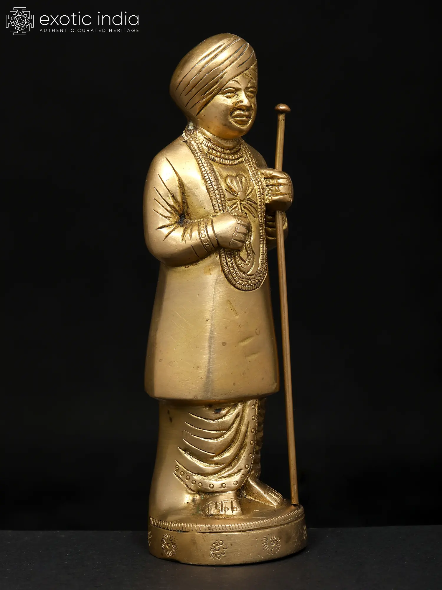 Cast in gleaming brass, this statue is a testament to devotion and artisanal skill. The figure emanates a sense of serenity and unwavering faith. Observe the intricate details, from the carefully etched lines of his garments to the gentle curve of his smile. The texture of the brass brings a timeless quality to the piece, making it not only a beautiful decorative object but also a spiritual focal point. It is solid and grounding. The figure’s stance, upright and poised, reflects a life dedicated to service and compassion. He is draped in a traditional garb, a testament to his humble life, complete with a turban, a kurta and dhoti.