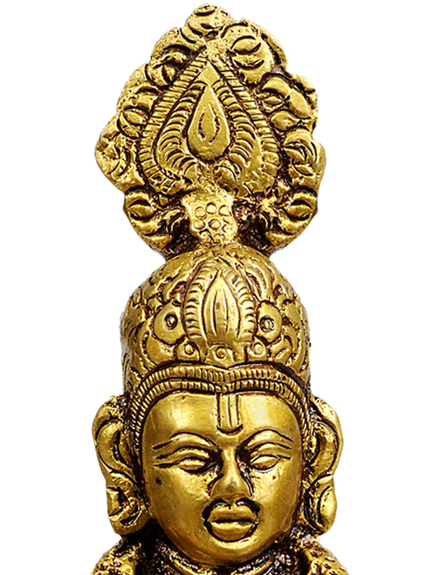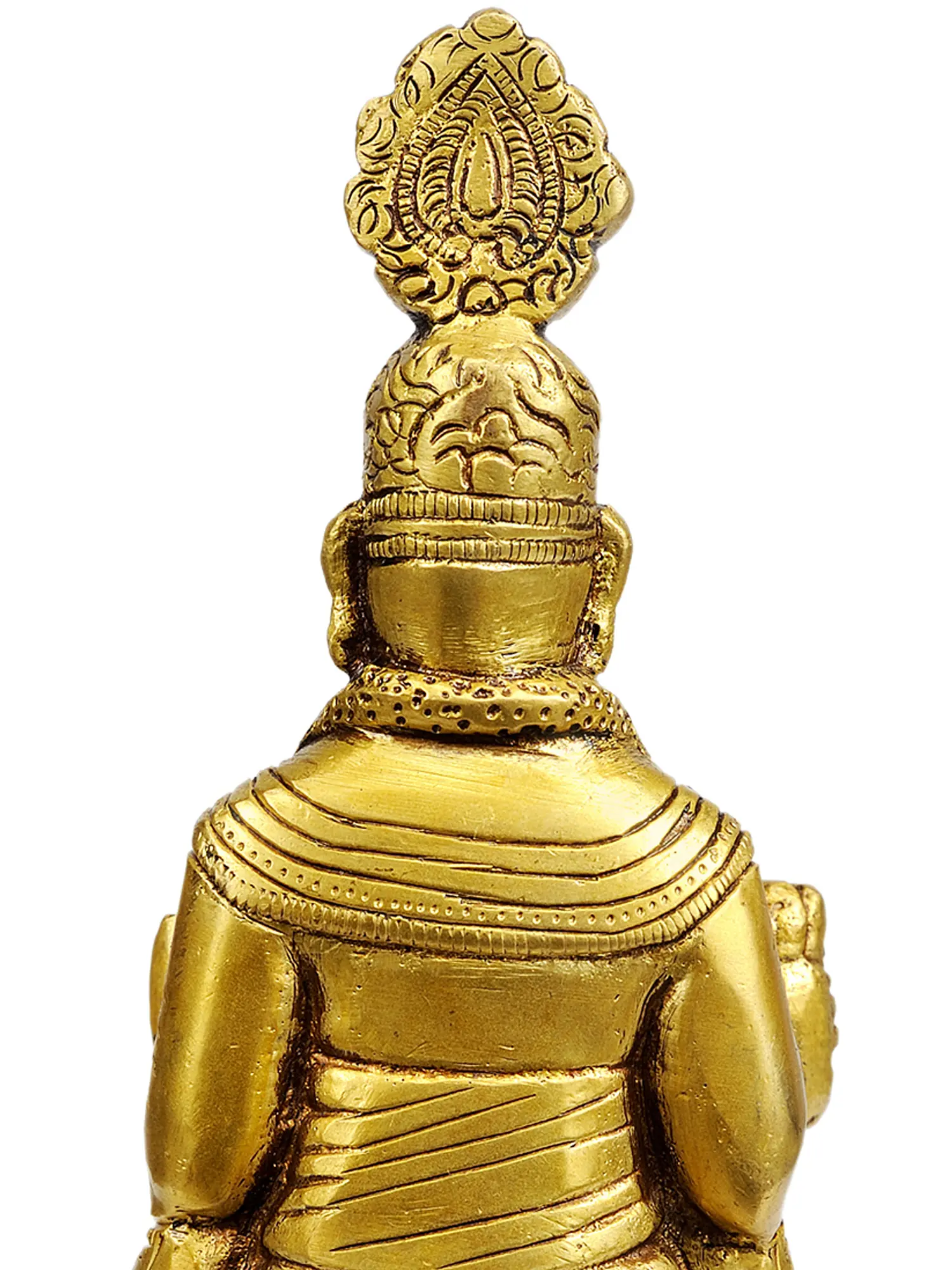 Brass, a radiant alloy of copper and zinc, has long been cherished in India for its malleability, durability, and lustrous finish. In ancient times, brass was associated with deities and royalty, symbolizing prosperity and spiritual power. The use of brass in creating religious icons is deeply rooted in tradition, with artisans employing age-old techniques to mold and shape the metal into exquisite representations of the divine. The golden sheen of brass reflects light beautifully, adding a touch of elegance and serenity to any setting. The choice of brass for this statue not only ensures its longevity but also enhances its spiritual significance.