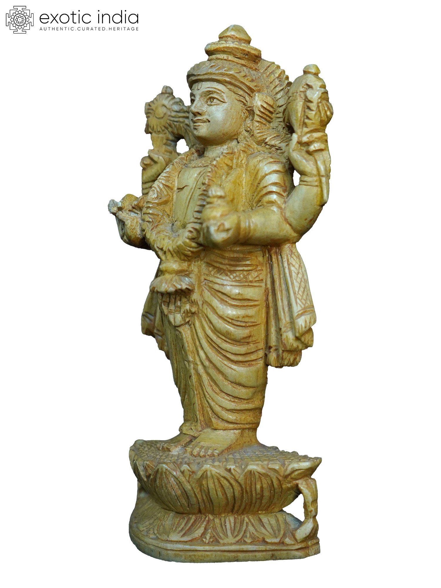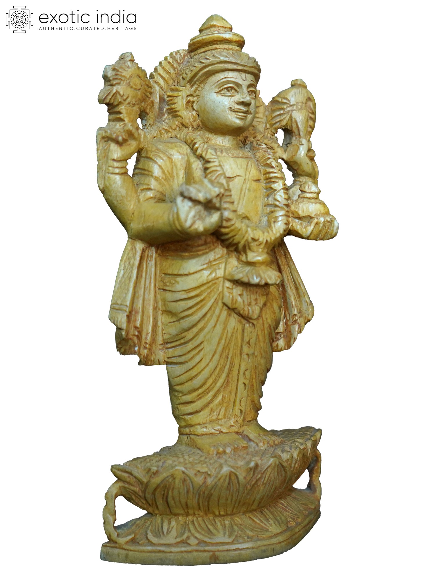 36" Lord Vishnu With Goddess Lakshmi | Wood Statue and Wall Hanging