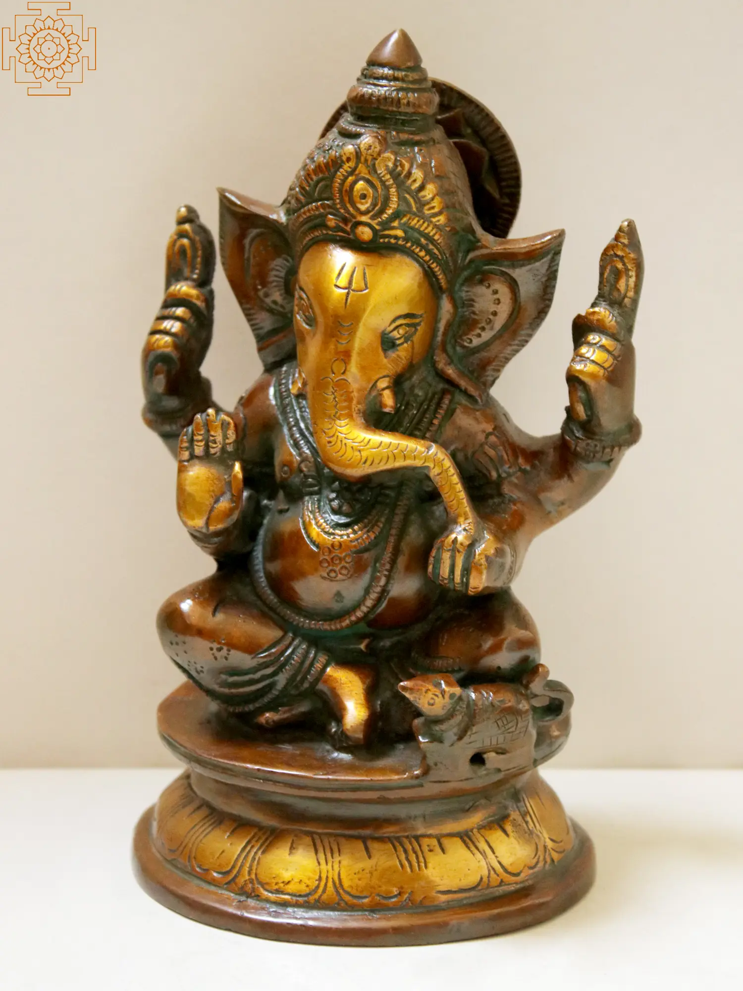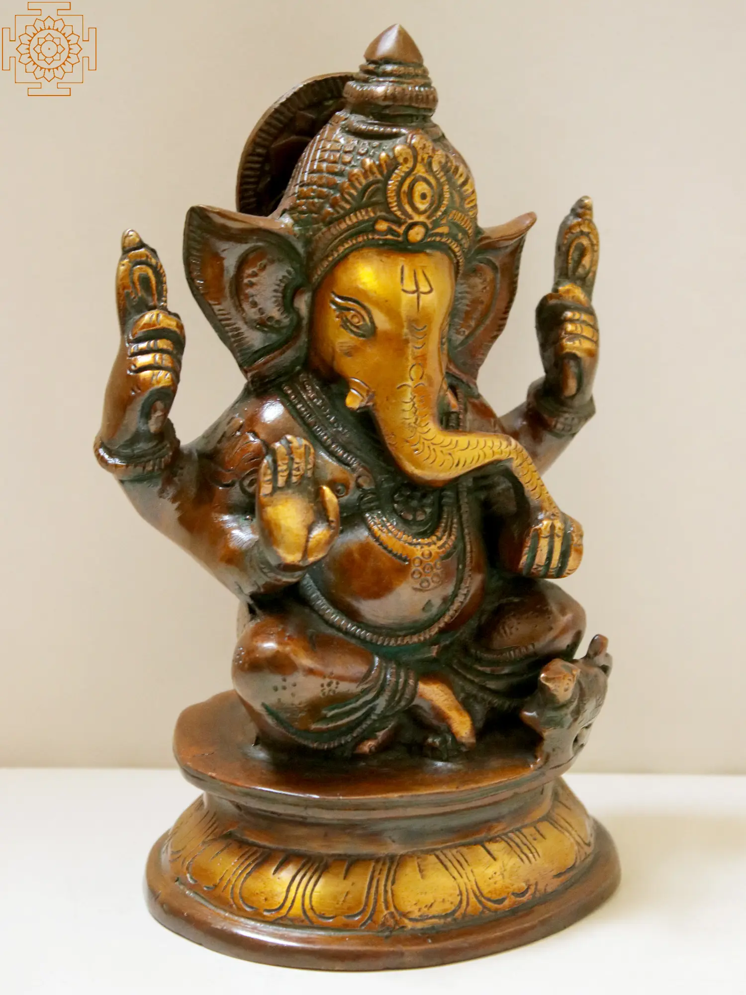 Delicately sculpted with unwavering devotion, this masterpiece brings to life the beloved deity, Lord Ganesha, seated gracefully upon a timeless pedestal. His form, adorned with intricate details, emanates an aura of serenity and benevolence, inviting you to immerse yourself in the soothing embrace of his presence. As he rests upon his pedestal, Lord Ganesha becomes a symbol of auspicious beginnings and a guardian of pathways yet to be traversed.