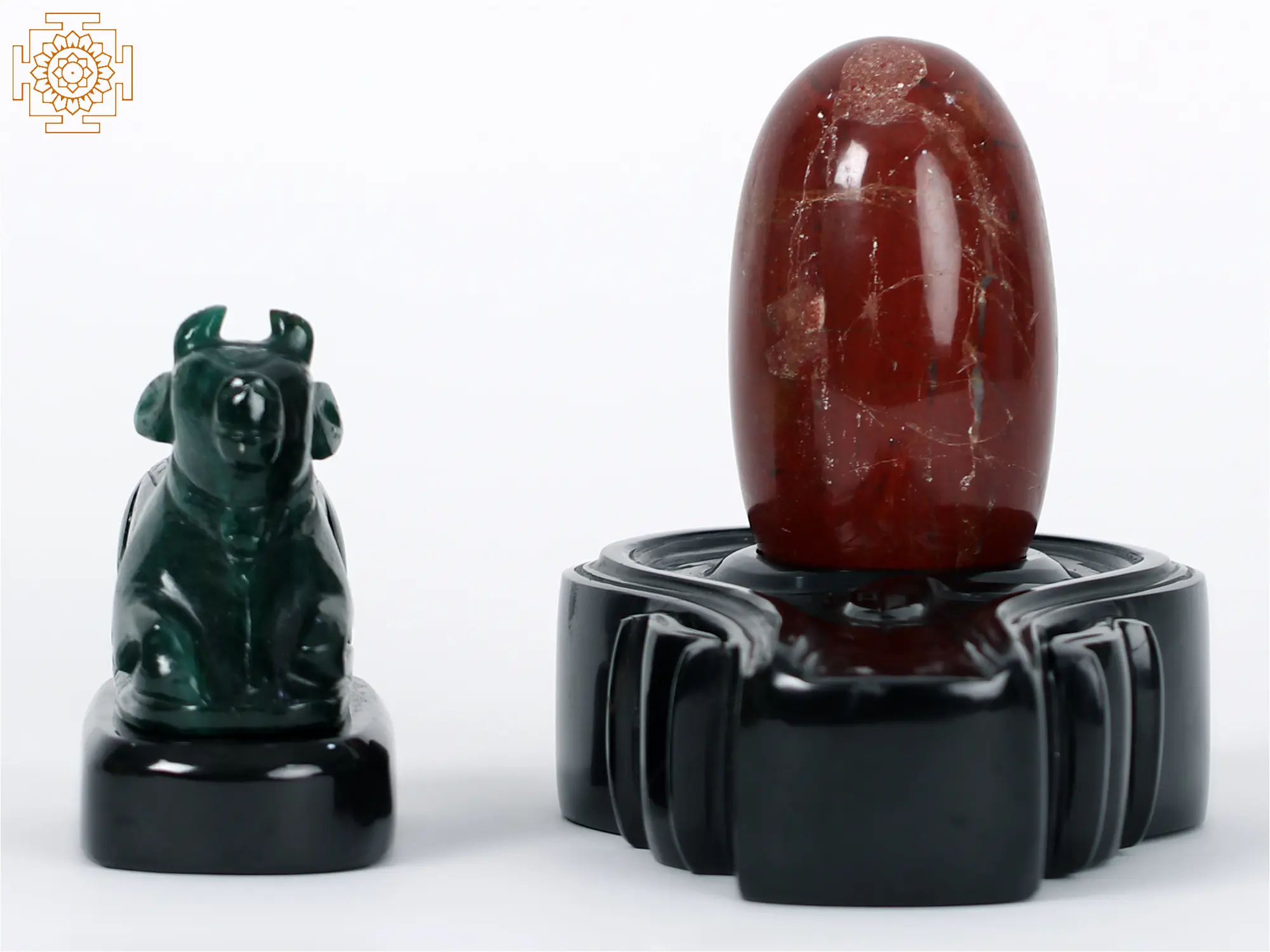 The juxtaposition of the deep red of the Jasper Lingam and the verdant green of the Nandi creates a visually striking and spiritually resonant piece. This set is more than just a decorative item; it is a profound spiritual tool, ideal for meditation, puja rituals, or as a focal point for your sacred altar. Whether you are a devout follower of Lord Shiva or simply drawn to the powerful symbolism and natural beauty of these sacred forms, this Red Jasper Shiva Lingam with Nandi offers a pathway to connecting with divine grace, inner strength, and the harmonious balance of the universe. Its compact size makes it a versatile addition to any home, office, or spiritual sanctuary, bringing a touch of the sacred and the timeless into your daily life.