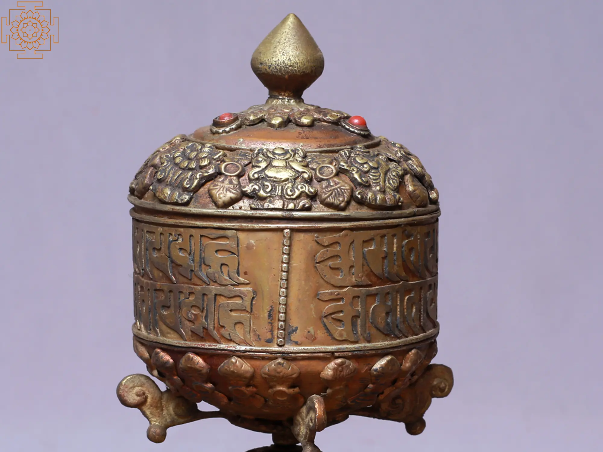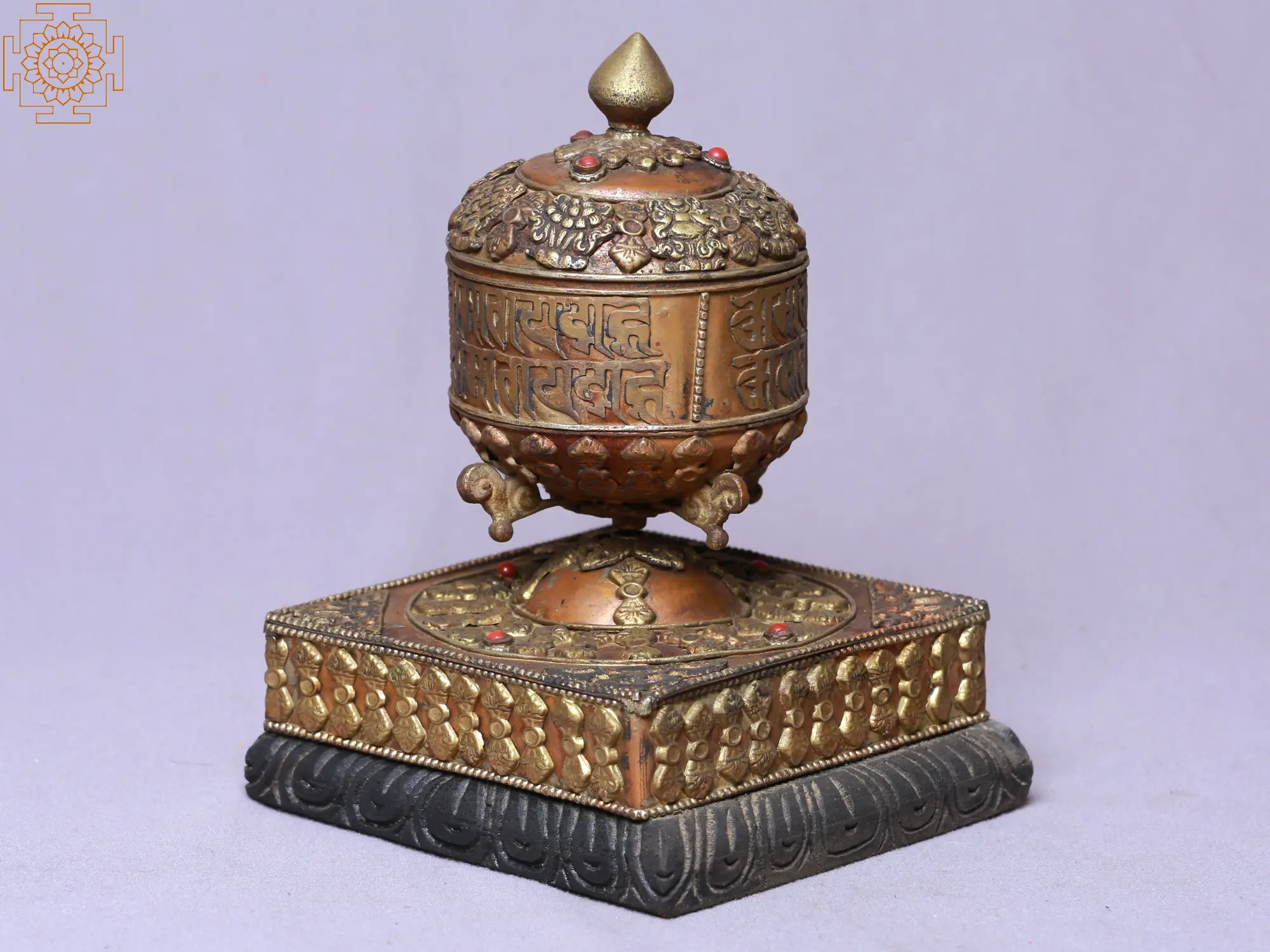 7" Square Base, Ball Mane/Prayer Wheel | Made In Nepal