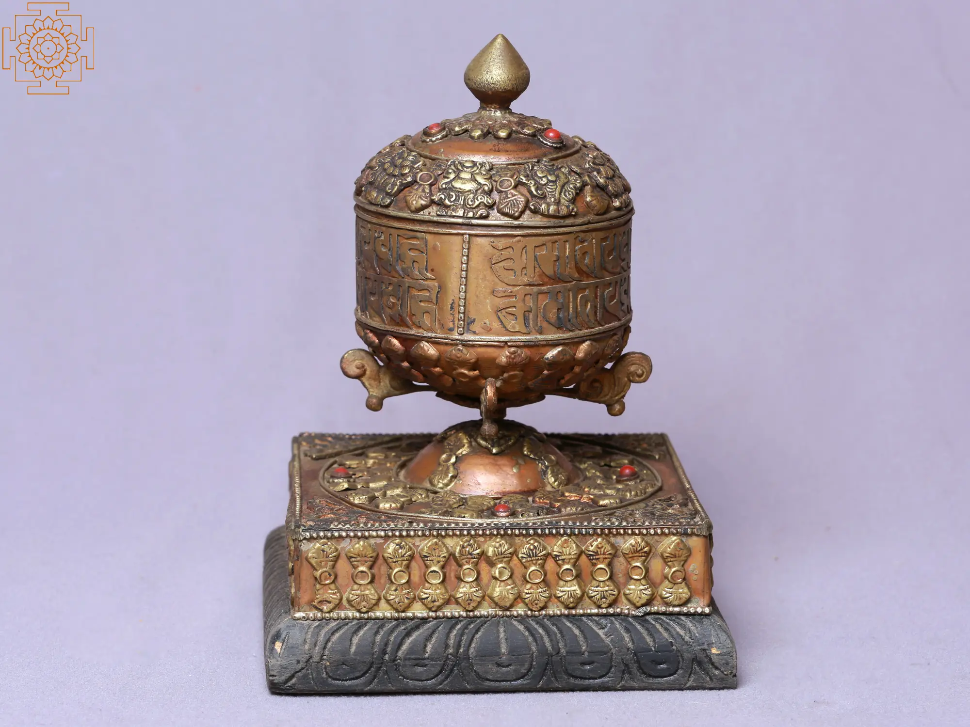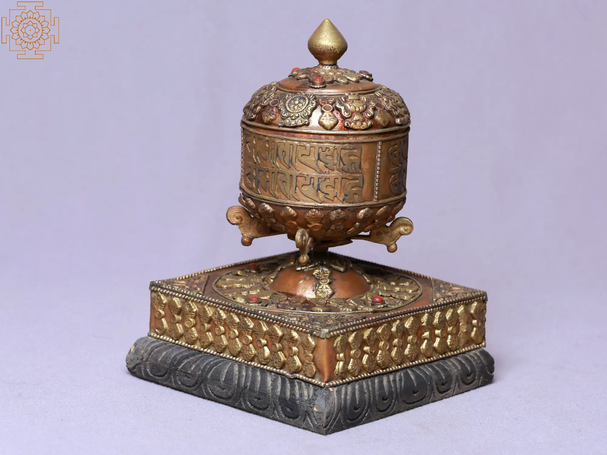 4" Small Tibetan Buddhist Prayer Wheel with Stone Work | Table Piece | Made in Nepal