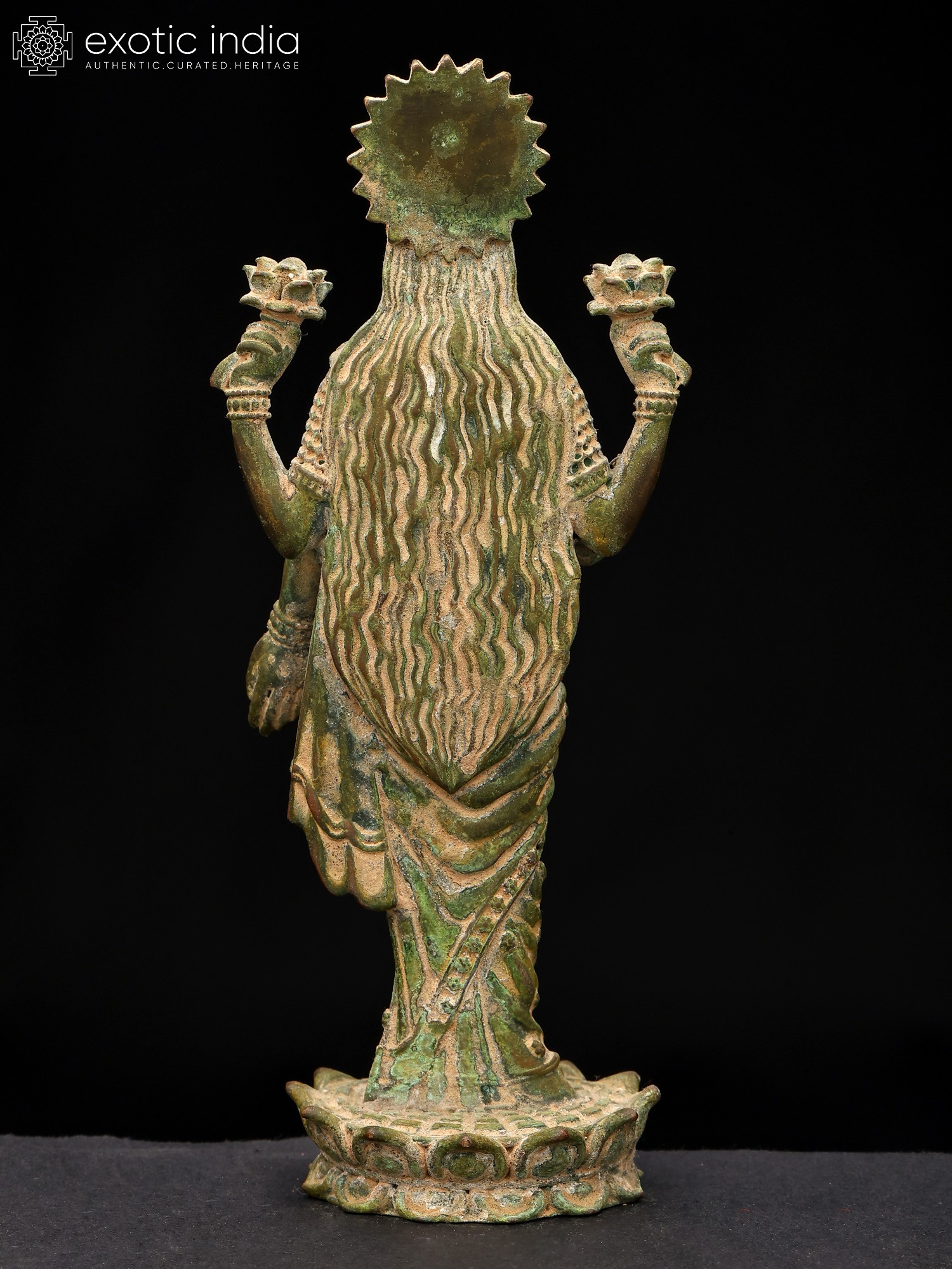9" Superfine Standing Goddess Lakshmi | Wall Hanging Framed Brass Sculpture
