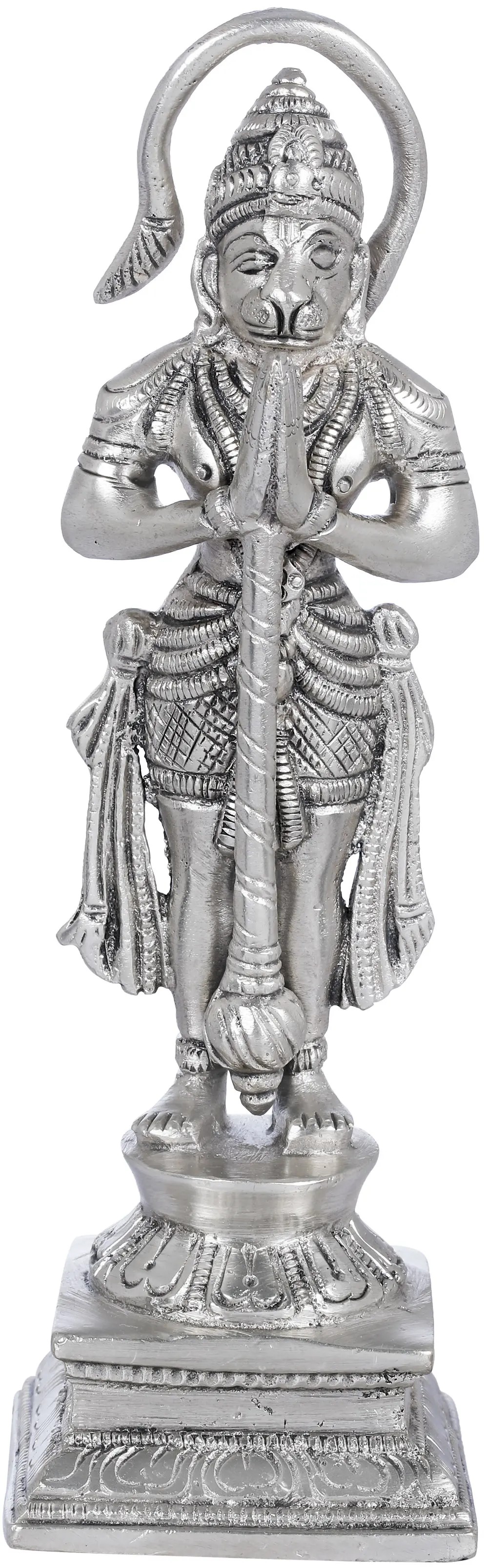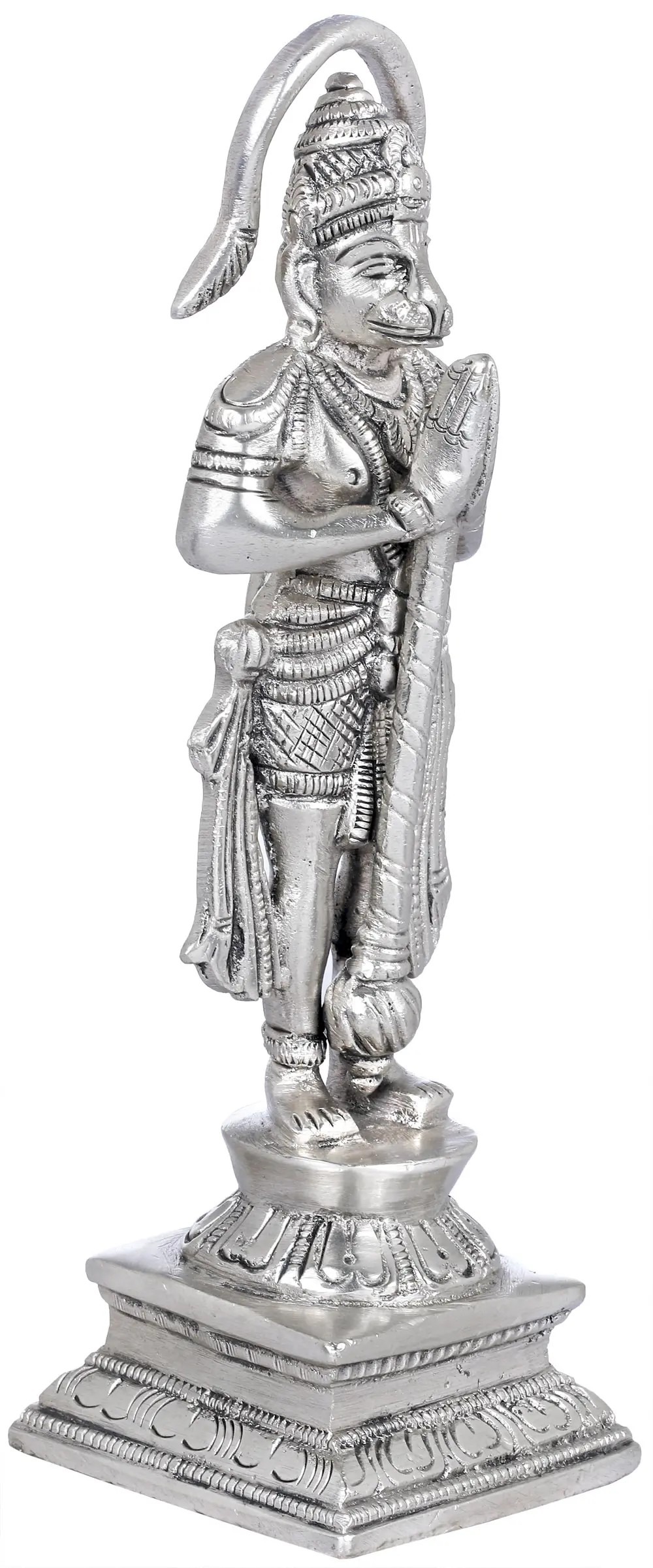 For Lord Hanuman, everything that he does is just due to the grace of Shri Ram. Hence, he takes absolutely no pride in his deeds and is full of humility and humbleness. This humbleness of the lord touches something deep within. The artist behind this brass statue has beautifully captured this aspect of Lord Hanuman, almost bringing out the essence of his heart. Standing with his hands folded and eyes down in reverence, the lord compels one to look for the existence of the divine. His muscular body, ethnic clothes, and exquisite crown is adding to his simplistic beauty. Forming a beautiful curvature behind his head, the tail too has become quite significant in this statue. Between his hands, the lord holds his iconic mace, protecting his devotees from the evil of greed and fear. The artist behind this statue has done a commendable job by capturing the very essence of the lord in this statue. That is what makes this statue different and unique, complete in its own beauty.