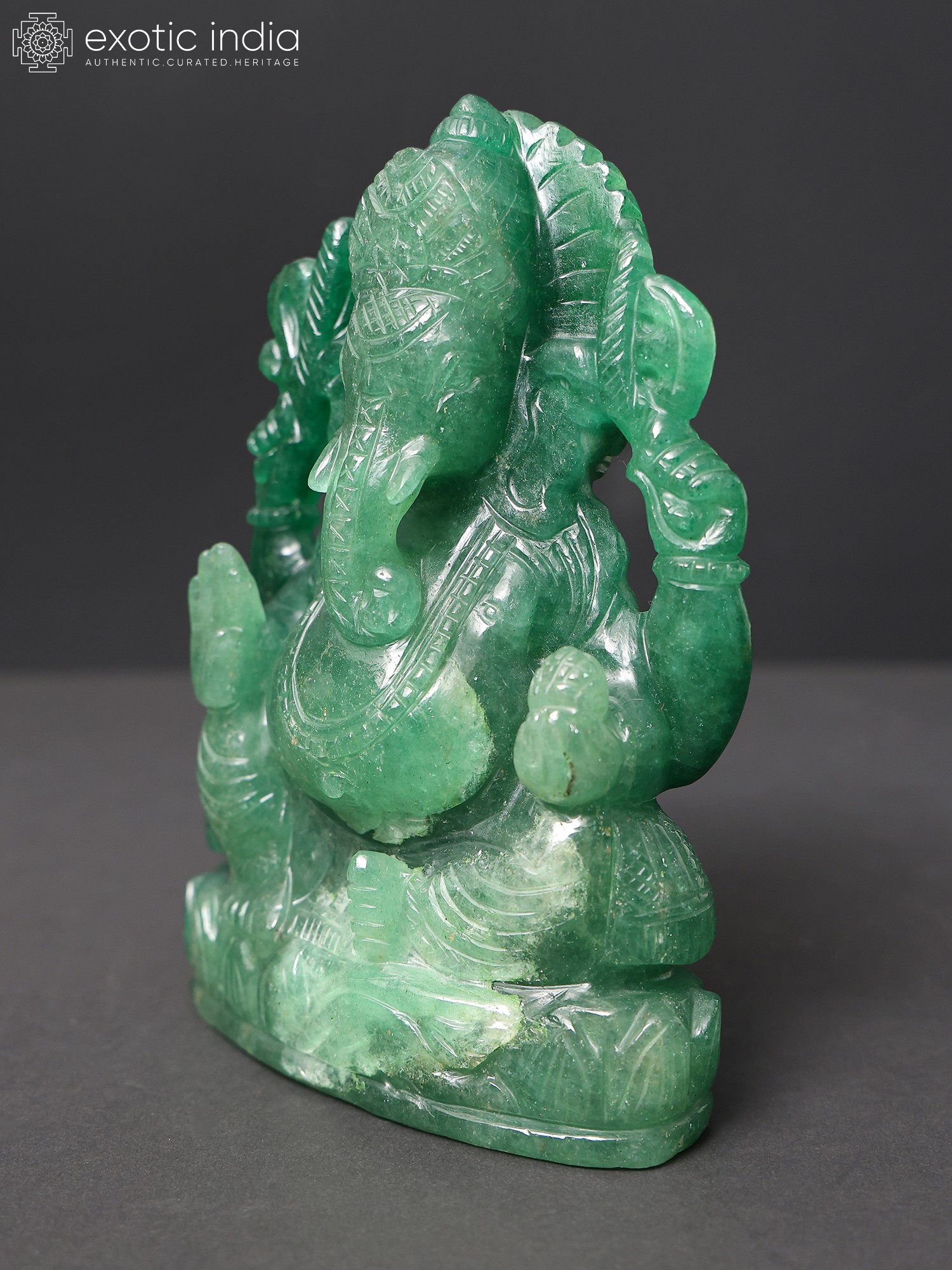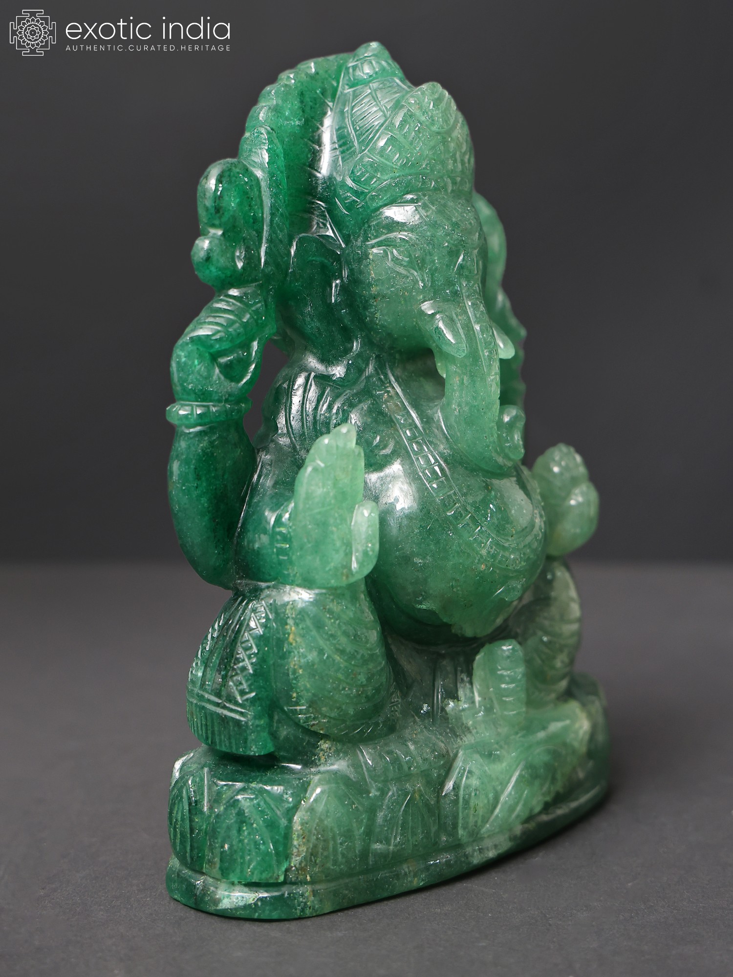 From the heart of the earth, a beacon of divine energy takes form. This exquisite seven-inch statue captures the benevolent presence of Lord Ganesha, meticulously hand-carved from luminous strawberry quartz. The stone, known for its vibrant green hue, imbues the beloved deity with an aura of vitality and prosperity, resonating with the very essence of life and growth. In Hindu tradition, Ganesha is revered as the Vighnaharta, the remover of obstacles, the god of beginnings, wisdom, and intellect. He is invoked before any new venture, ensuring smooth passage and auspicious outcomes.