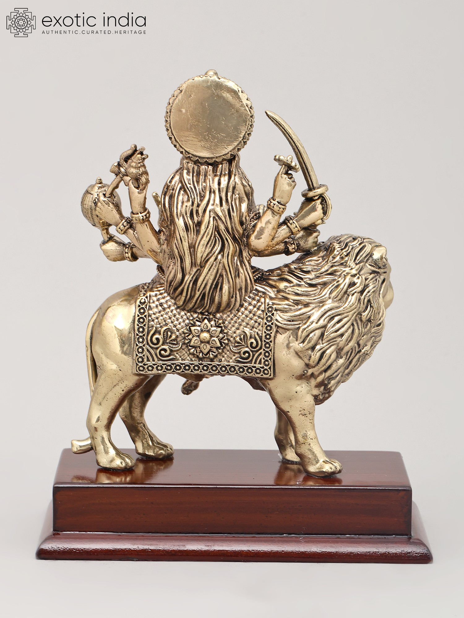 6" Small Superfine Goddess Durga (Sherawali Maa) | Brass Statue with Inlay Work
