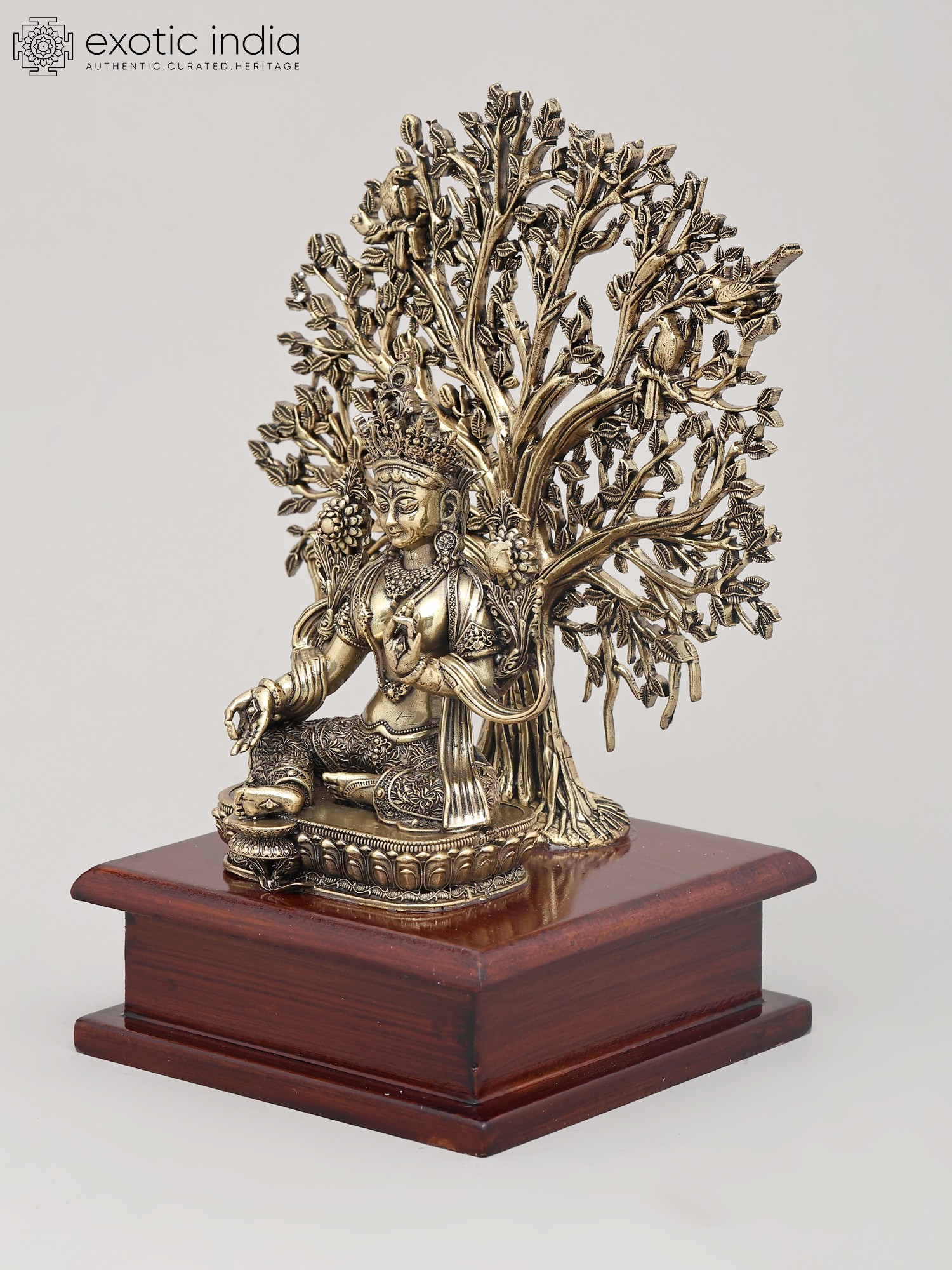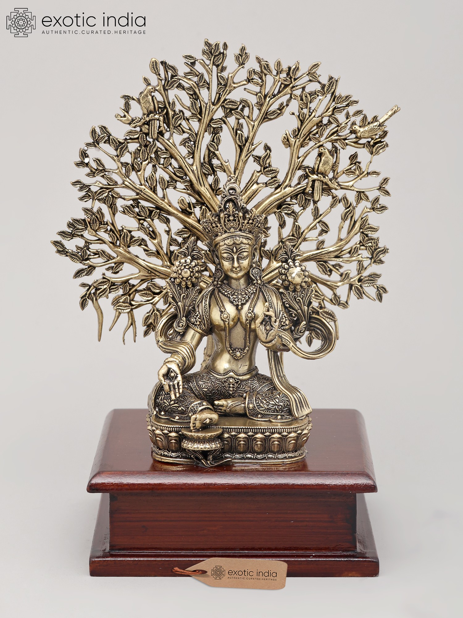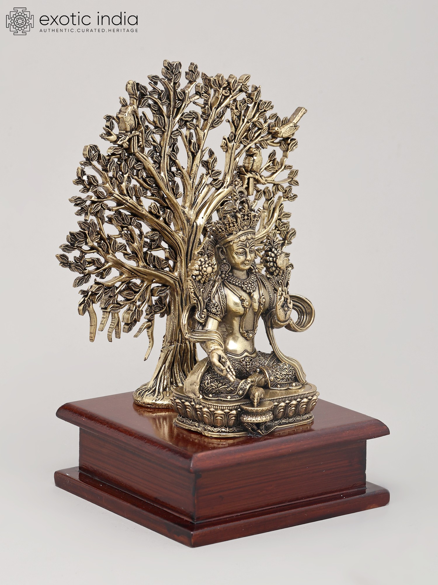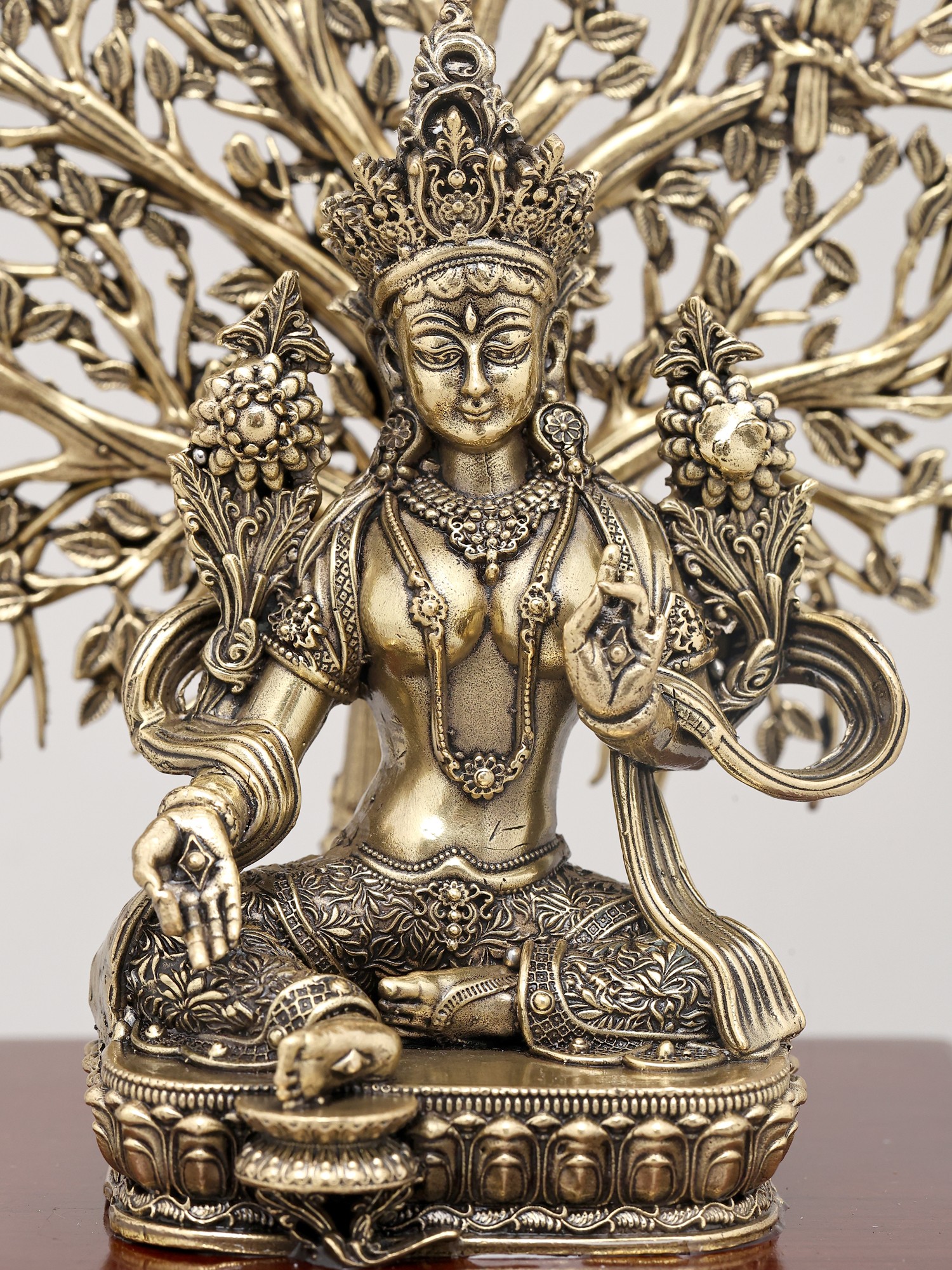 8" Tibetan Buddhist Goddess Green Tara | Brass Idol