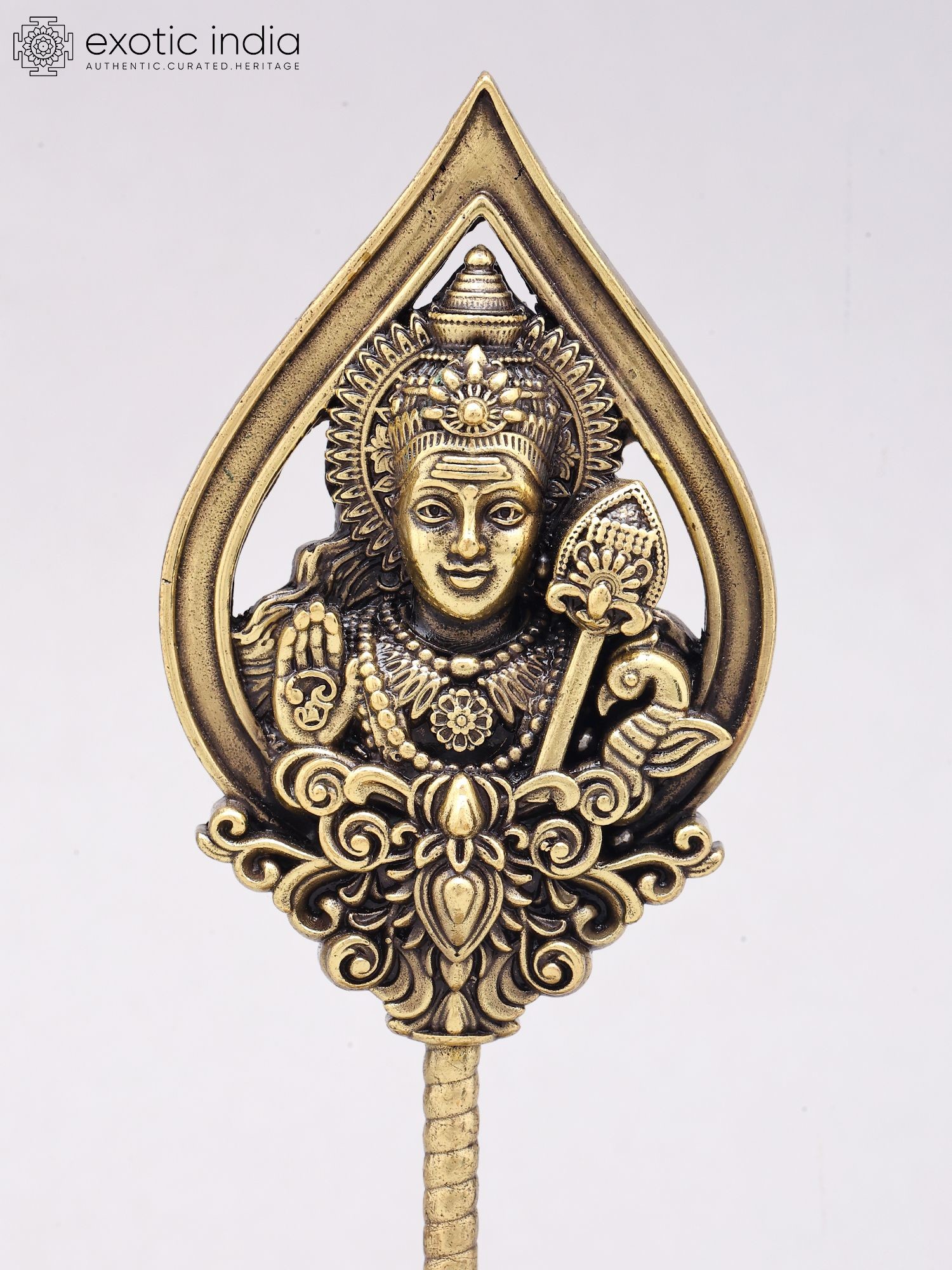 40" Lord Karttikeya (Murugan) Vel | Brass Bhala | Handmade