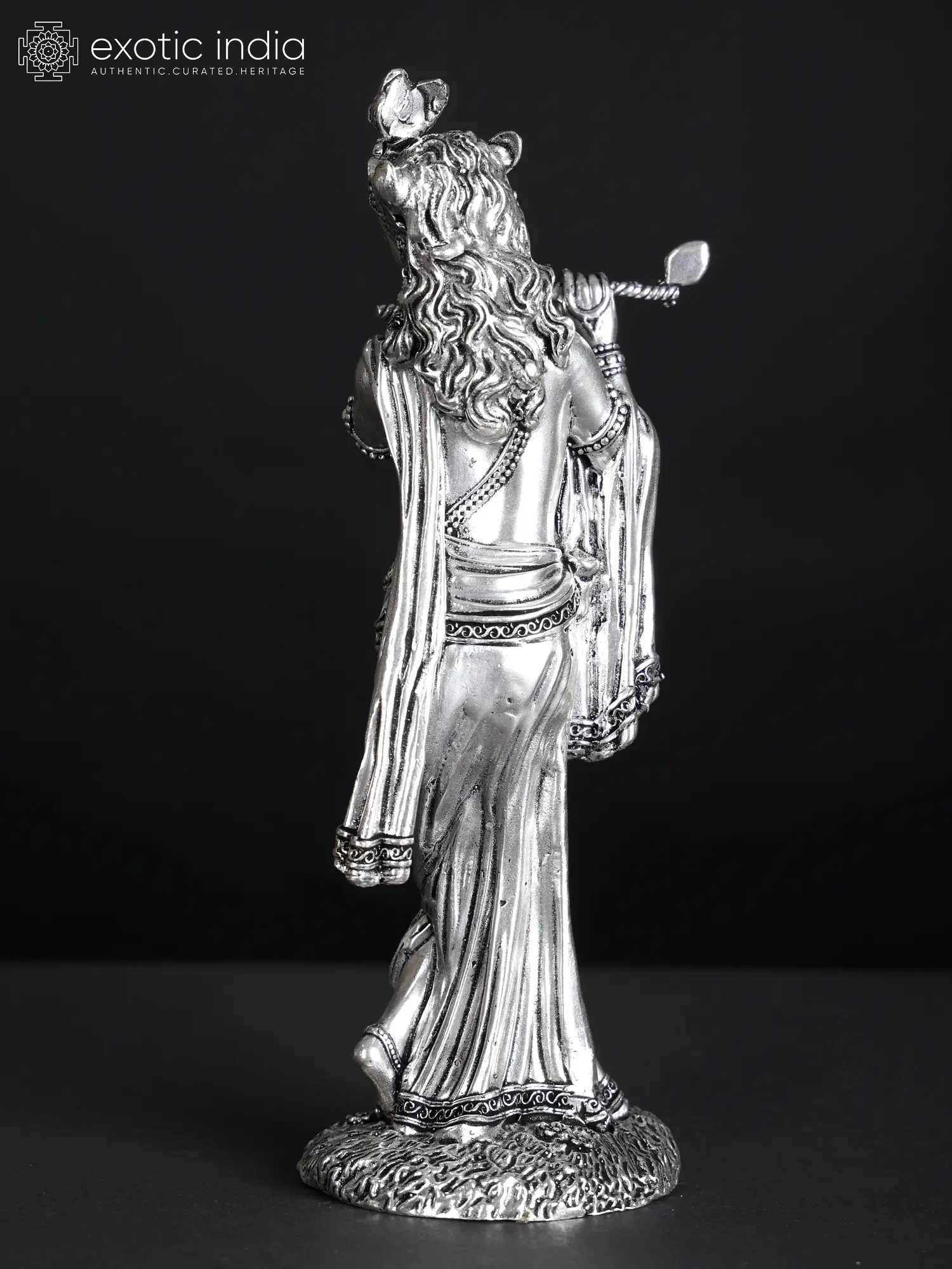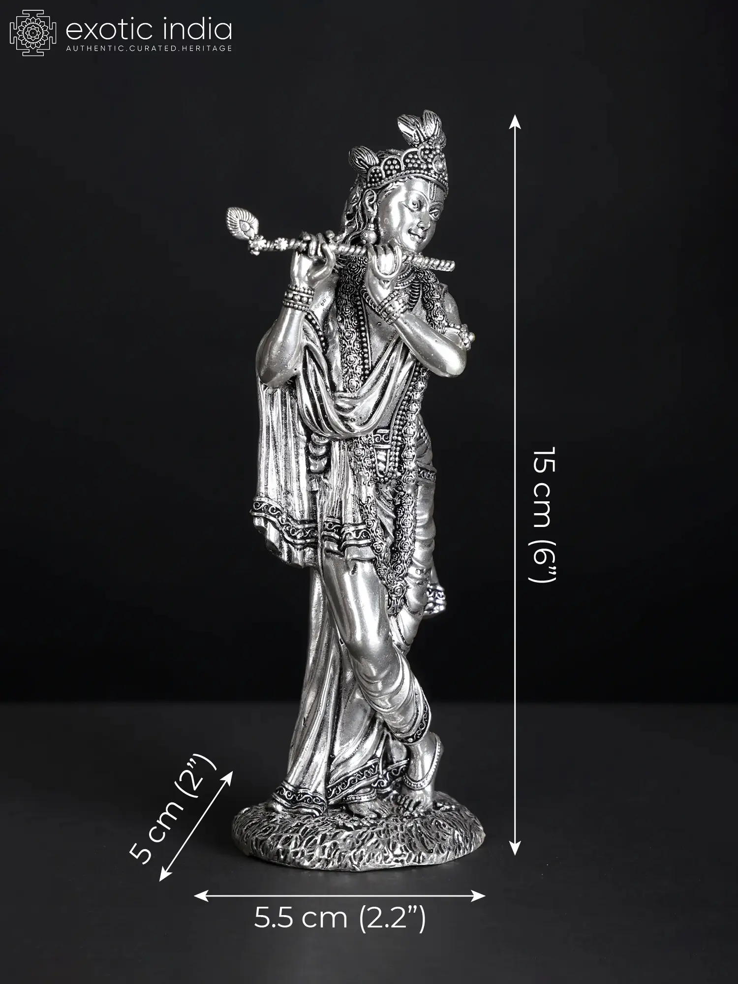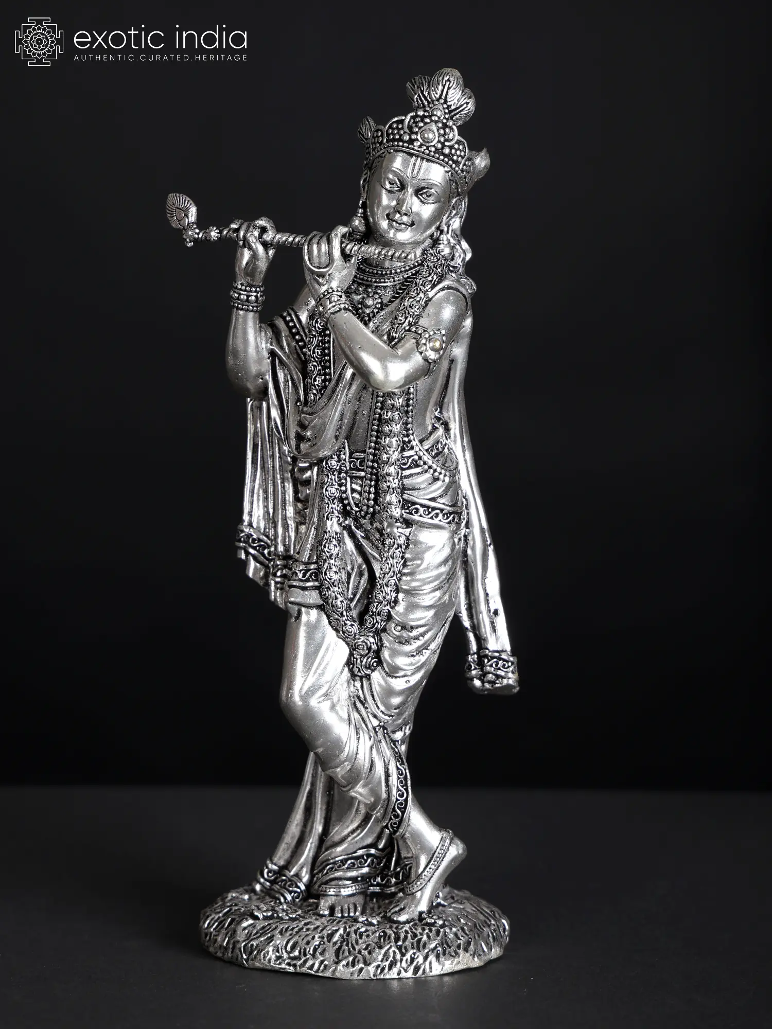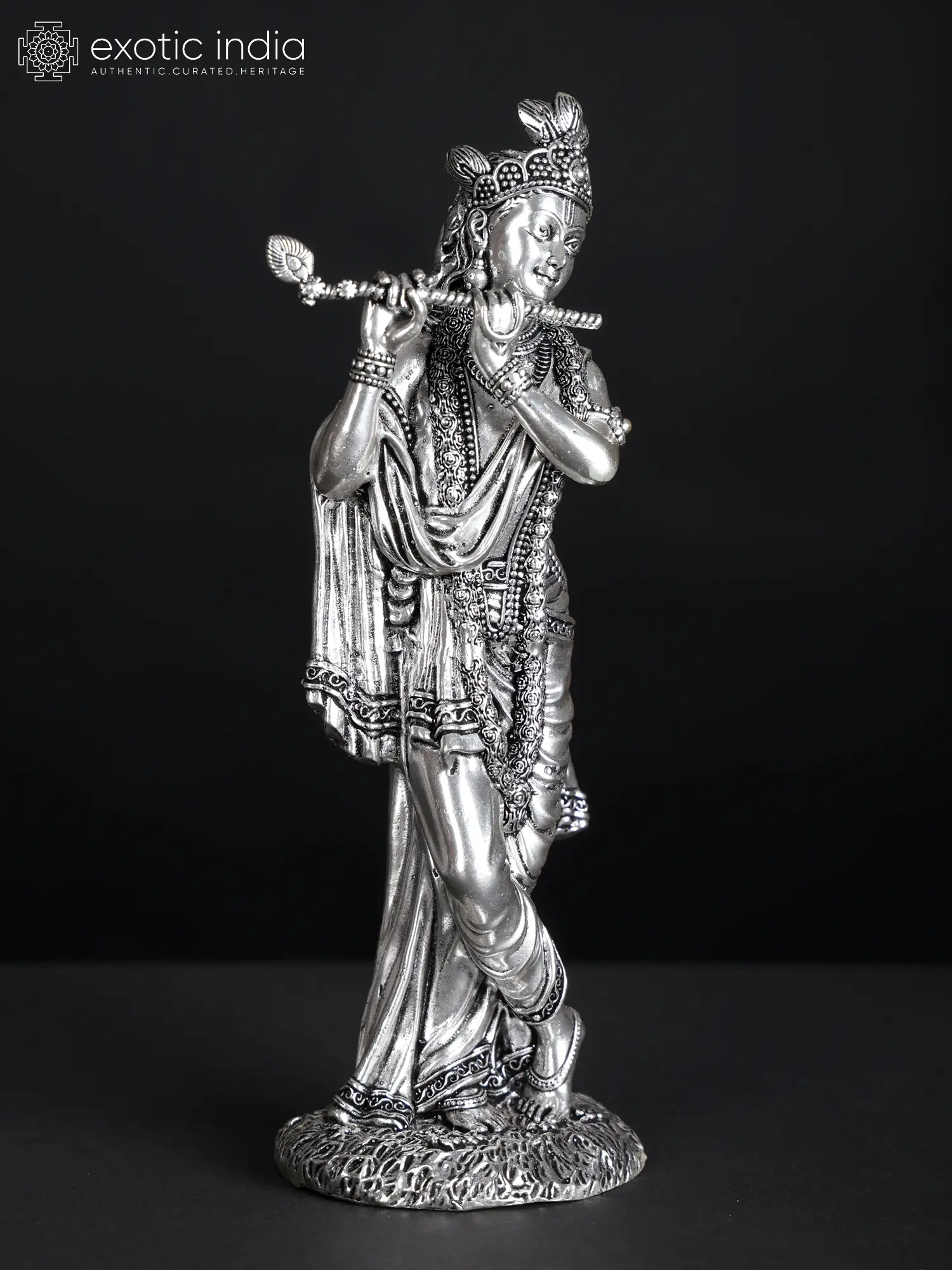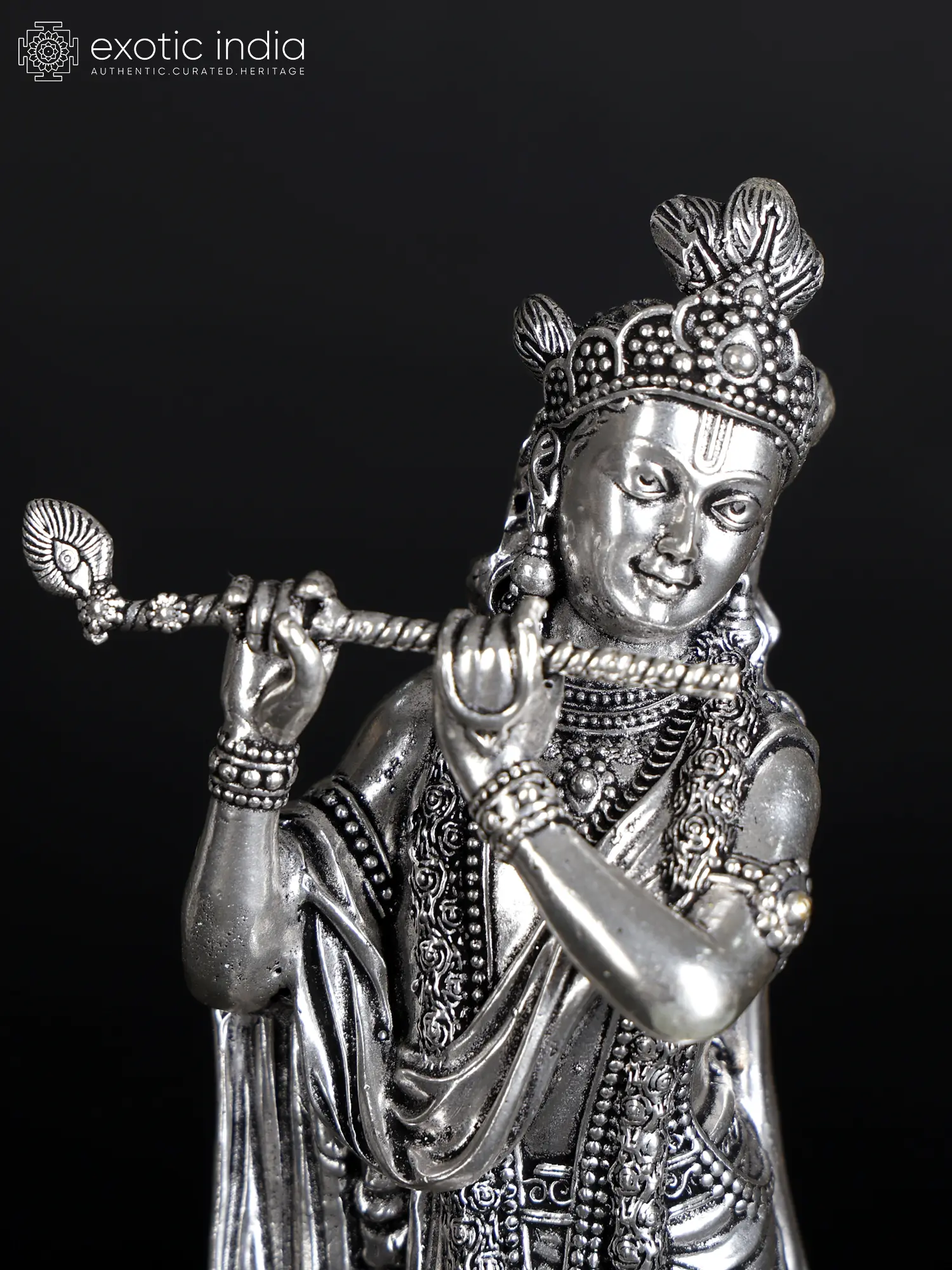 An icon does not need to be massive to inspire awe and reverence. This superfine silver-plated Krishna statute is a representation of the mesmerizing powers of art. Only several inches in size, the statue of Murlidhara Krishna is filled with awesome detailing.