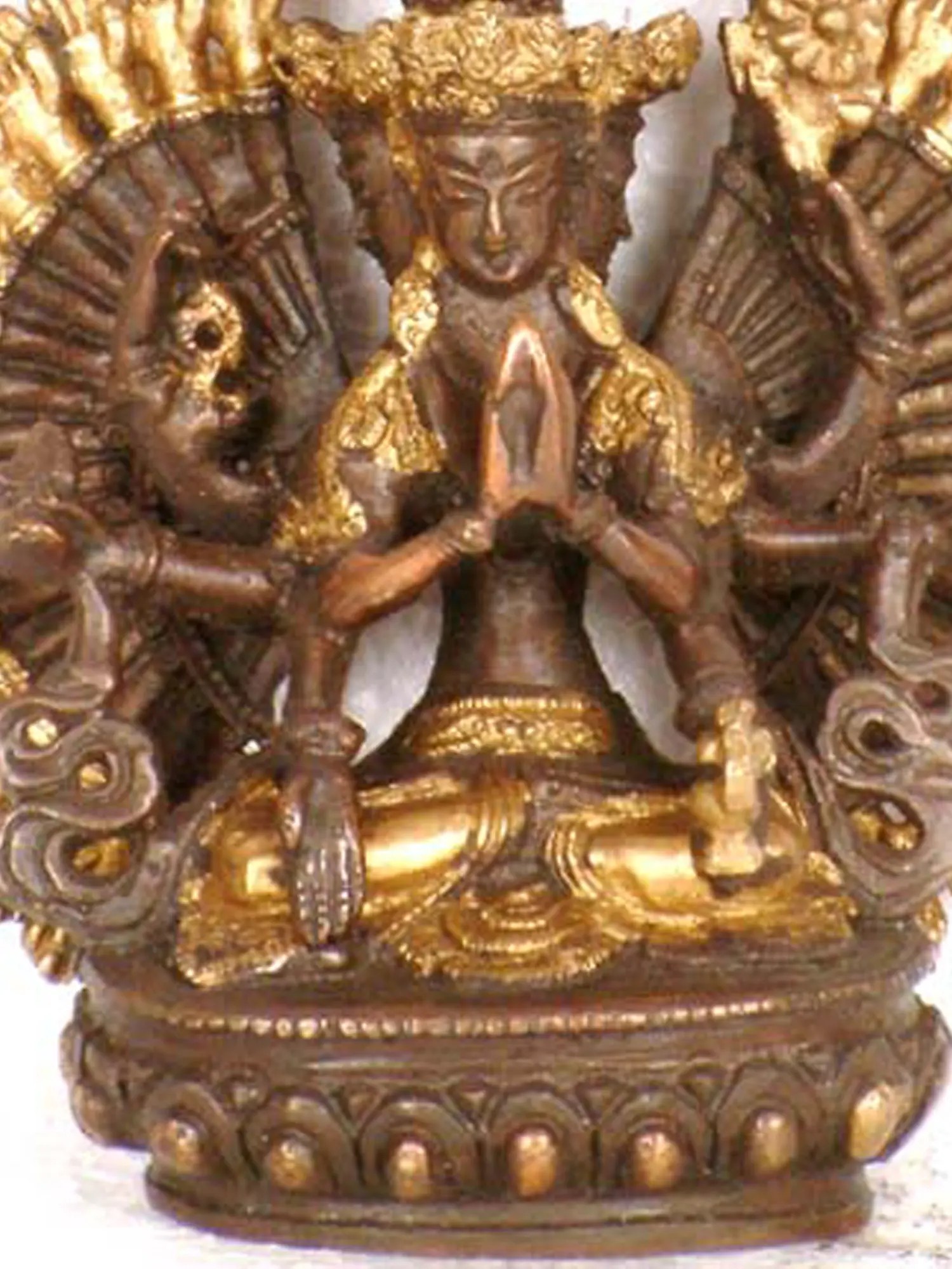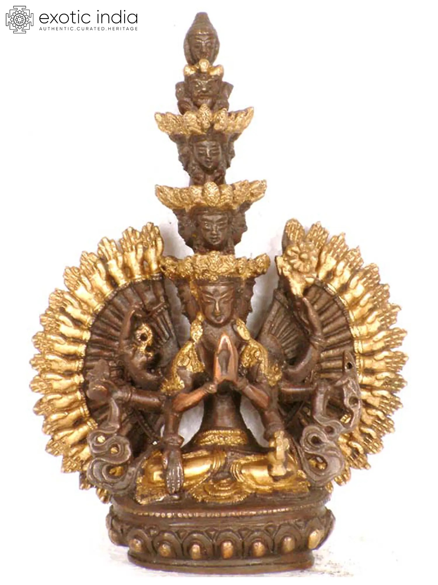 7" Thousand-Armed Avalokiteshvara Brass Idol | Handmade Buddhist Deity Statue | Made in India