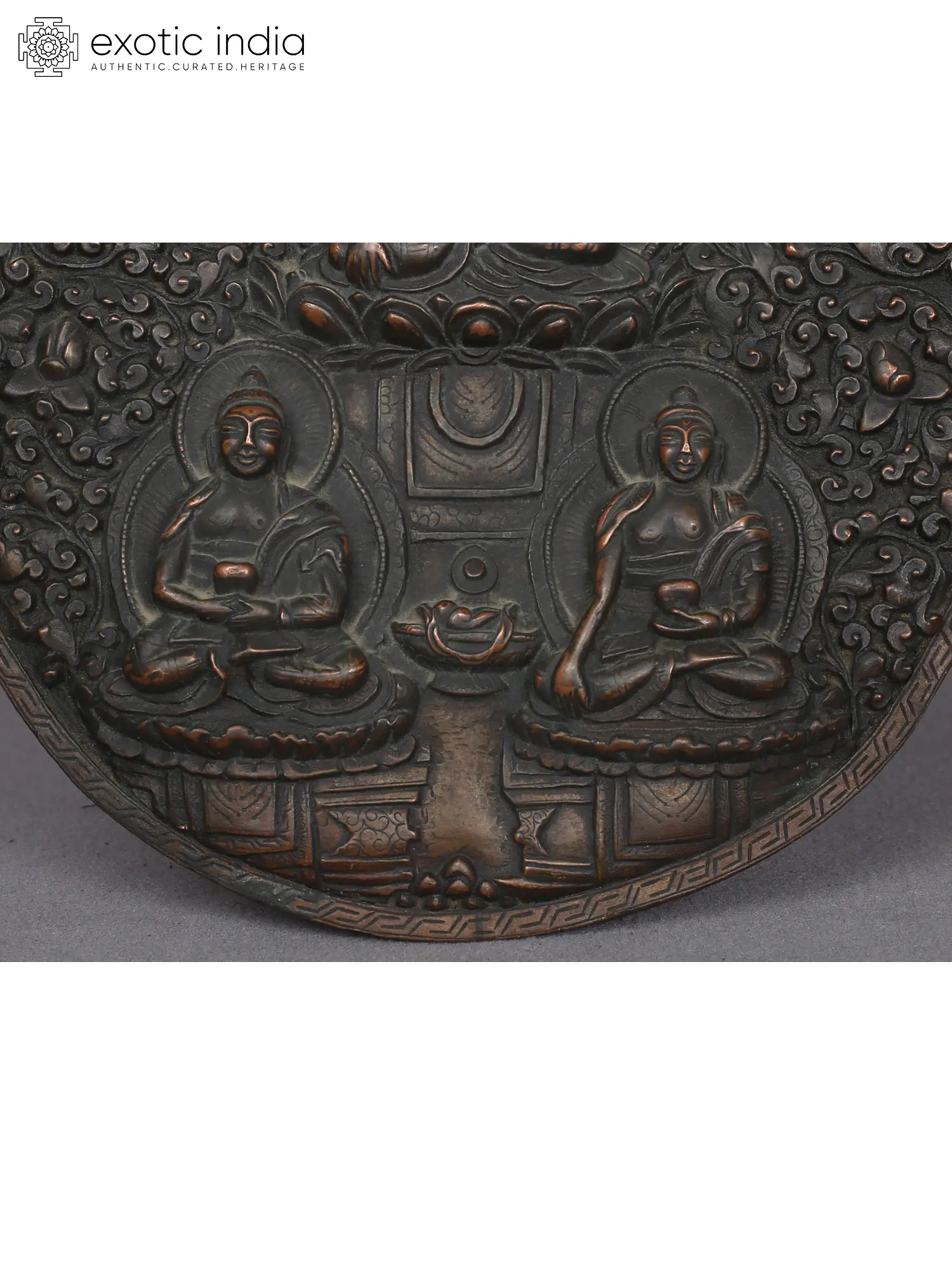 14" Buddhist Mandala With Ashtamangala Symbols For Wall Hanging In Copper Gold And Silver Plated