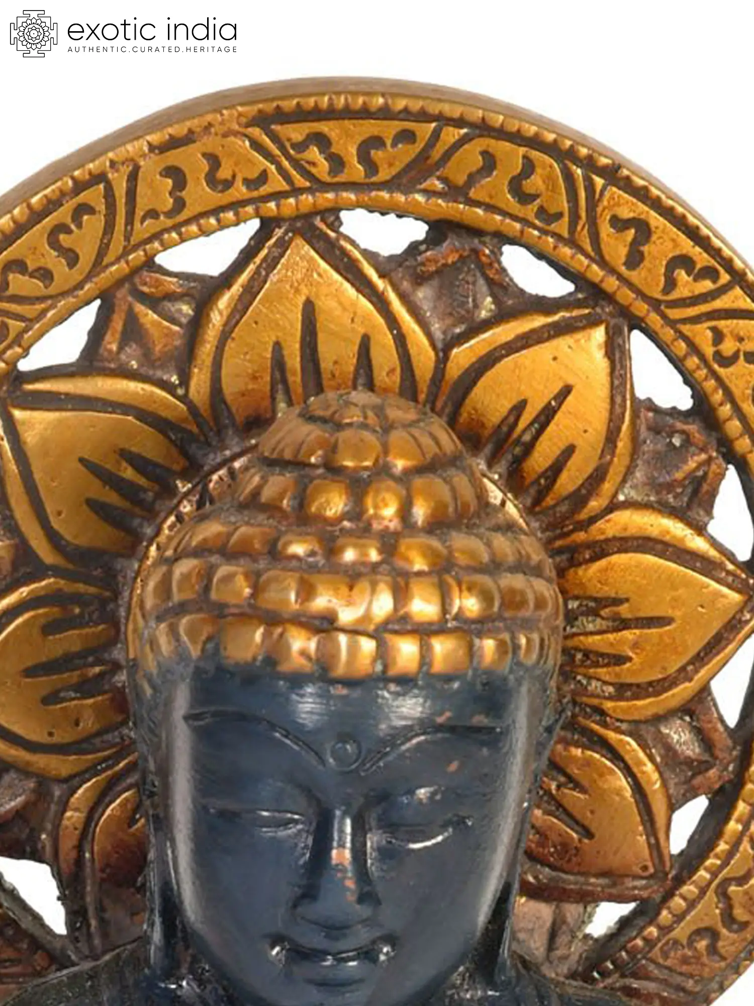 Handcrafted in India by skilled artisans, this statue is a testament to centuries of artistic tradition. The deep, contemplative blue of the Buddha's robes is often associated with the sky, symbolizing vastness and the infinite nature of consciousness. The lustrous brass, meticulously shaped and polished, lends a timeless quality to the sculpture, reflecting the enduring power of the Buddha's message. The intricate detailing of the robes, with their flowing lines, suggests movement and the gentle presence of the enlightened one. The lotus motif on the base, a sacred symbol in many Eastern religions, represents purity, spiritual awakening, and transcendence. Each element of this statue is imbued with symbolic meaning, inviting contemplation and fostering a connection with the spiritual essence of Buddhism. ––––––––––––––––––––