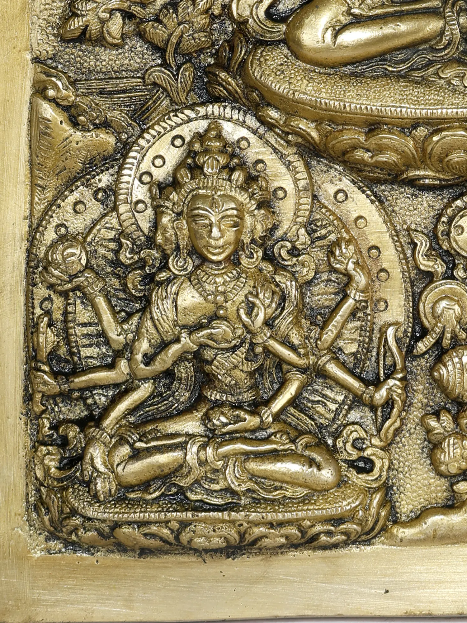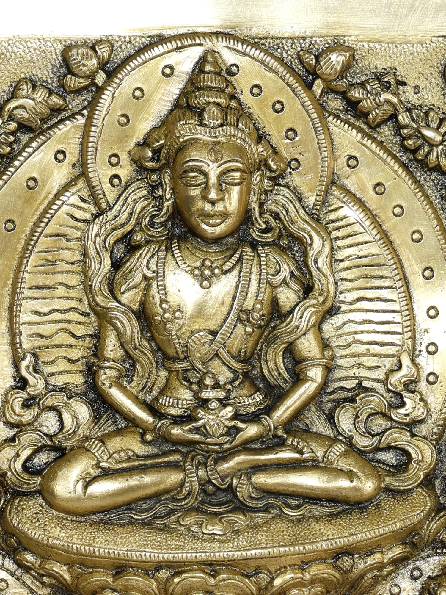 This beautifully crafted piece showcases intricate detailing, highlighting the serene expressions and divine attributes of each figure.