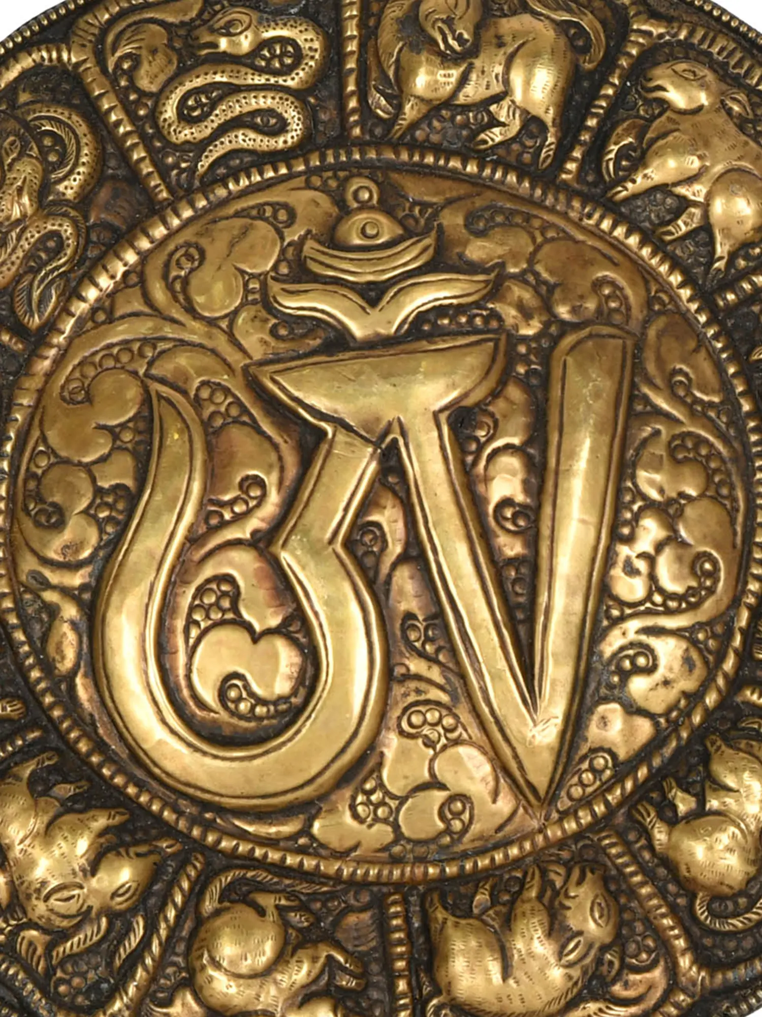 Encircling the central Om symbol is a mesmerizing band adorned with the twelve animals of the Tibetan zodiac. Each animal represents a year in the twelve-year cycle, closely mirroring the Chinese zodiac. These animals are not merely decorative; they are imbued with symbolic meaning, representing different qualities, strengths, and even perceived influences on human destiny. From the noble horse to the resourceful rat, each creature is rendered with meticulous detail, creating a dynamic circular narrative that speaks to the cyclical nature of time and life. In Tibetan Buddhism, the zodiac animals are often associated with different celestial beings and are used in divination and astrological practices, offering insights into personal karma and future events.