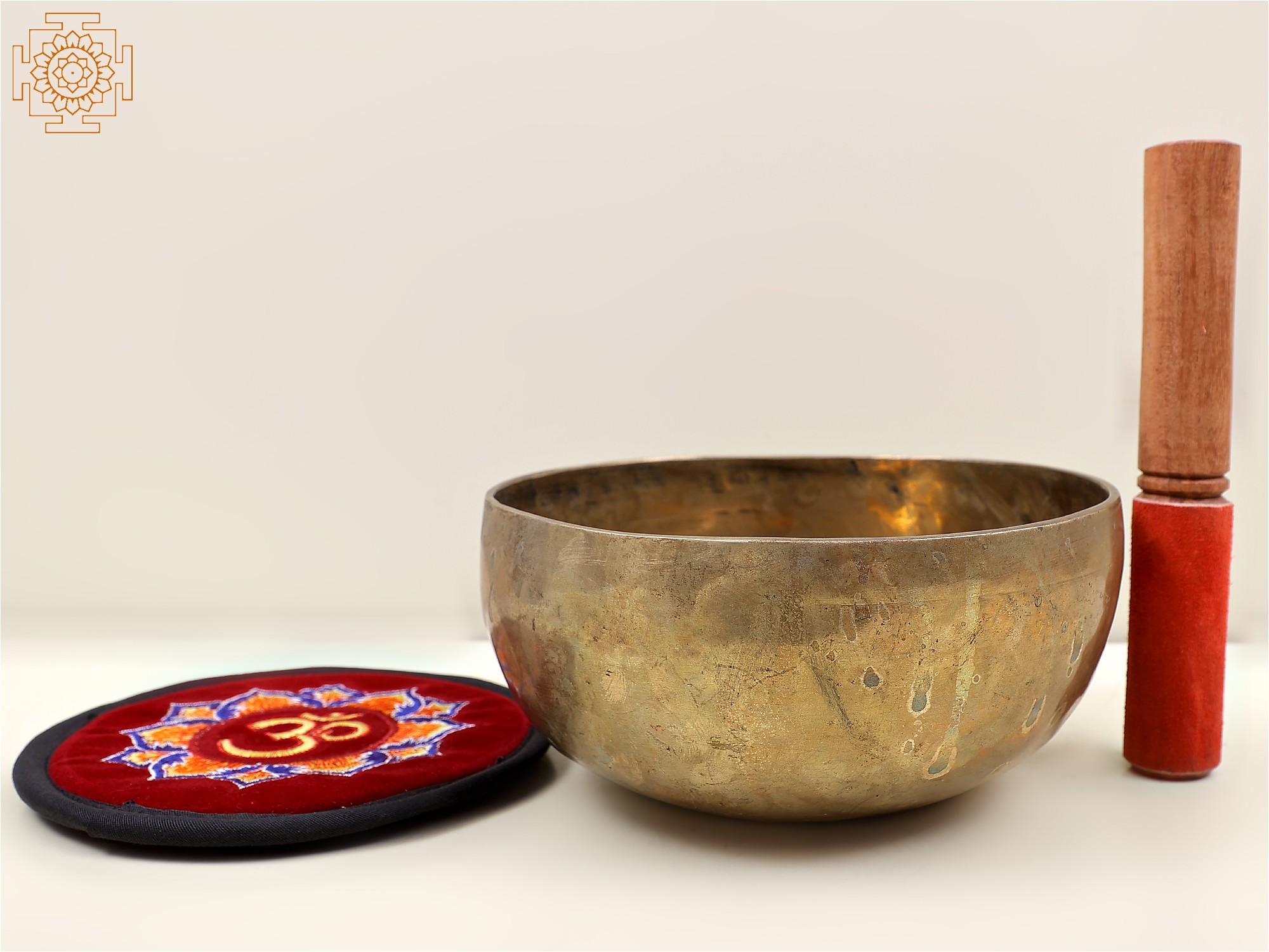 Each bowl is a unique creation, shaped by skilled artisans using age-old techniques passed down through generations. The subtle variations in its surface are not flaws, but rather testaments to its artisanal origin, each hammer mark a whisper of the dedication and intention poured into its making. The warm, golden patina of the bronze speaks of its deep connection to earth elements and its inherent spiritual resonance. This particular bowl, designed to be a focal point for your spiritual journey, comes complete with a decorative cloth and a smooth wooden mallet, ready to be introduced into your meditation or ritual practice. Its size makes it ideal for personal use, easily fitting onto an altar or meditation space.